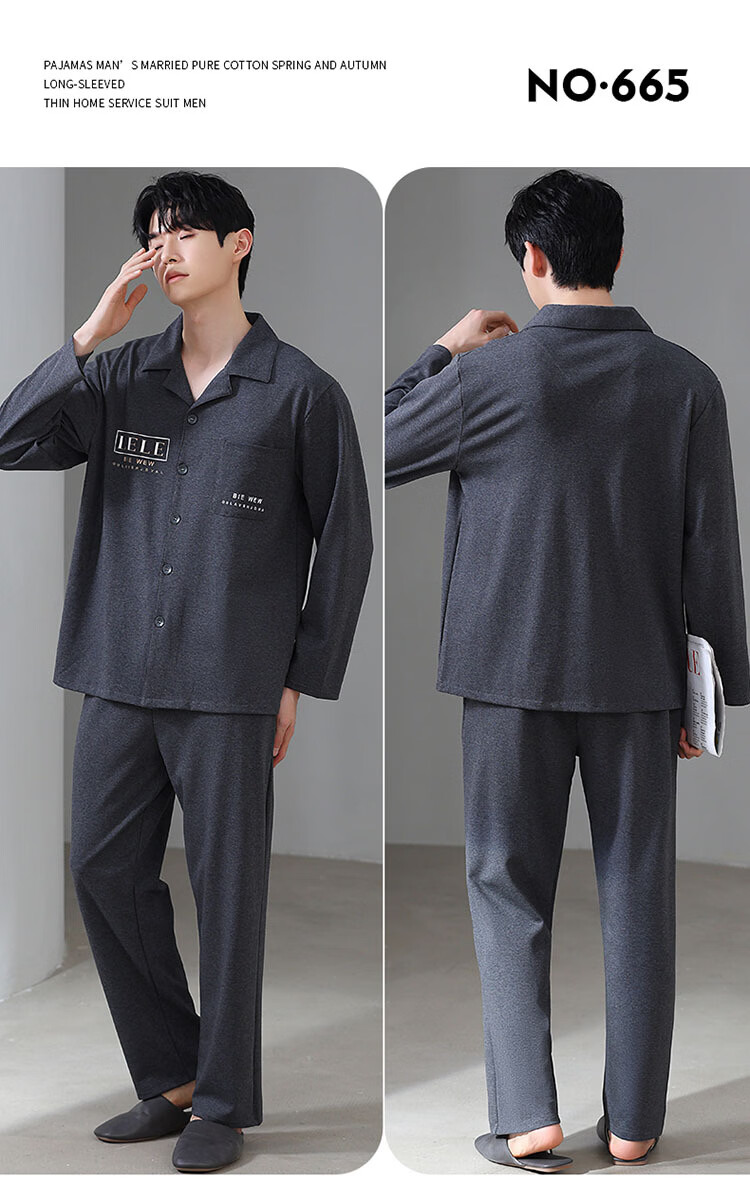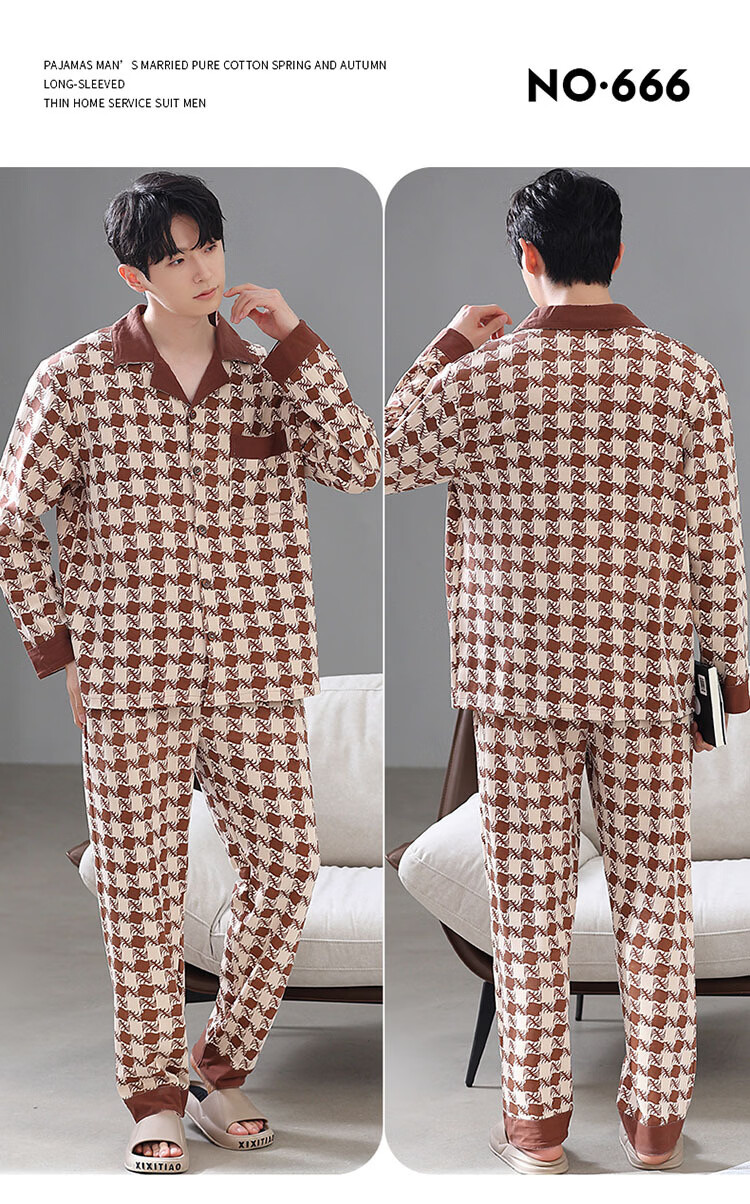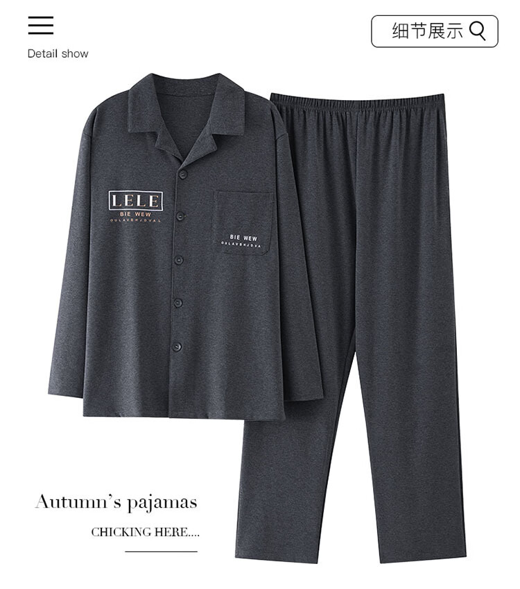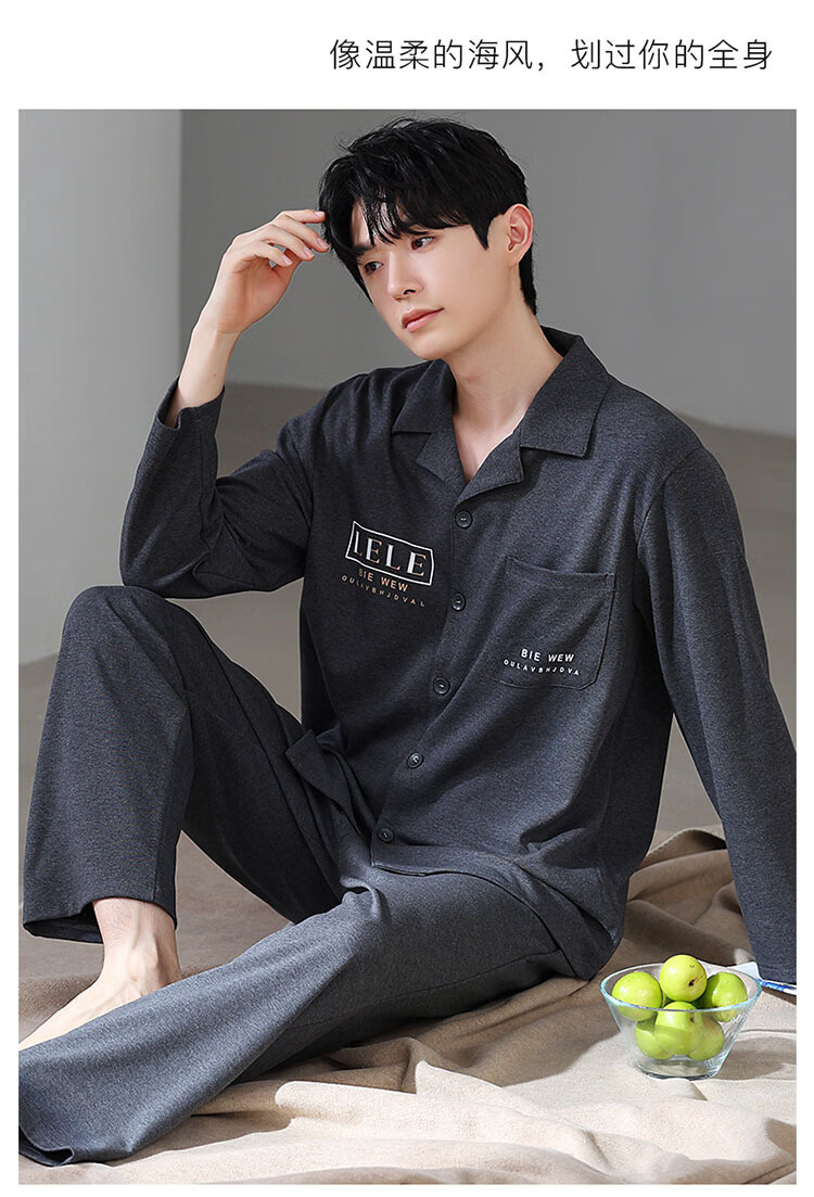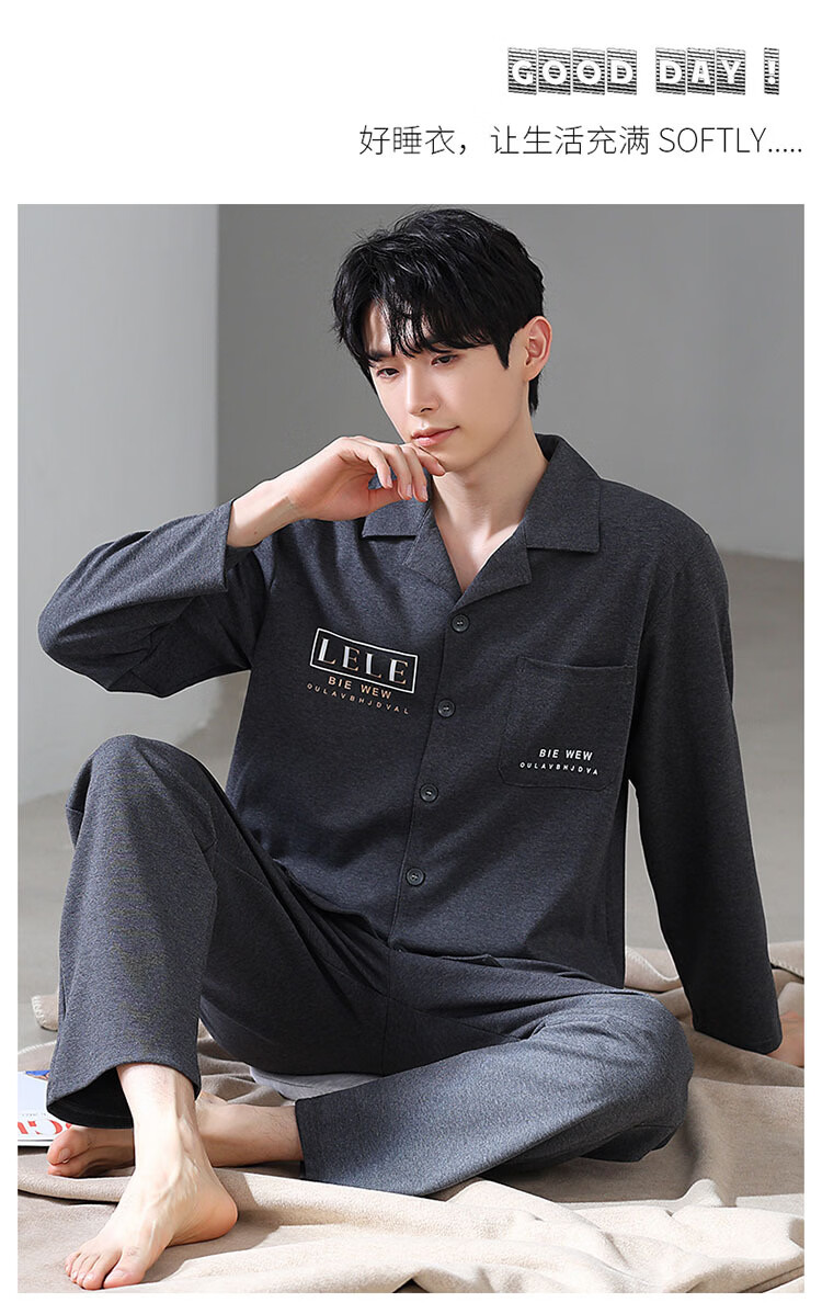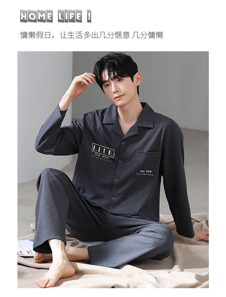 DAPHNE达芙妮【M】加大码5XL男士长袖睡衣春秋季棉质翻领休闲可外穿家居服 CCC-666【加大码男士家居服】 5XL