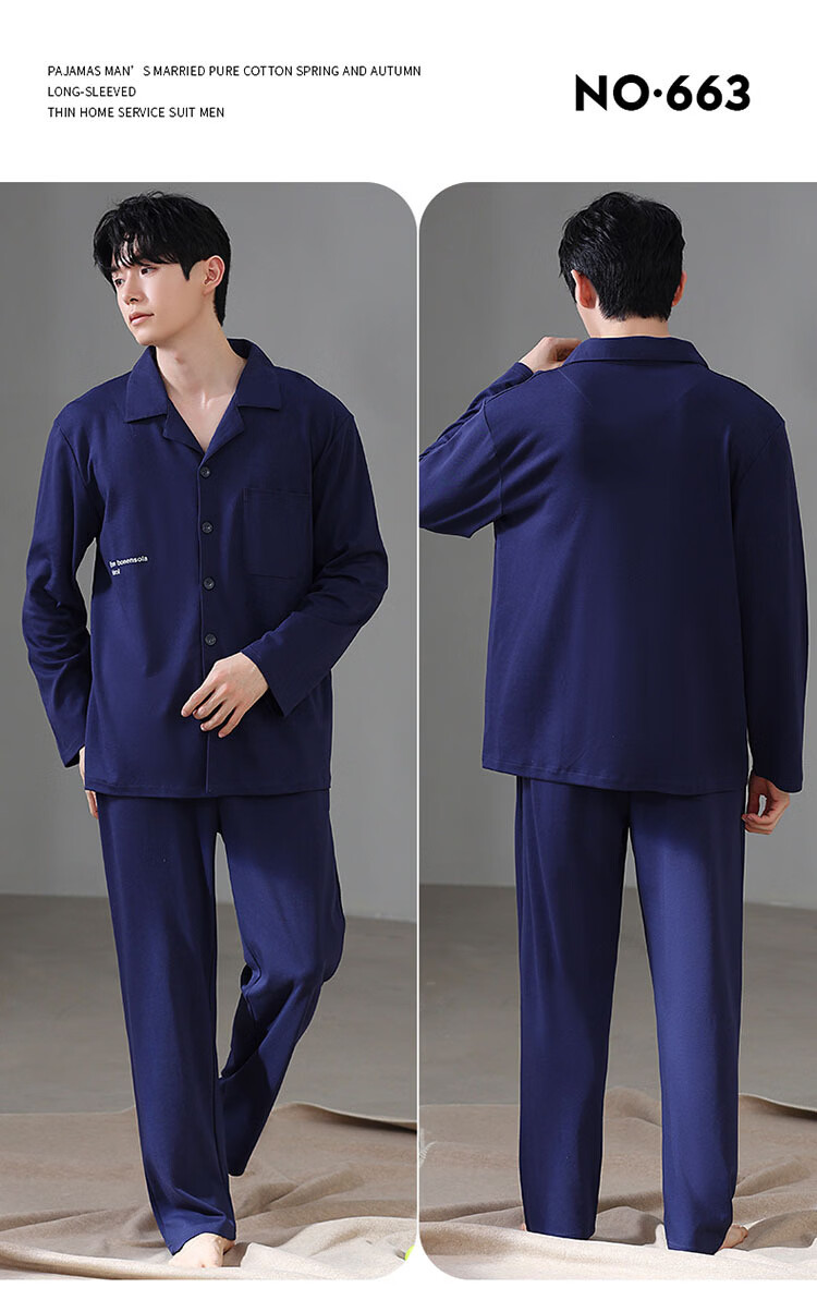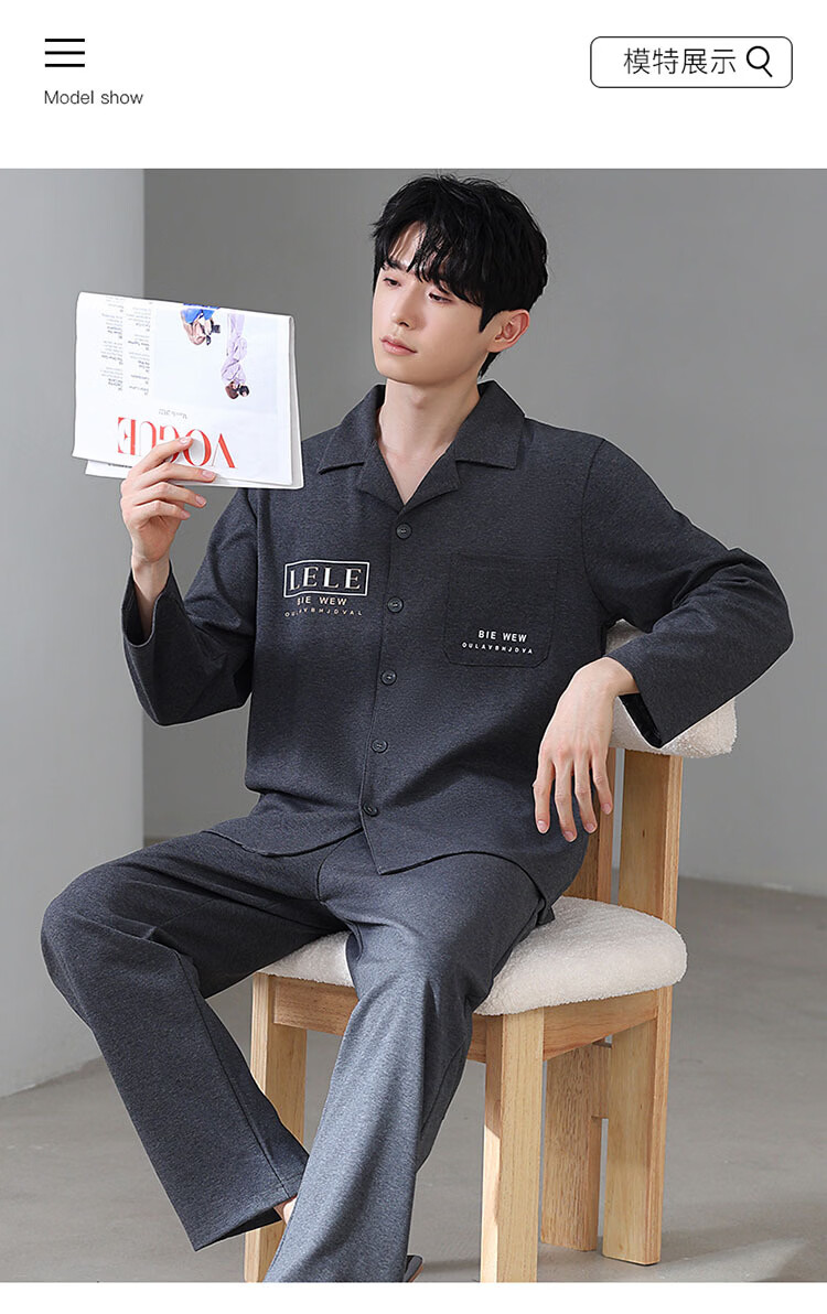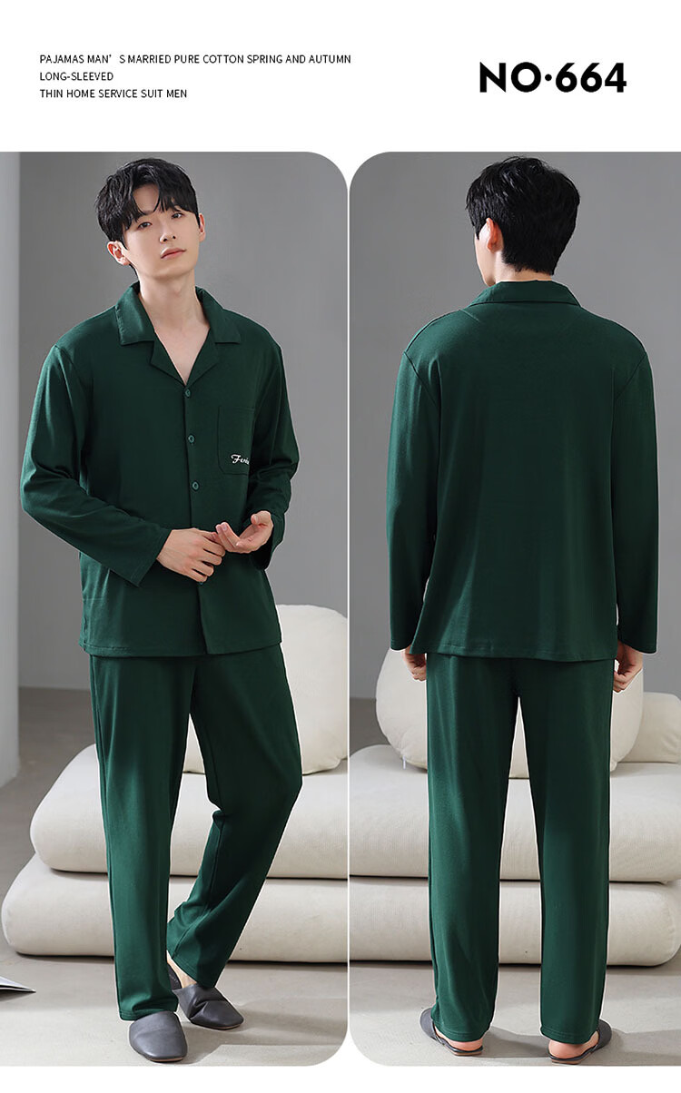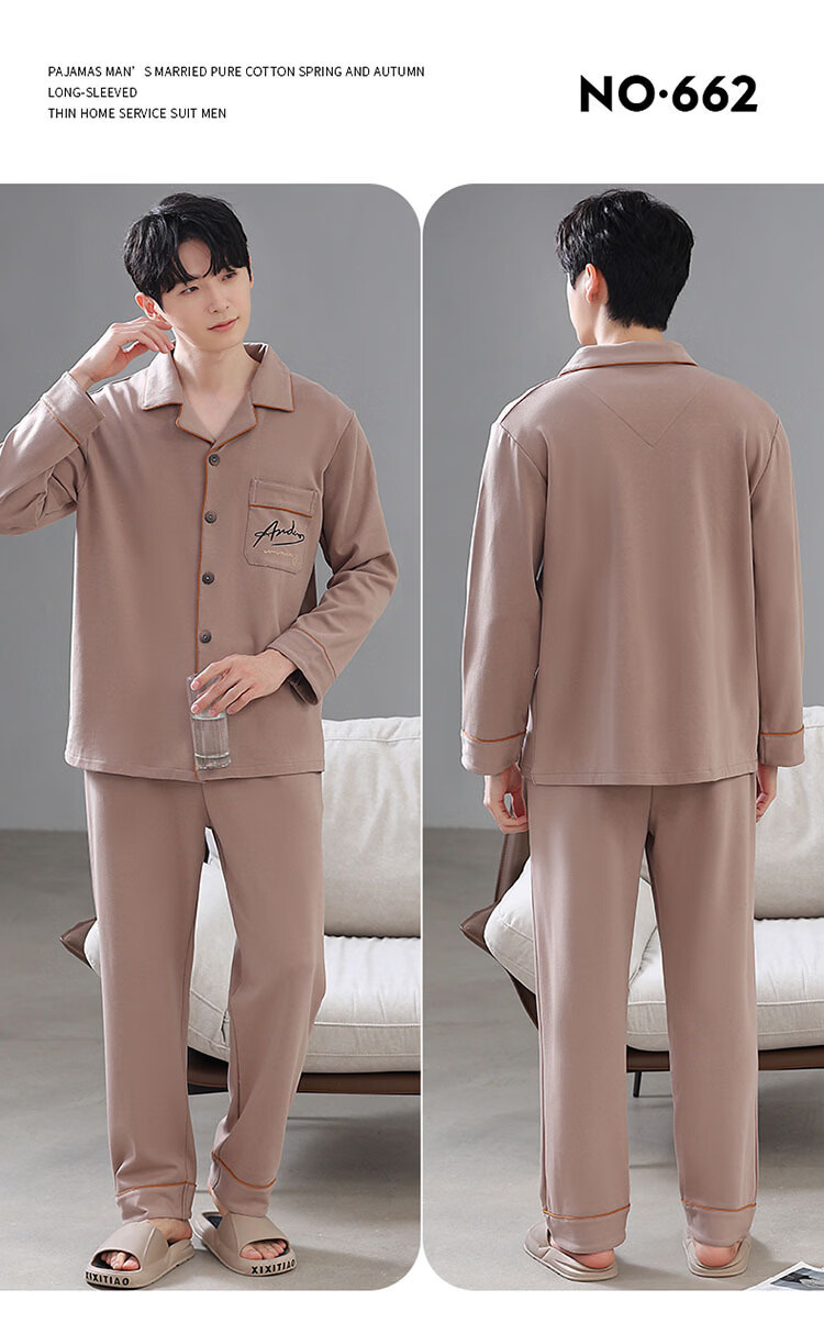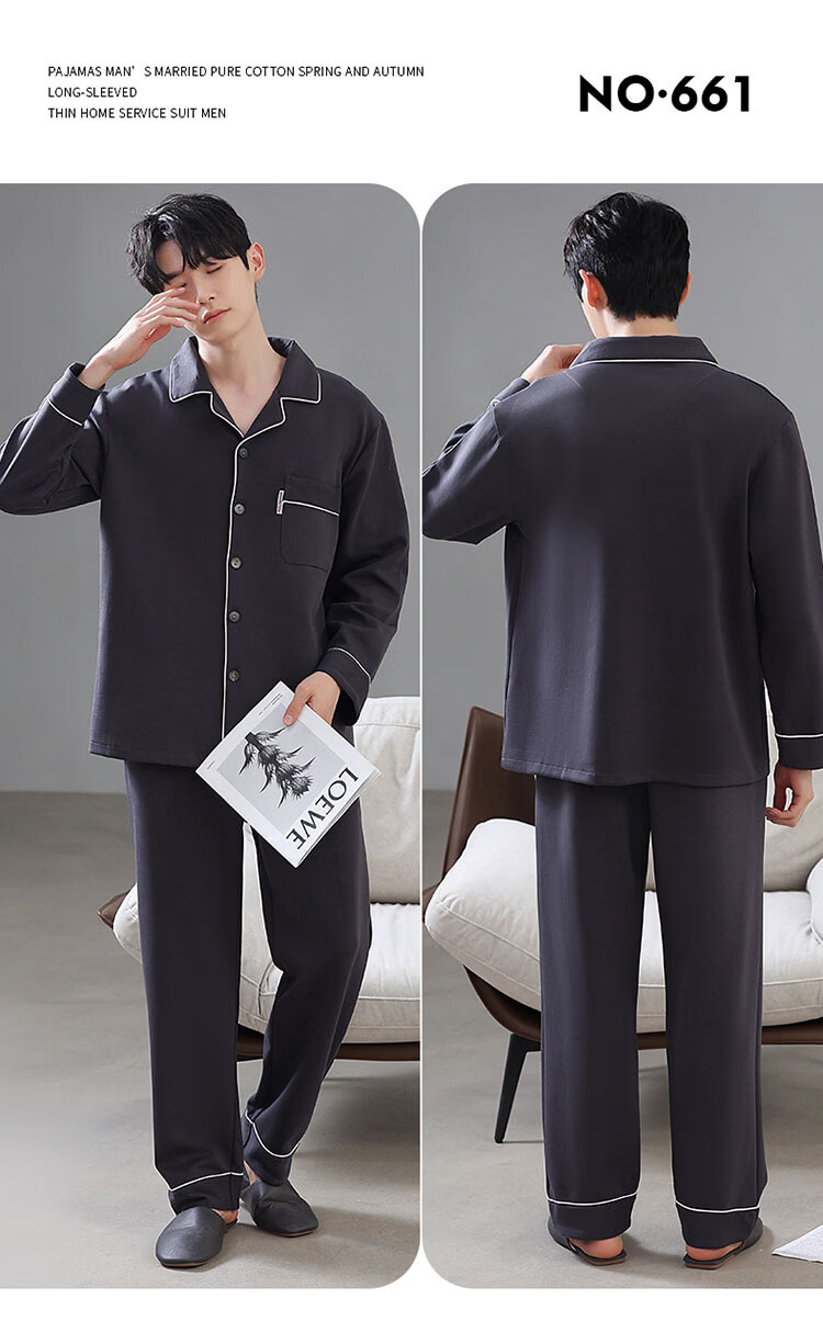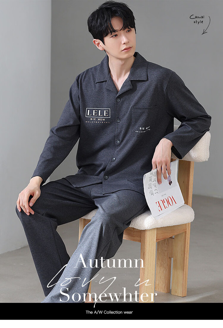 DAPHNE达芙妮【M】加大码5XL男士长袖睡衣春秋季棉质翻领休闲可外穿家居服 CCC-666【加大码男士家居服】 5XL