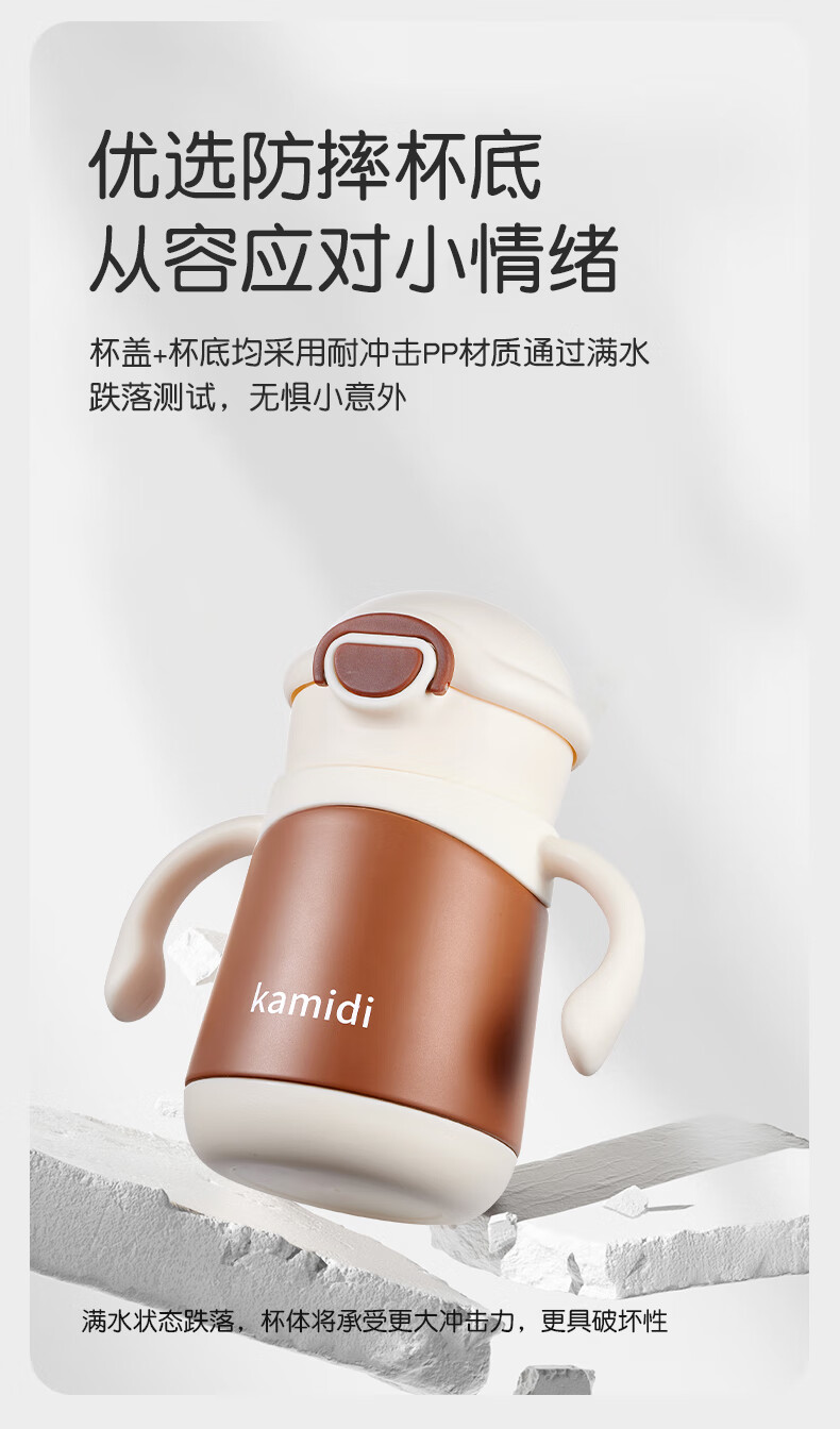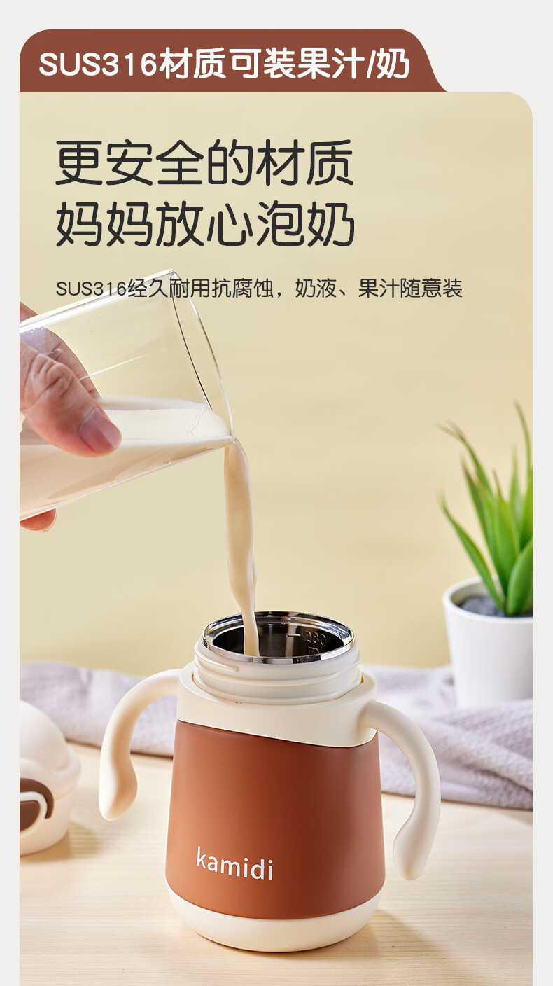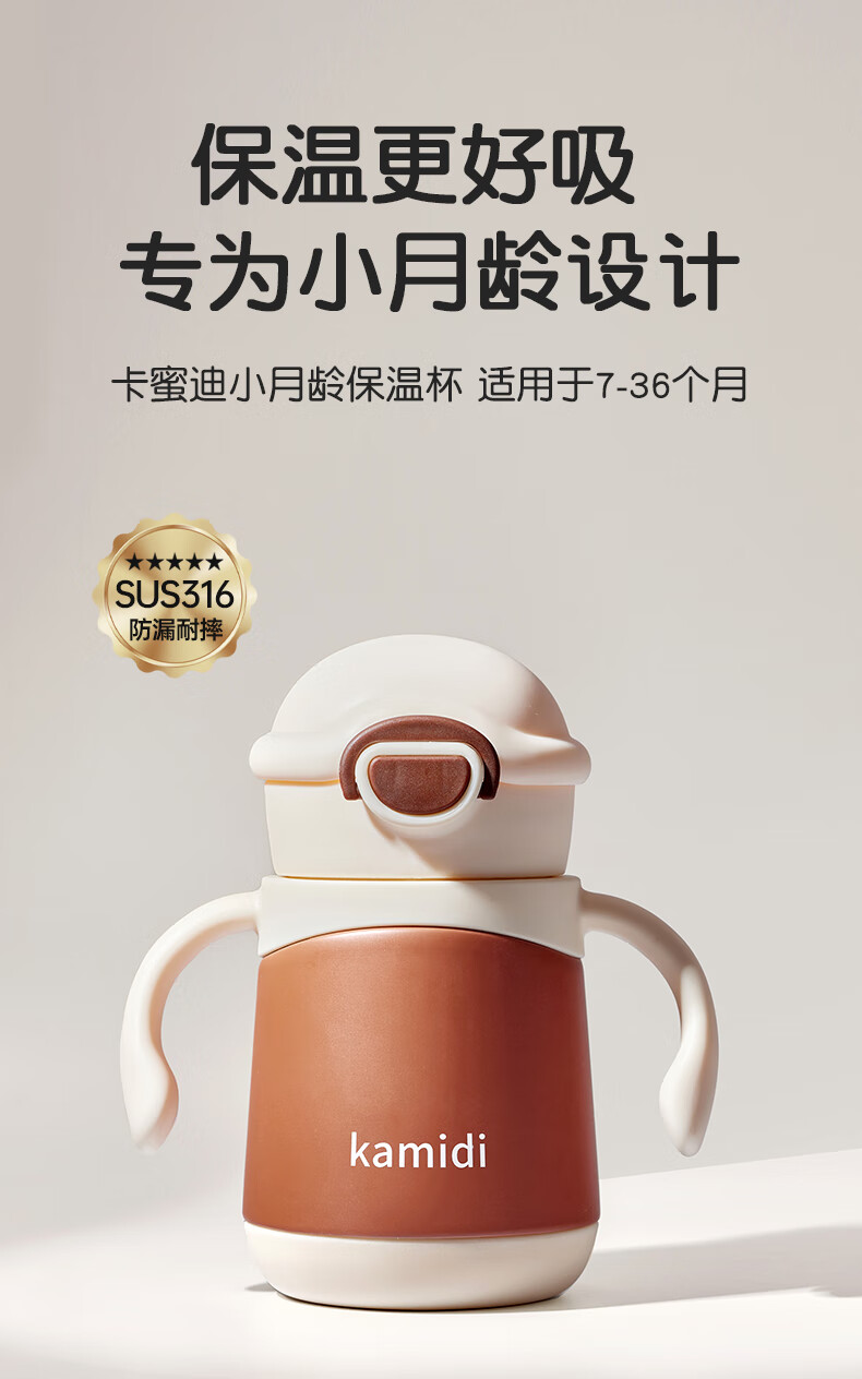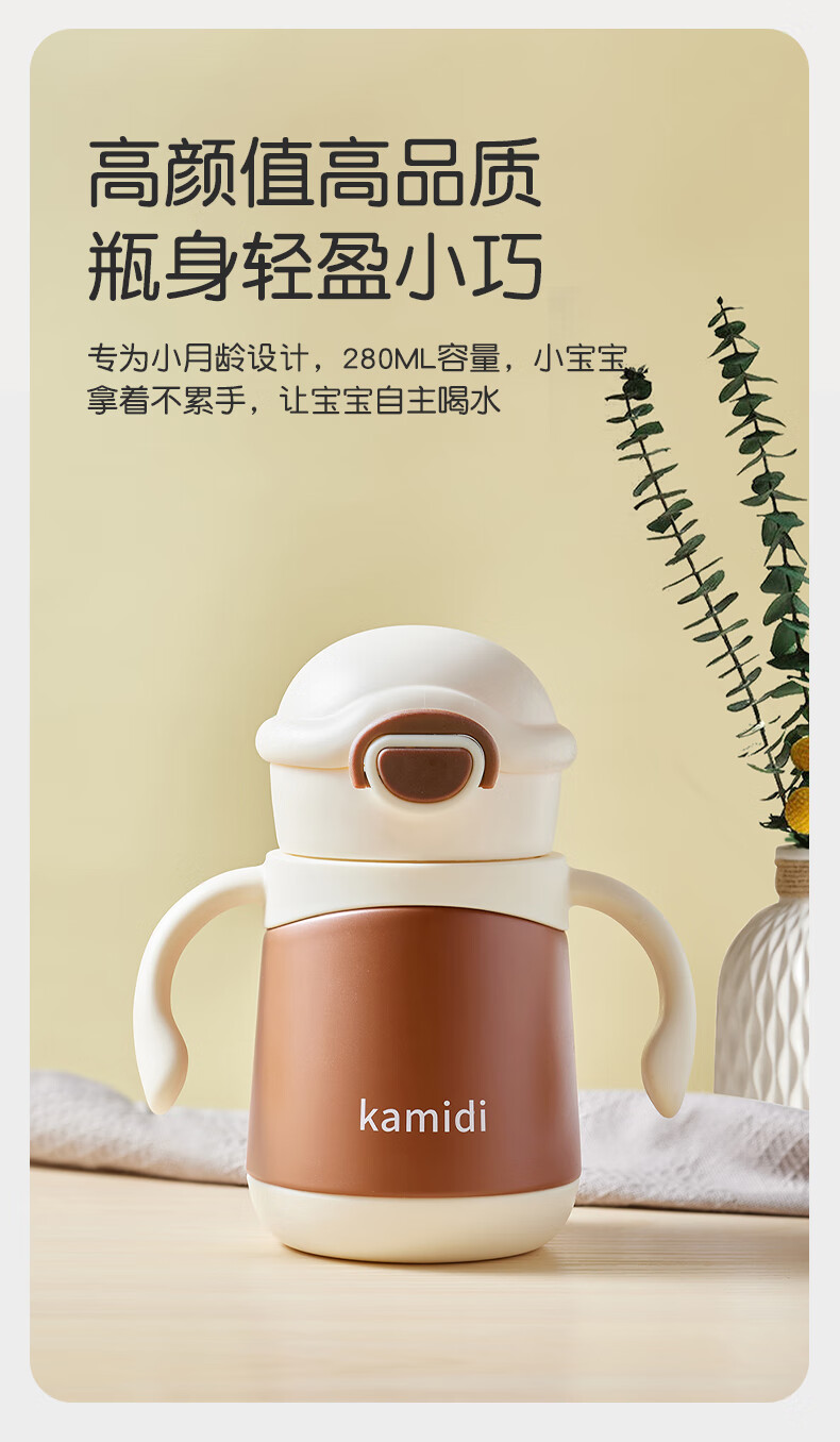 卡蜜迪小月龄婴儿童保温杯母婴喝水杯学饮杯牛奶杯饮水杯大肚杯奶瓶 重力球款+送背带 280ml