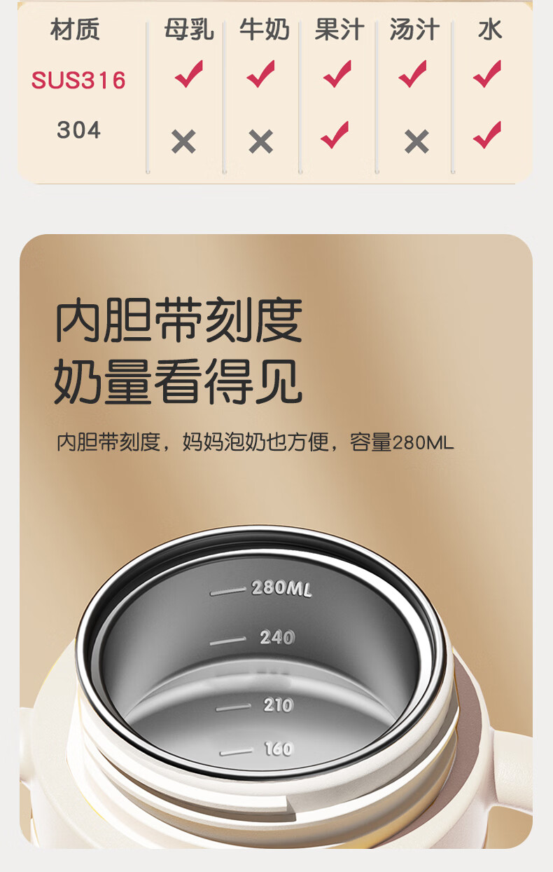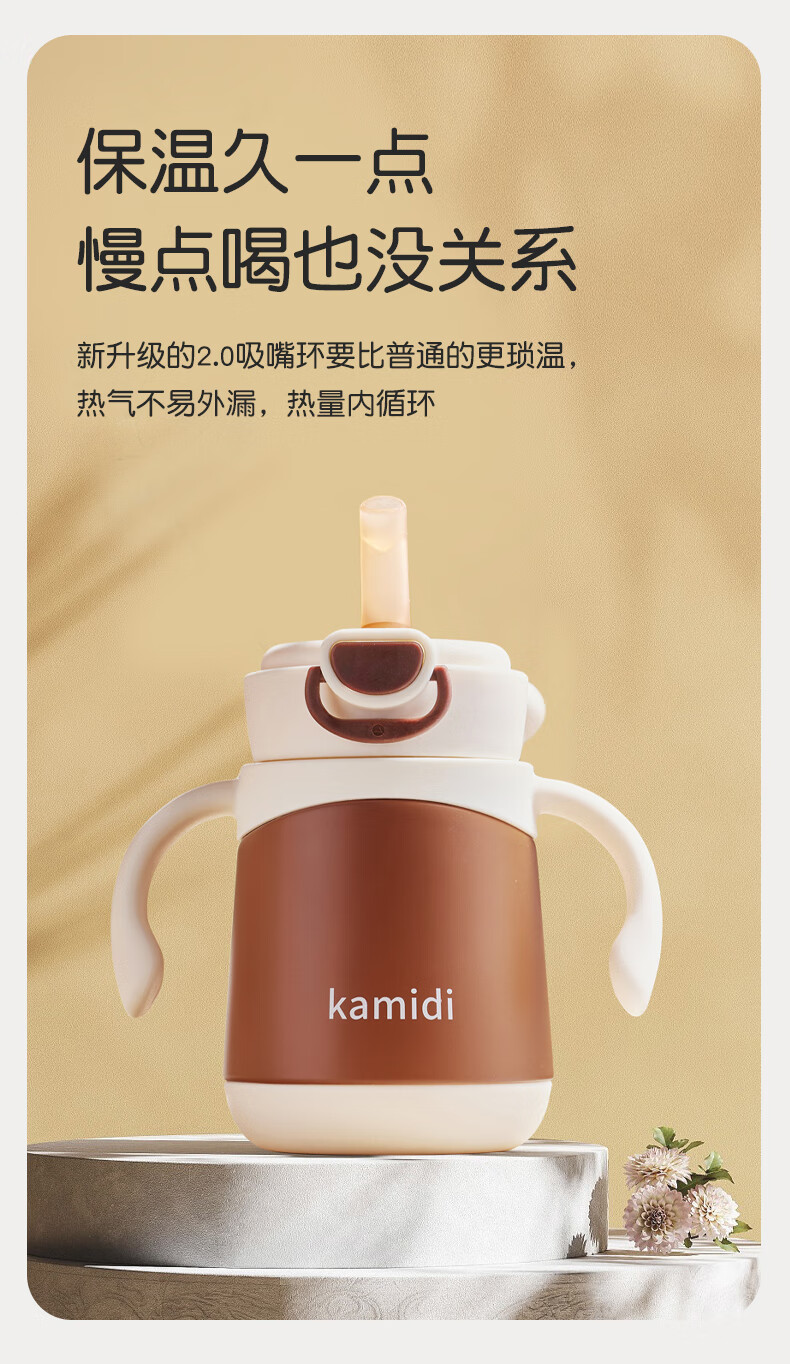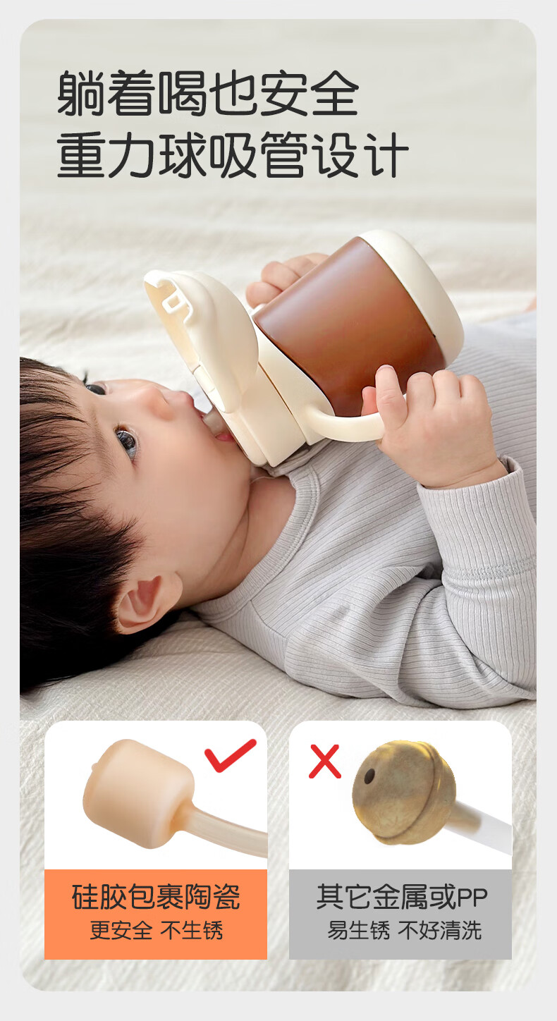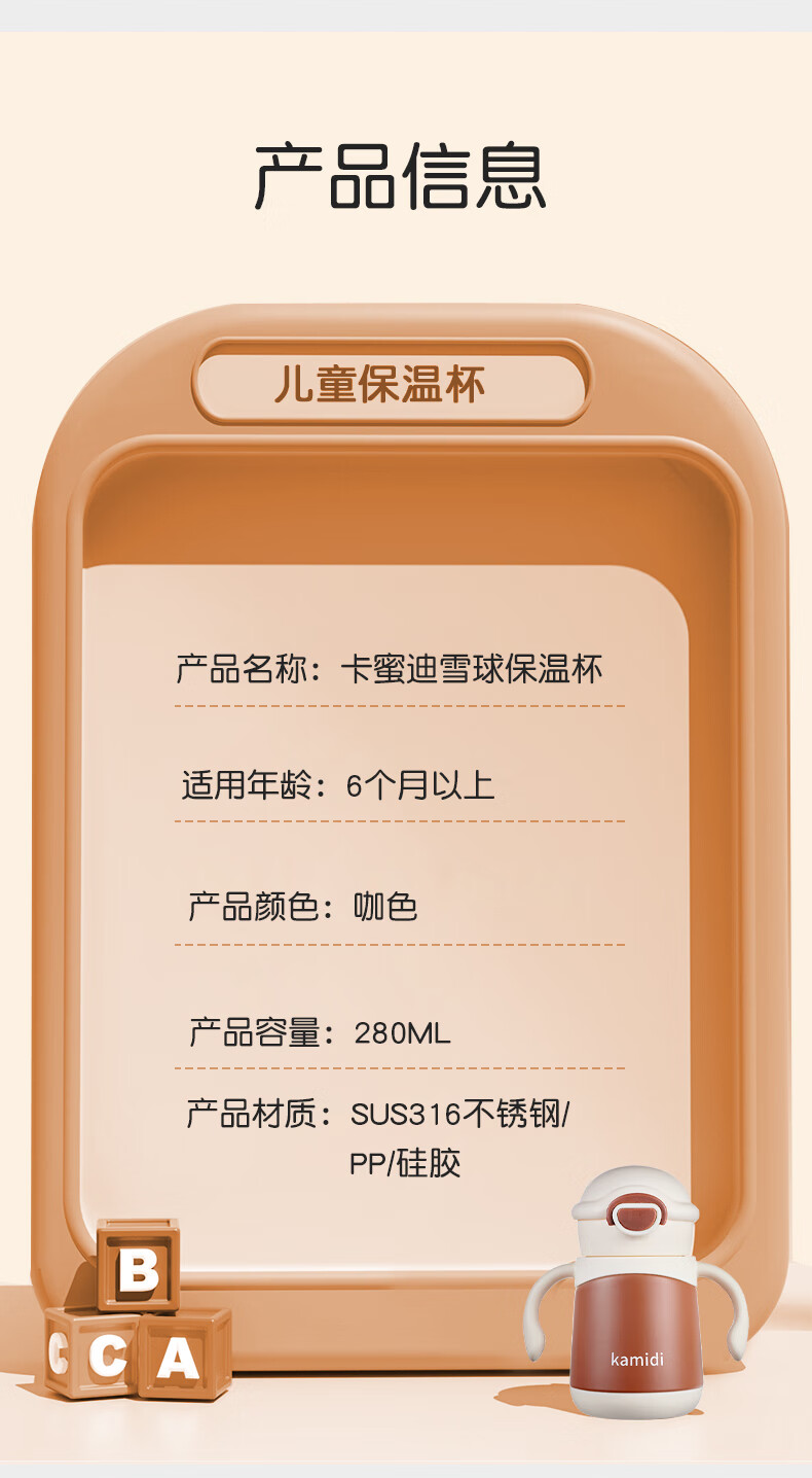 卡蜜迪小月龄婴儿童保温杯母婴喝水杯学饮杯牛奶杯饮水杯大肚杯奶瓶 重力球款+送背带 280ml