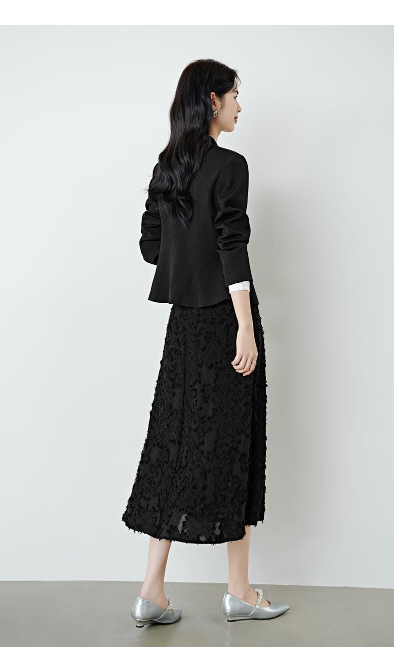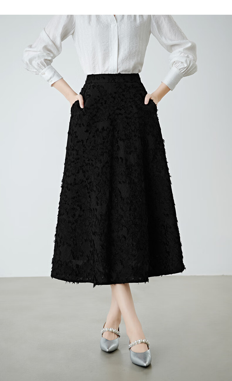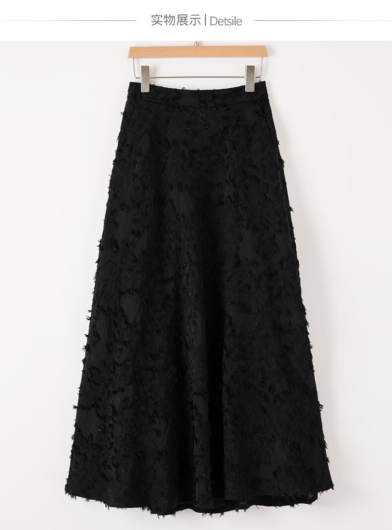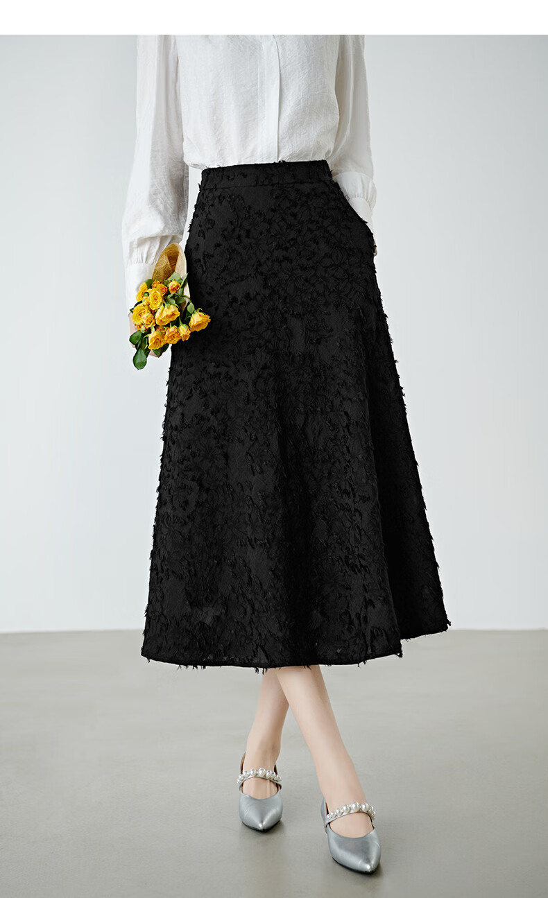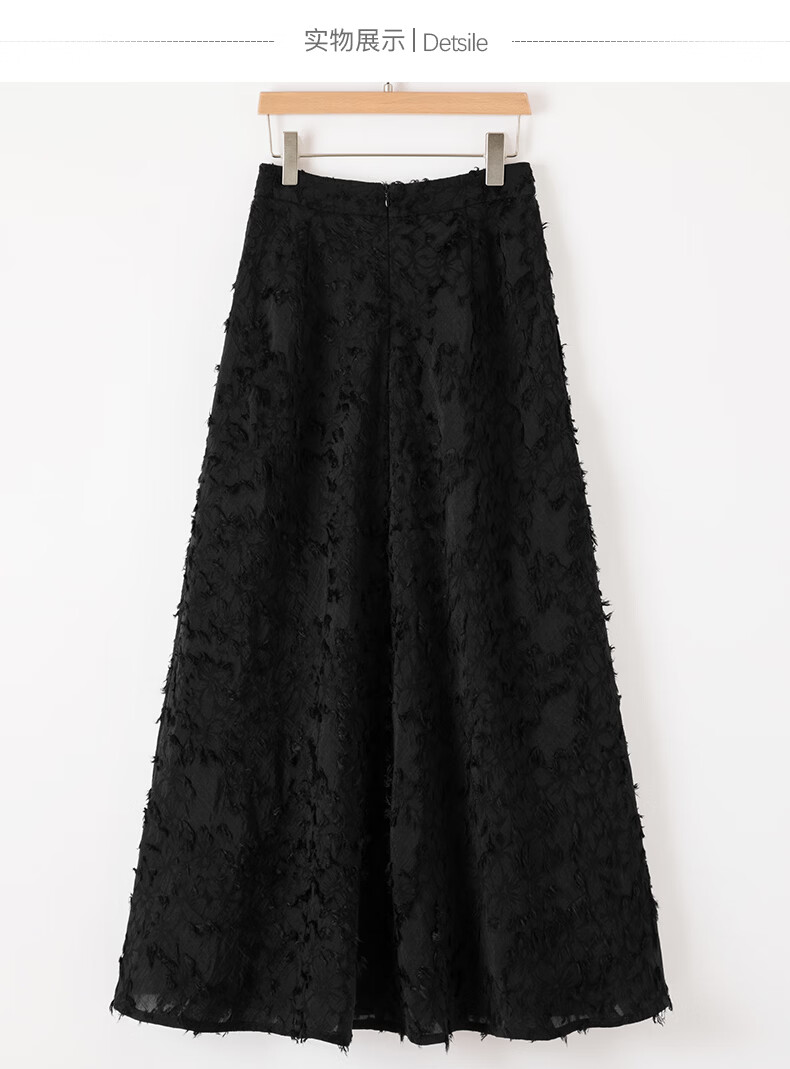 晚白2026年春款时尚提花半裙高腰显瘦莱赛尔亲肤柔软垂顺大摆半身裙 黑色 S