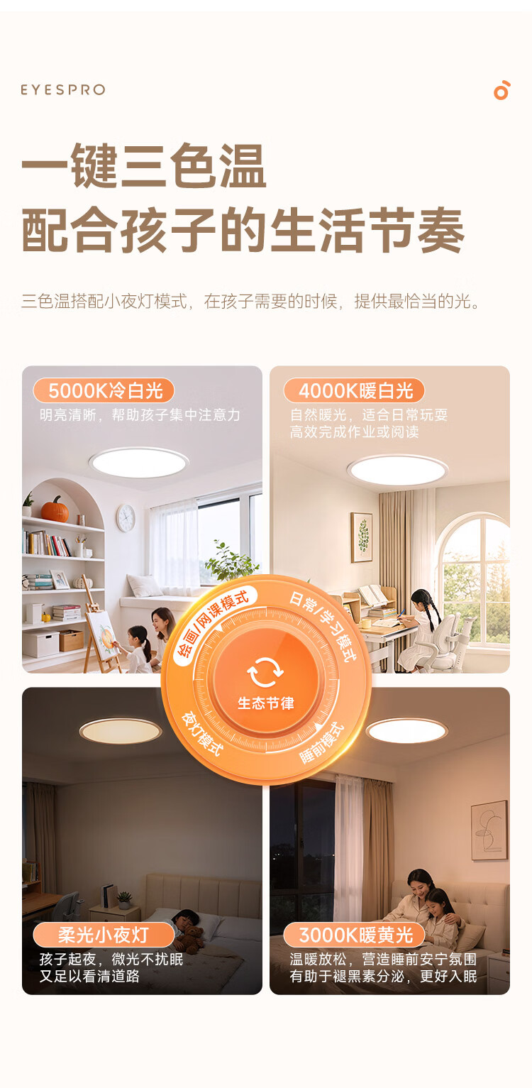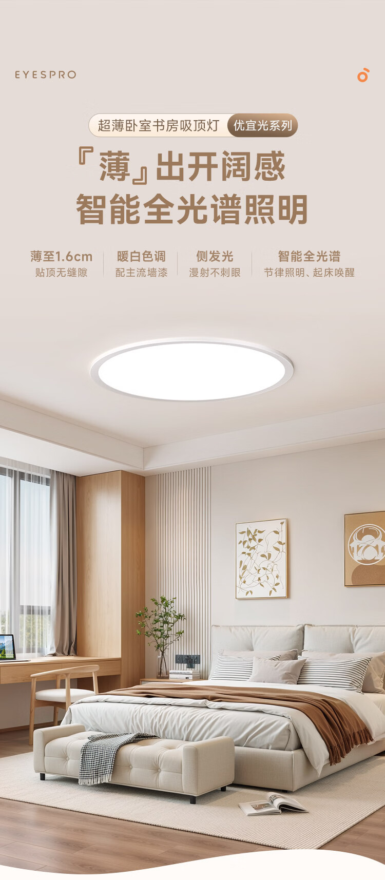 孩视宝优宜光·全光谱护眼智能吸顶灯2cm超薄无缝简约卧室书房走廊玄关 35W 12㎡内适用 3708lm 【优宜光】智能款