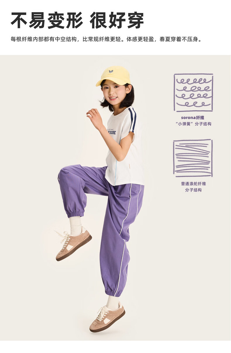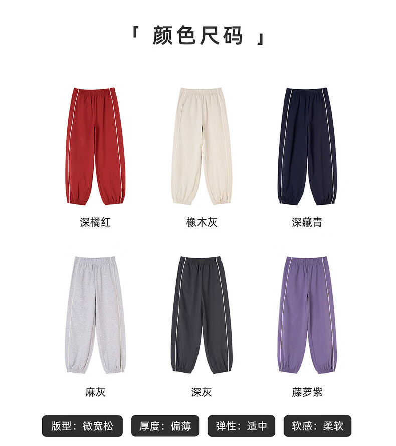 棉叔叔【凉感索罗娜运动裤】棉叔叔男童春夏新款嵌条休闲裤女童卫裤2.24 麻灰 120 120