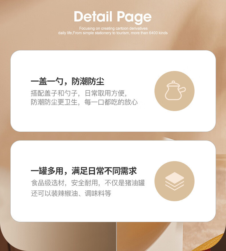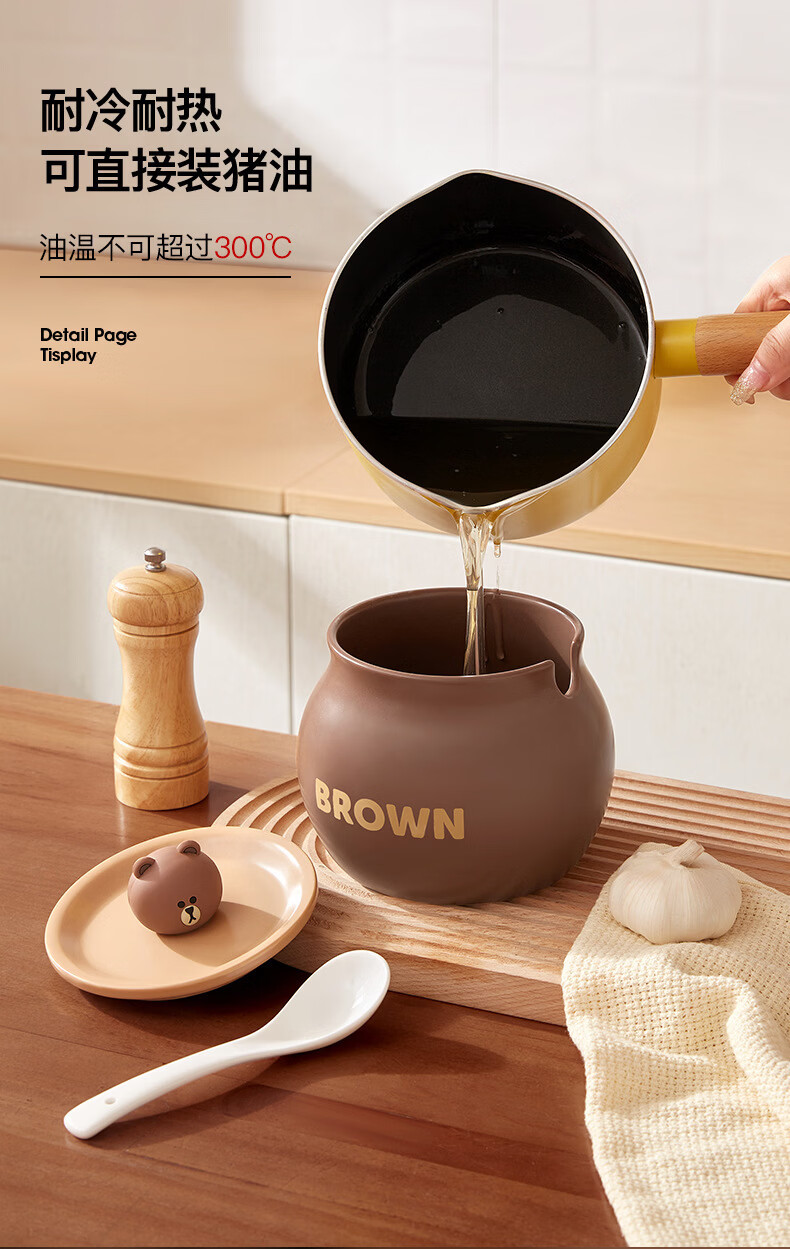 MMOTRO日本品牌调料罐猪油罐大容量盐罐厨房组合套装调料盒家用厨房调料 猪油罐-大号 【送专用小勺】