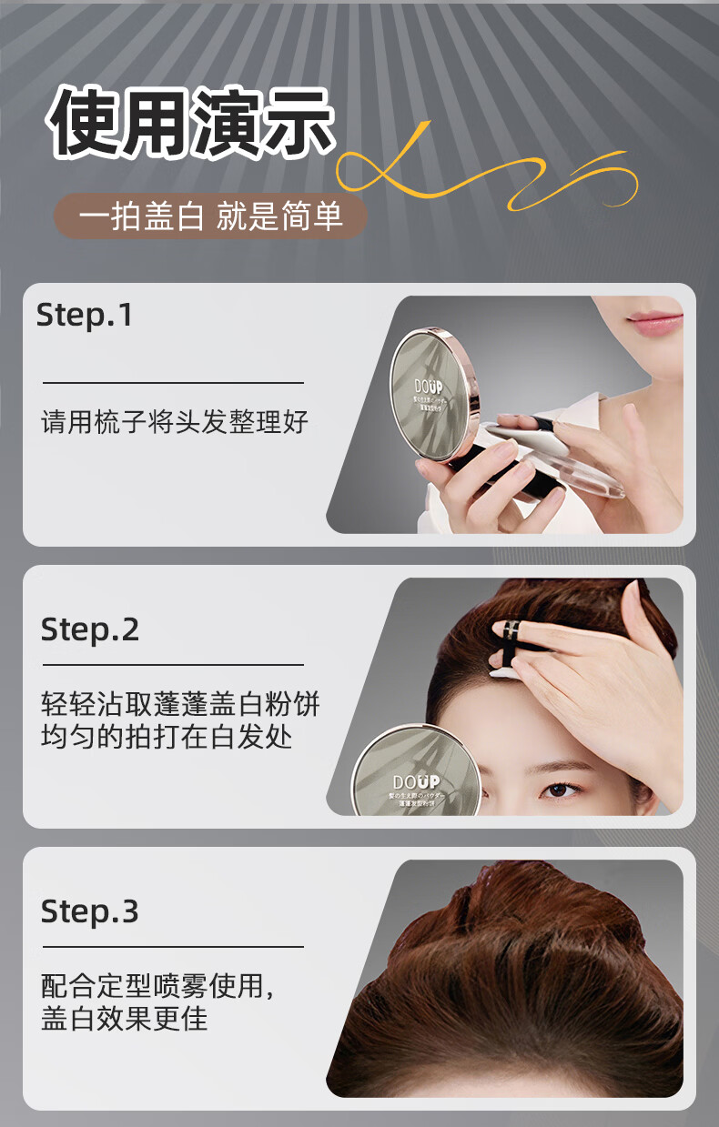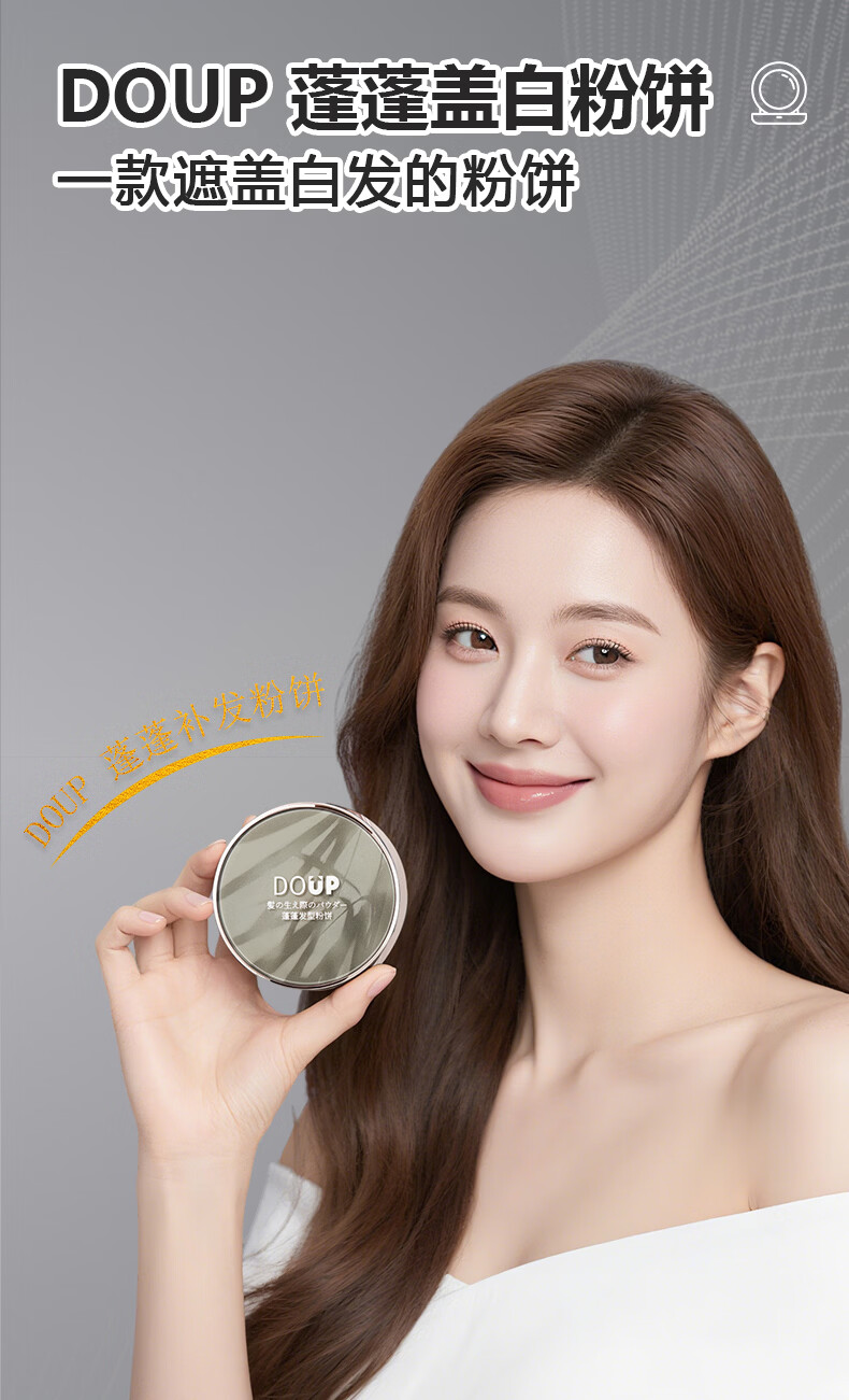 DOUP美发神器遮盖白发粉饼植物萃取一次性快速补色遮白 黑色*1盒