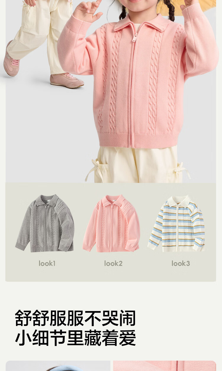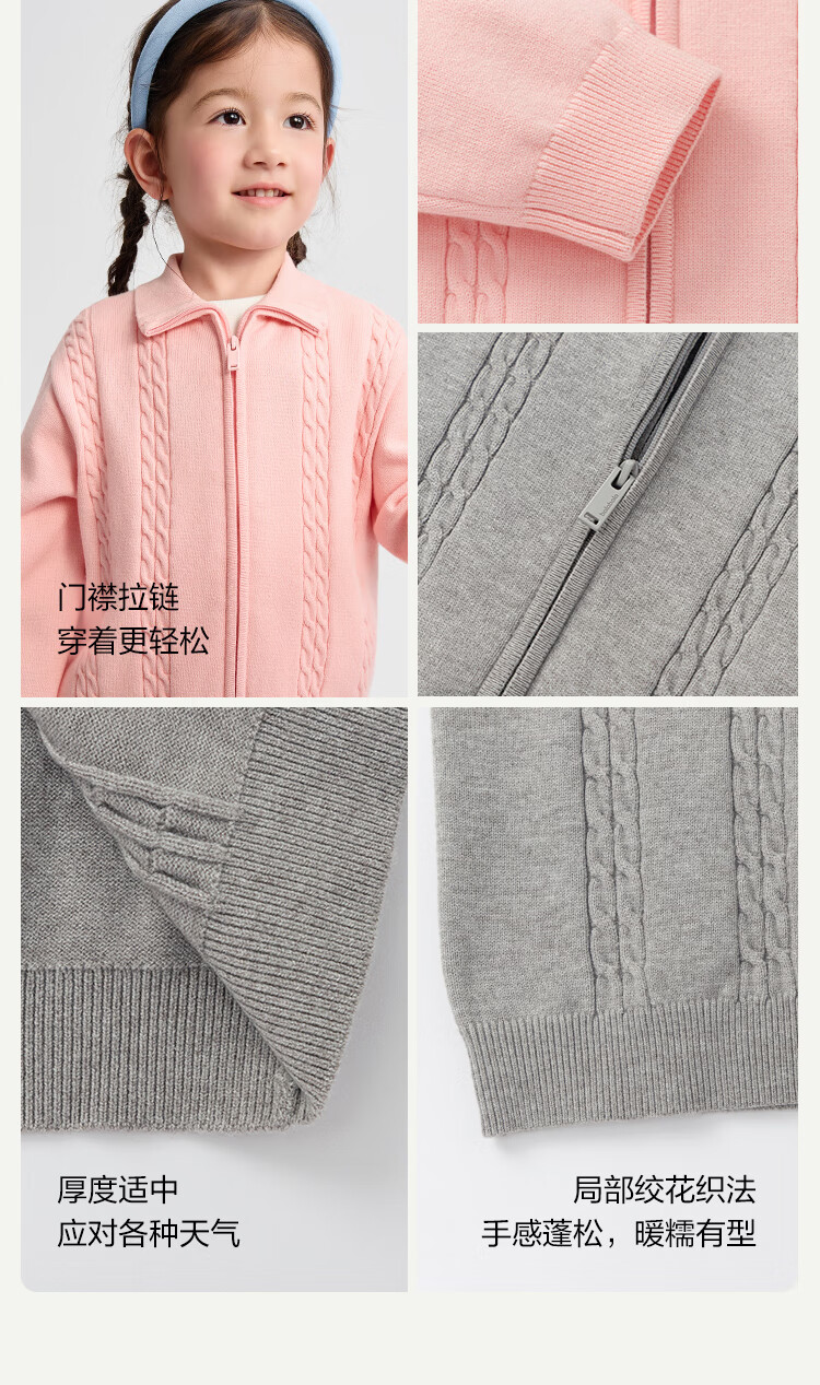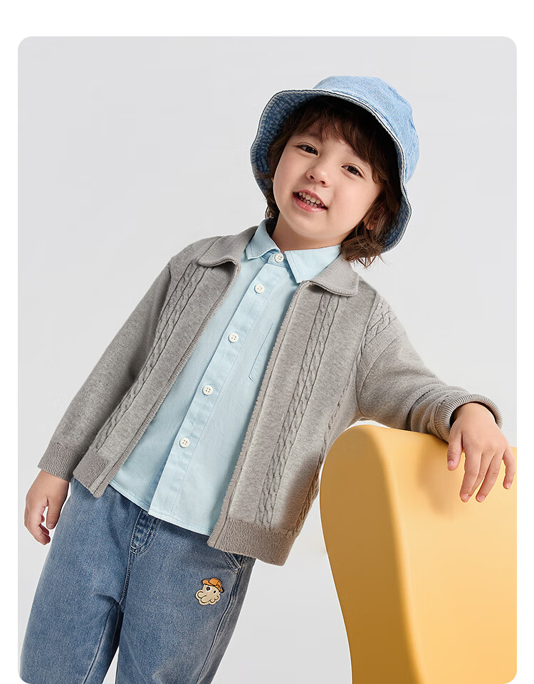 巴拉巴拉balaOne宝宝毛衣男童女童绞花开衫外套2025秋装百搭208325103207