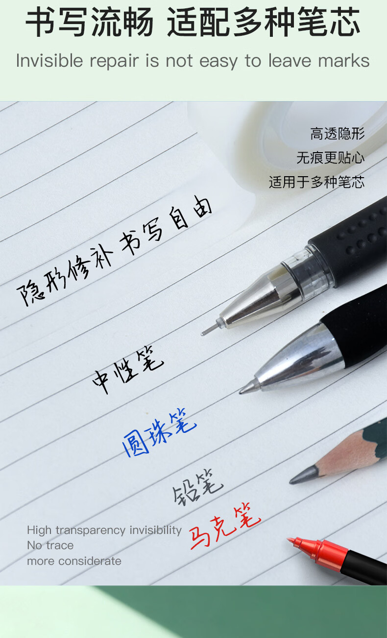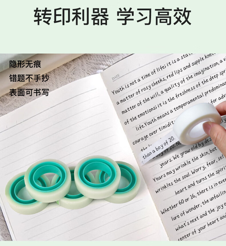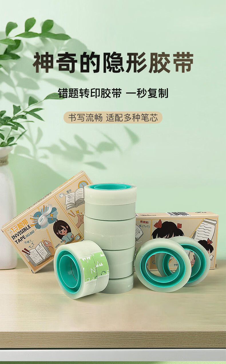错题胶带学生胶带纸开学必备学生工具学习用品可手撕书写隐形胶带写字复印错题转印隐形胶带 1盒2卷【包装随机】