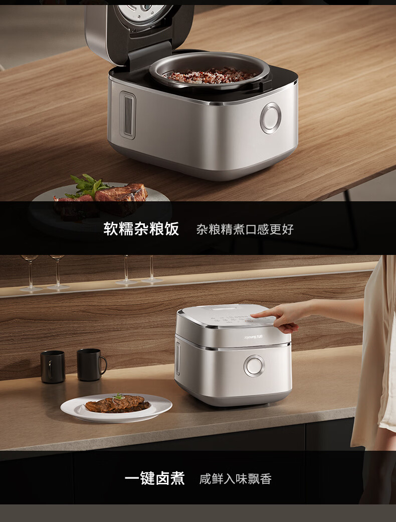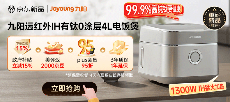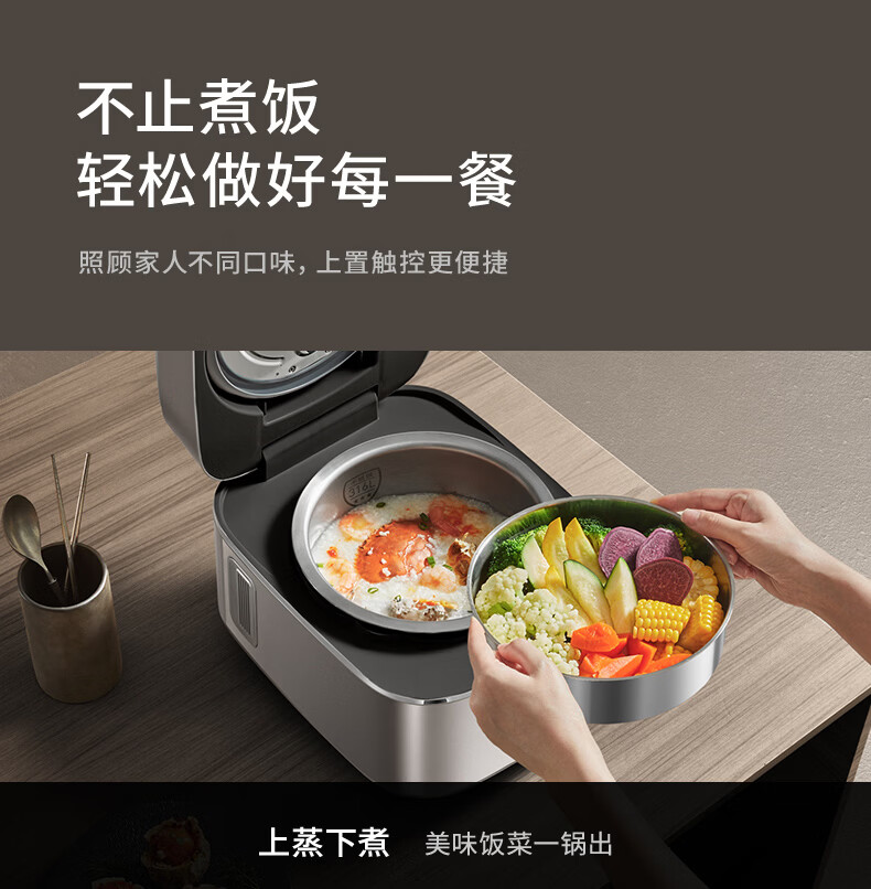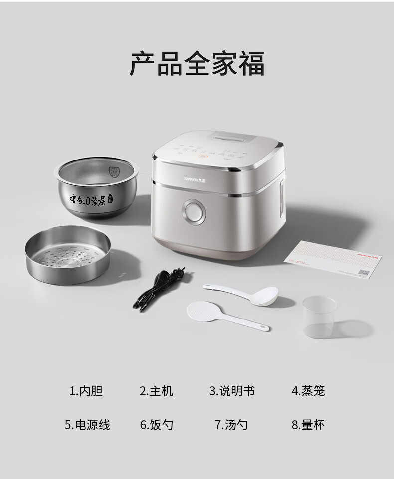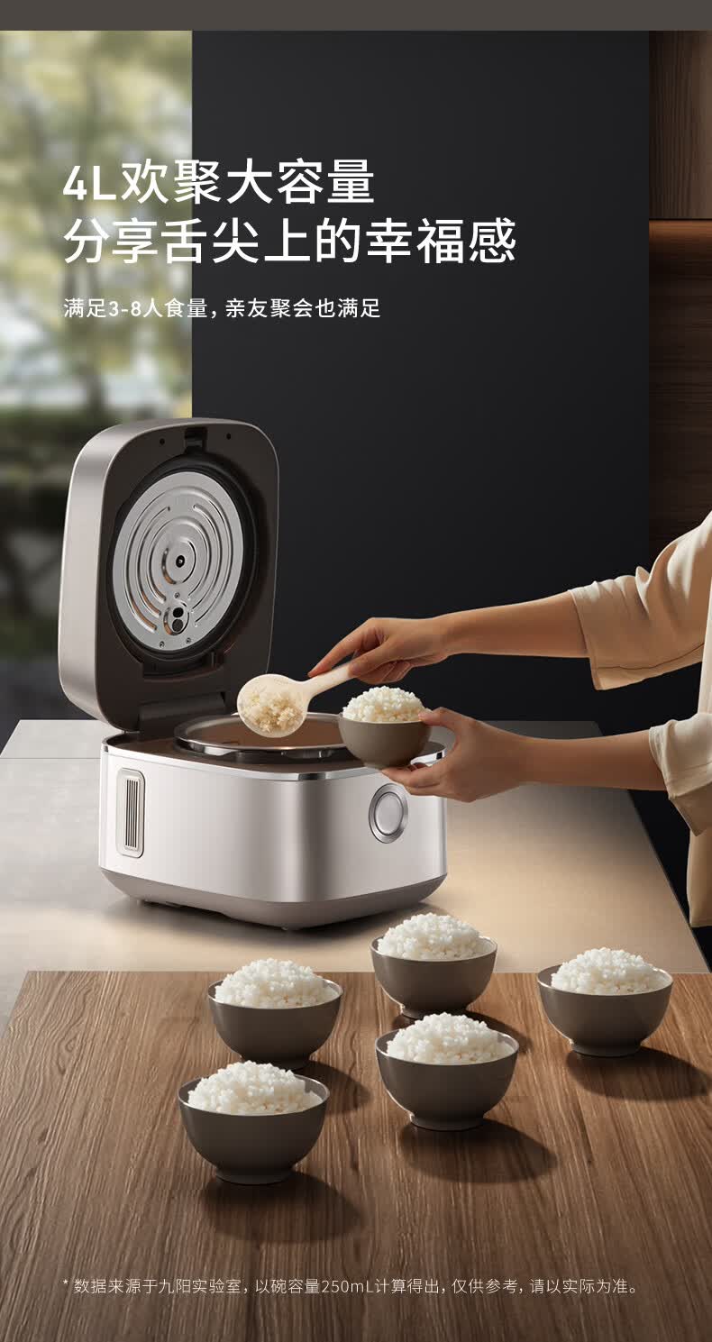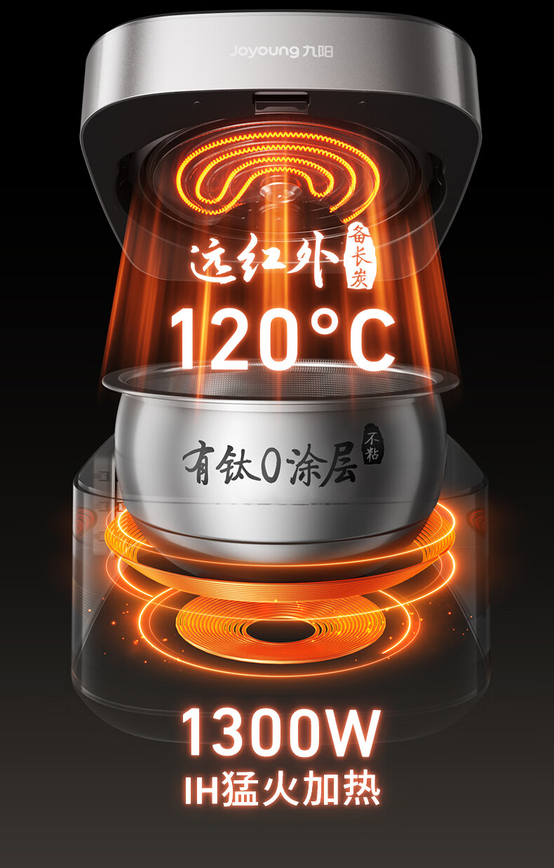 九阳(Joyoung)纯钛0涂层电饭煲防粘316L不锈钢内胆上蒸下煮4升3-4人1300W远红外IH电饭锅24h智能预约多口感40N1U