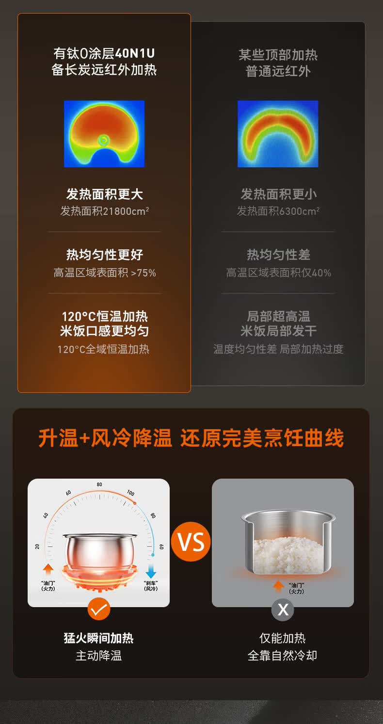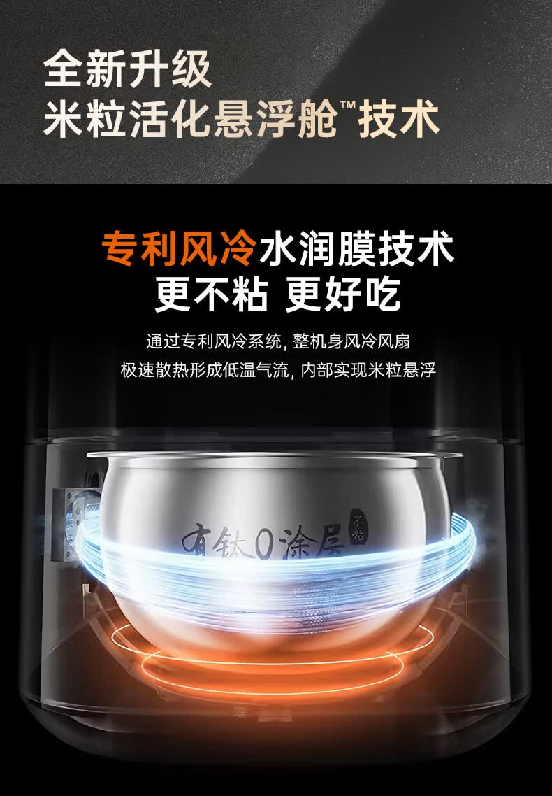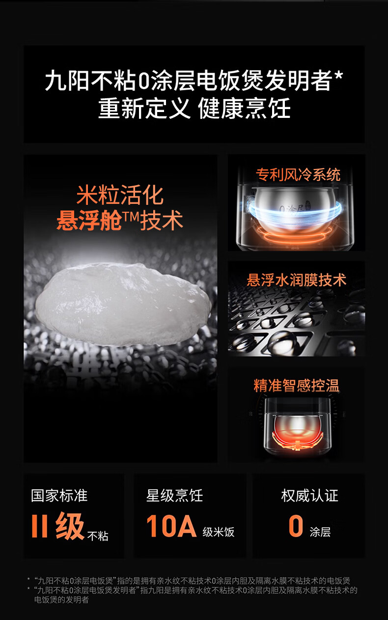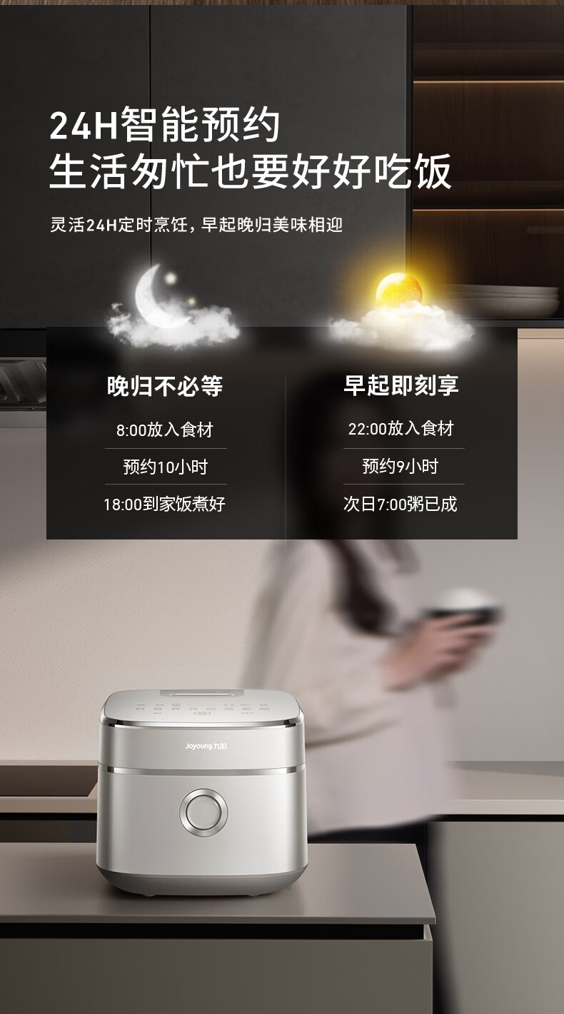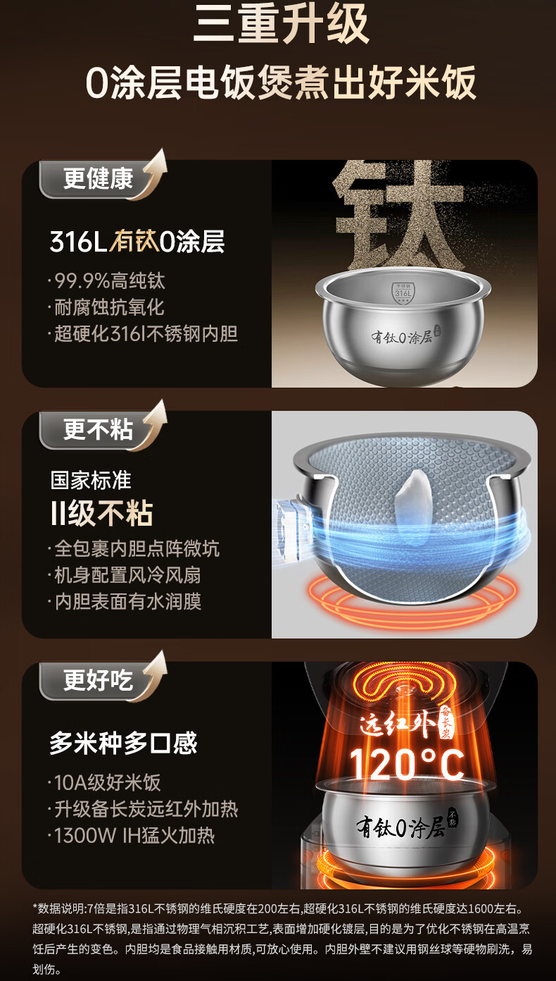 九阳(Joyoung)纯钛0涂层电饭煲防粘316L不锈钢内胆上蒸下煮4升3-4人1300W远红外IH电饭锅24h智能预约多口感40N1U