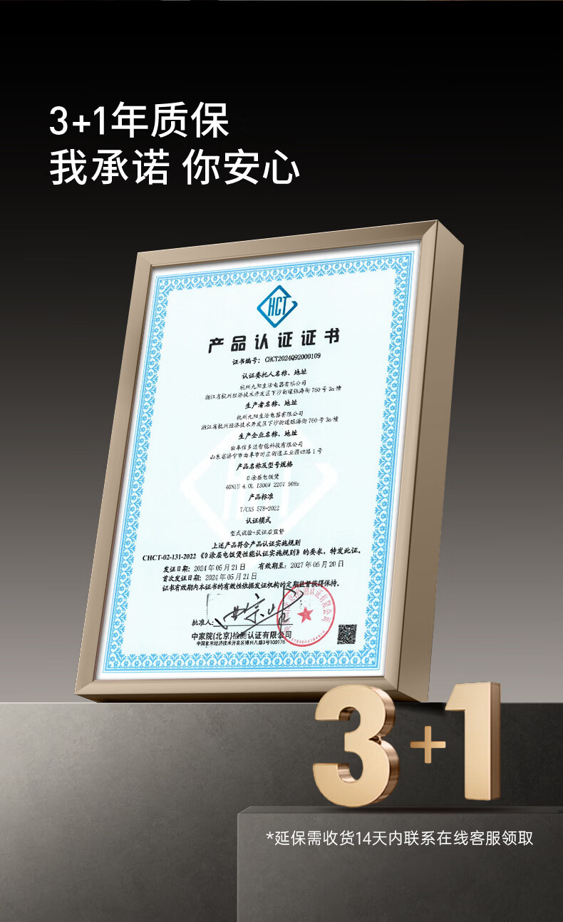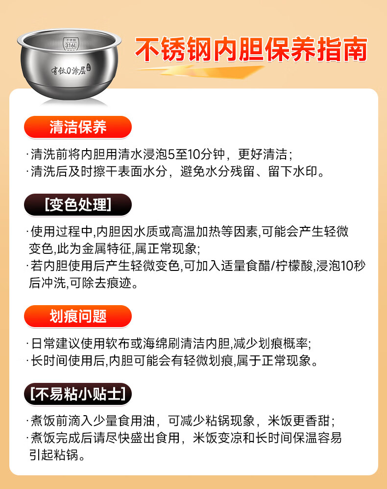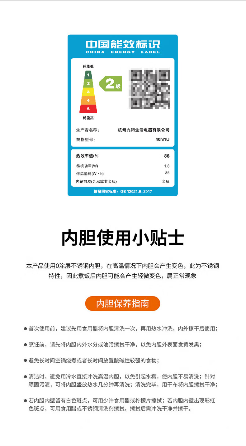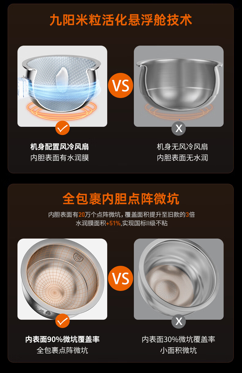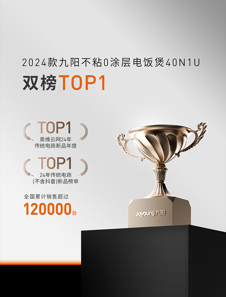 九阳(Joyoung)纯钛0涂层电饭煲防粘316L不锈钢内胆上蒸下煮4升3-4人1300W远红外IH电饭锅24h智能预约多口感40N1U