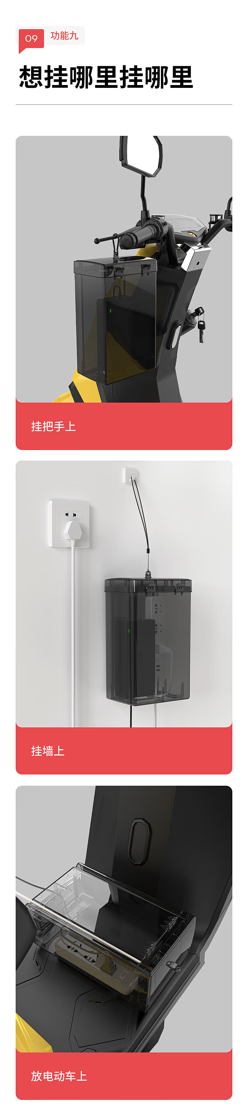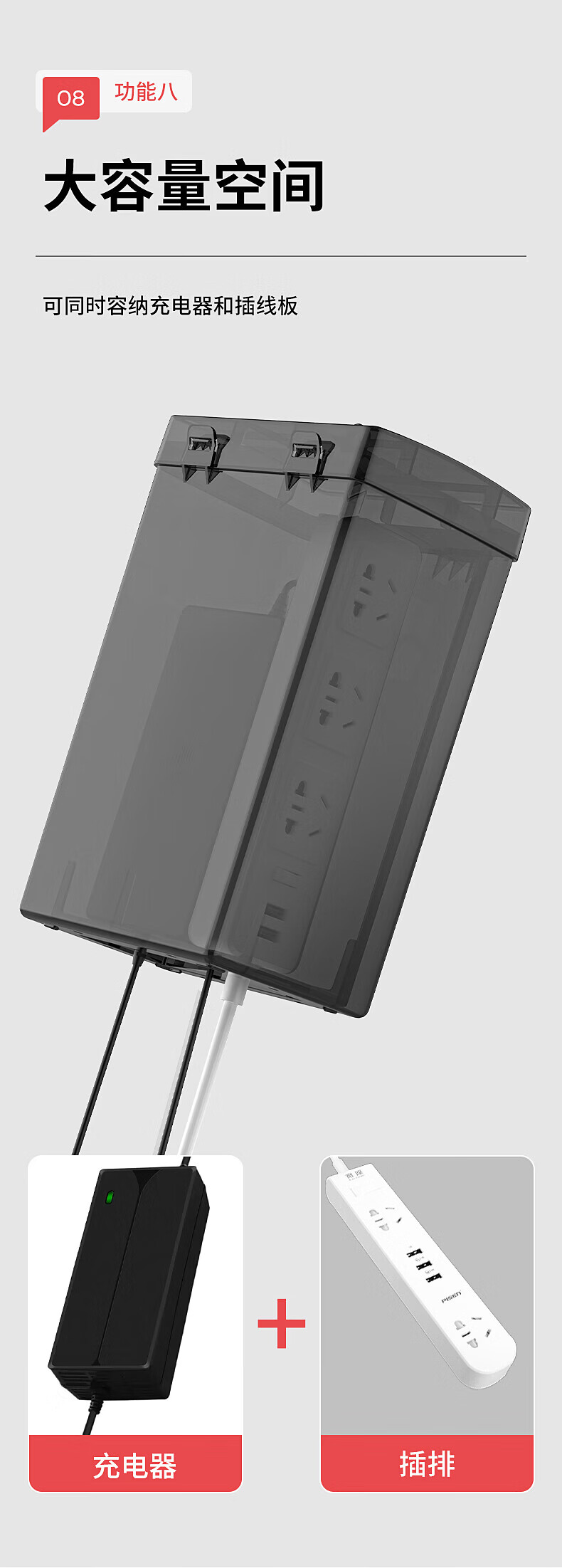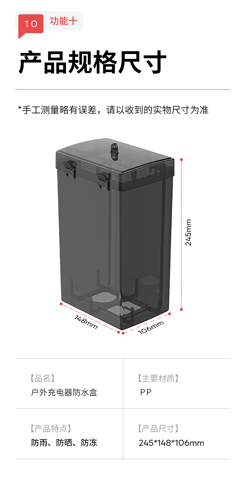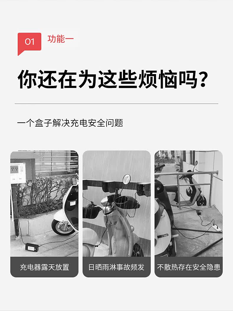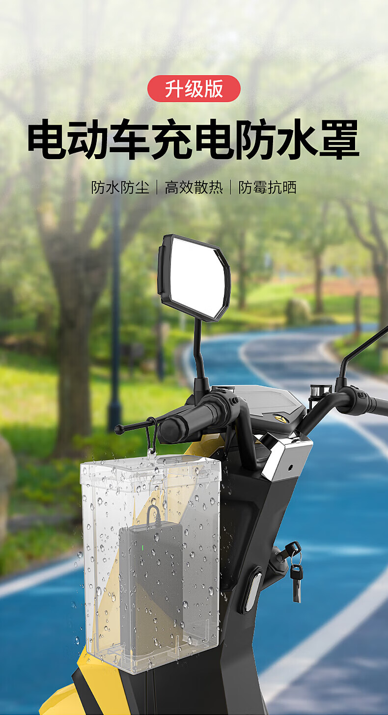 国际电工电瓶车电动车充电器防雨盒防水通用保护罩室外充电收纳插座防雨罩 充电器防水盒【黑透】
