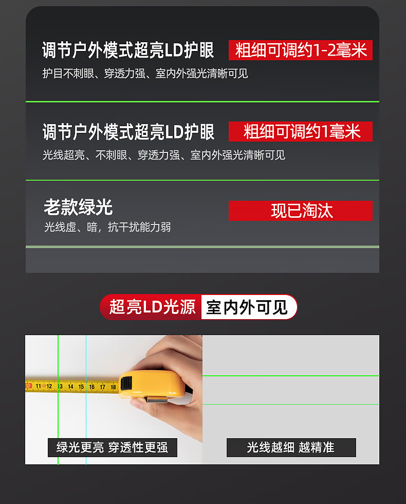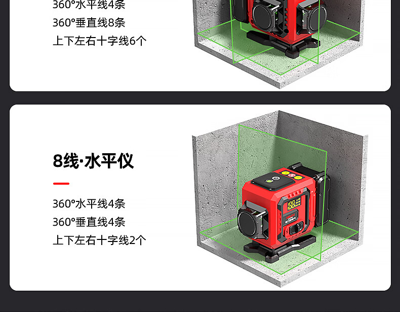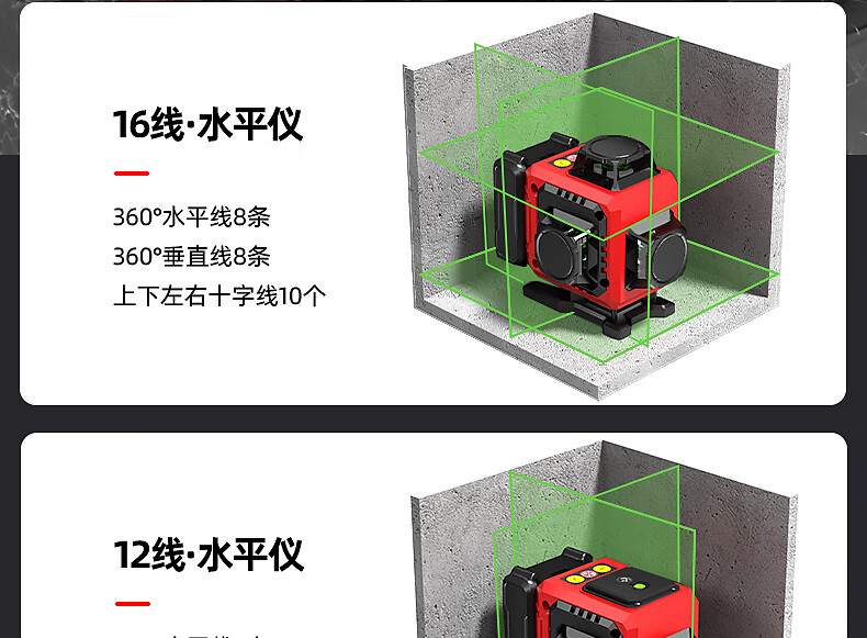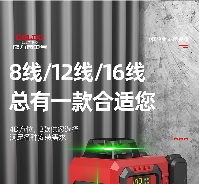 德力西电气绿光12线红外线水平仪双电高精度强光细线自动调平激光户外工地 超亮绿光12线双电标配