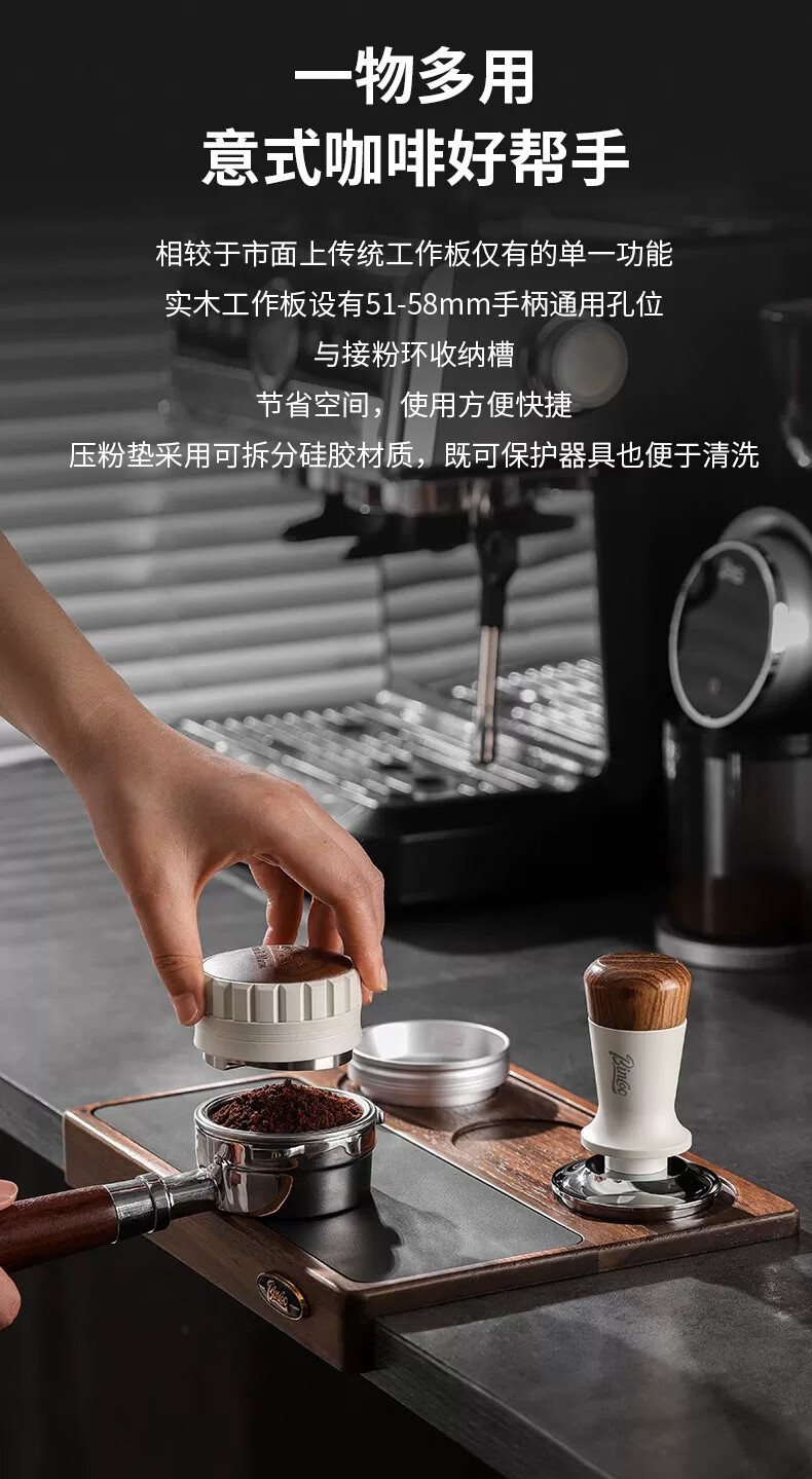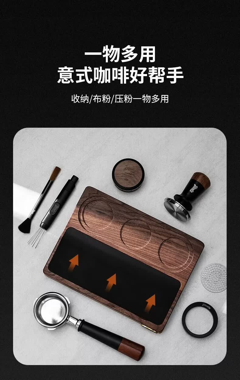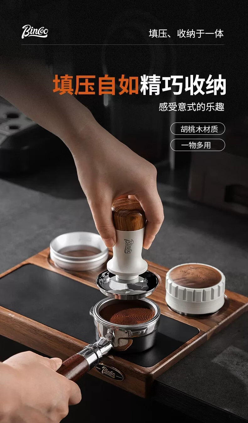 Bincoo咖啡器具收纳压粉底座意式压粉布粉器套装51/58mm通用复古 胡桃木多功能收纳板51/53/58mm