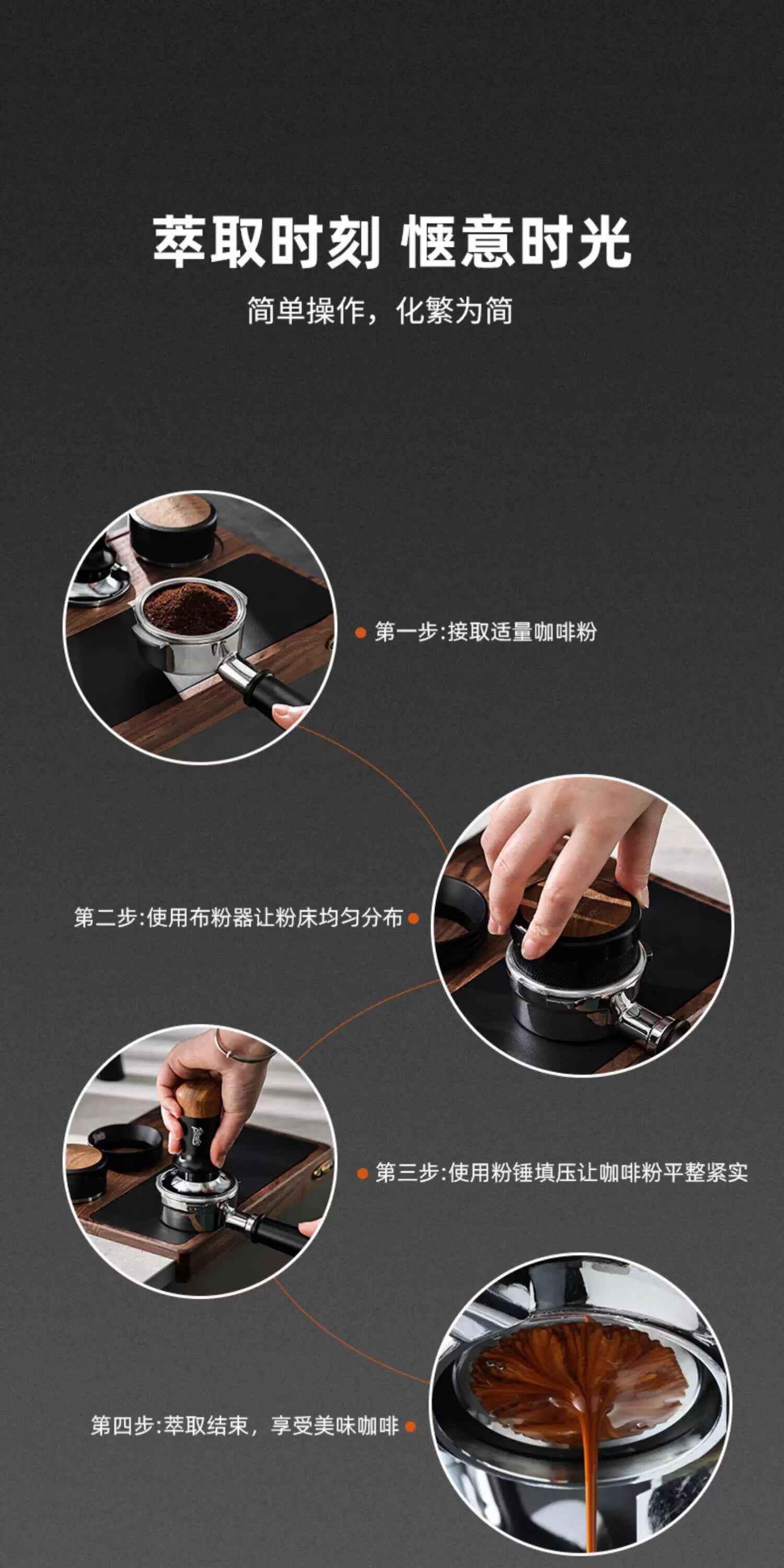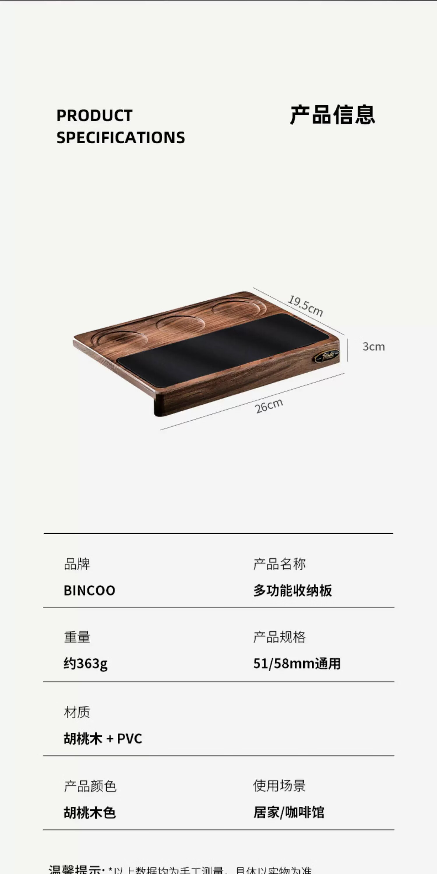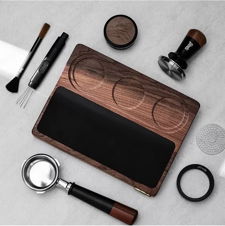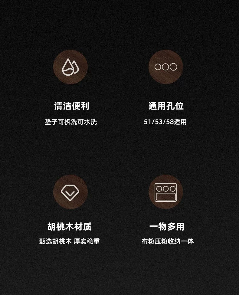Bincoo咖啡器具收纳压粉底座意式压粉布粉器套装51/58mm通用复古 胡桃木多功能收纳板51/53/58mm