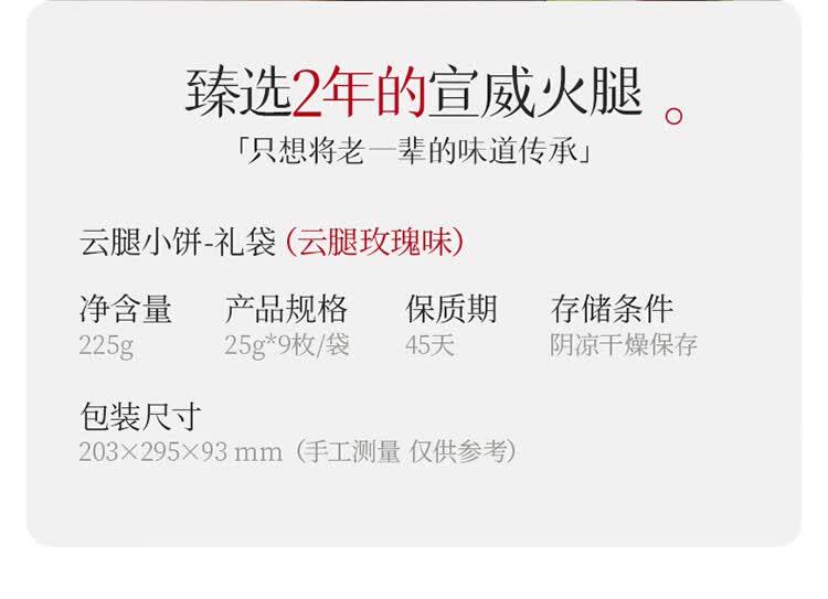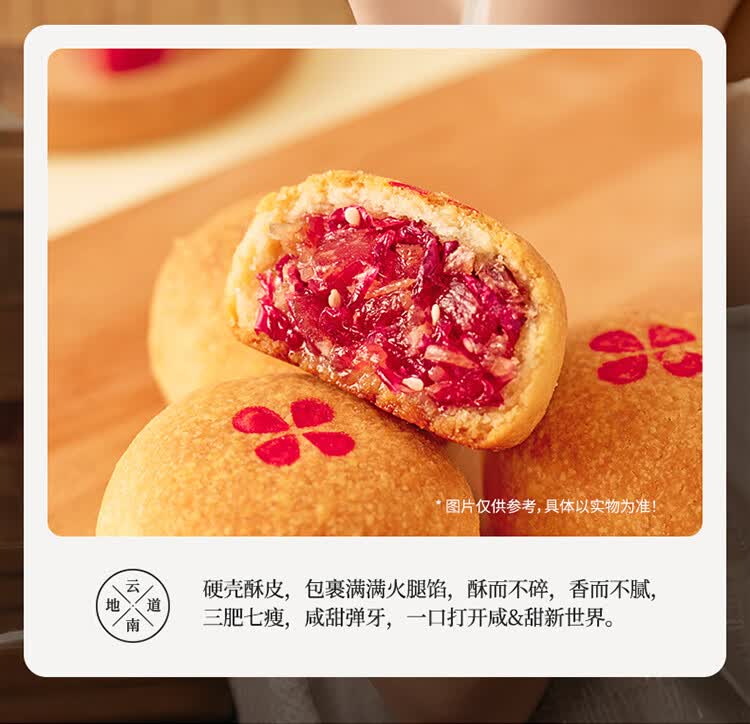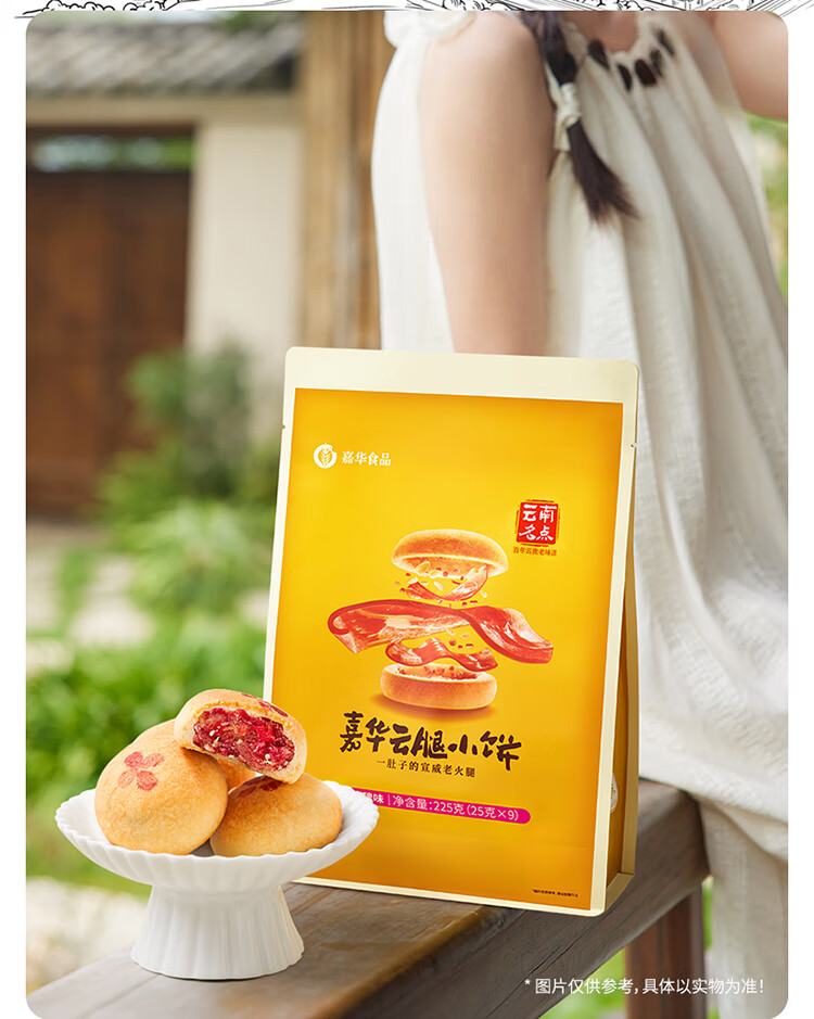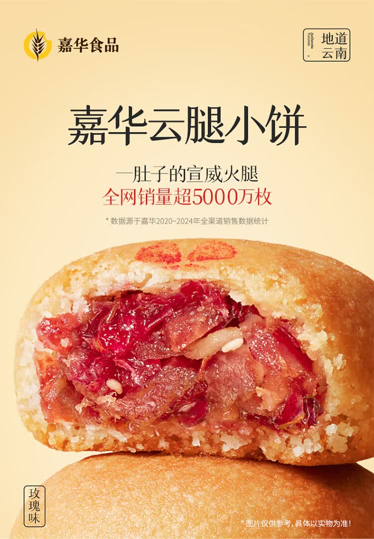 嘉华鲜花饼 云腿小饼玫瑰口味礼袋9枚225g云南特产火腿小吃零食早餐