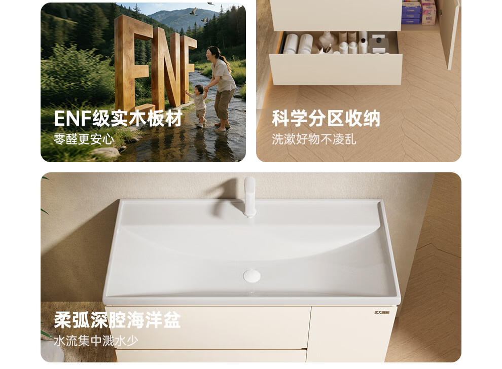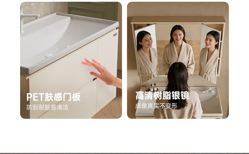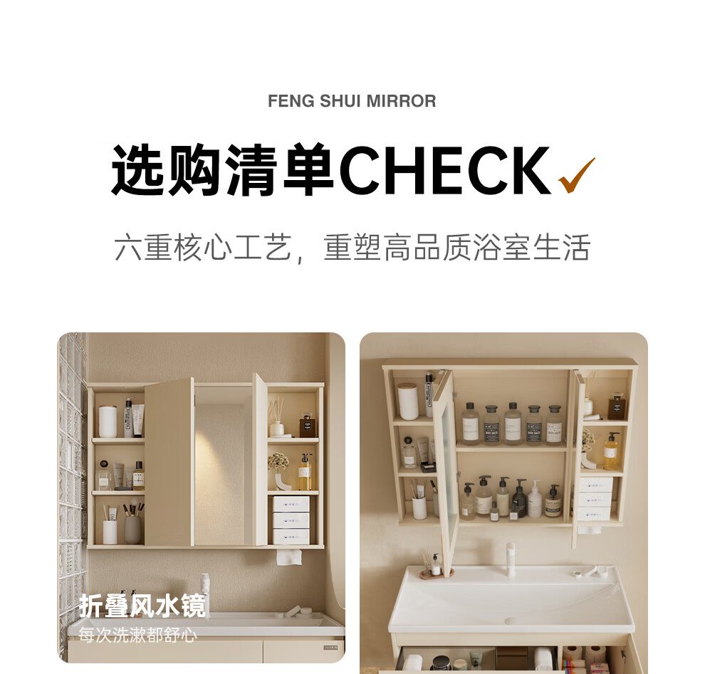 浪鲸(SSWW)卫浴新款浴室柜奶油风海洋盆洗手盆柜组合一体盆风水镜折叠镜柜 100cm【风水折叠镜柜+陶瓷盆】 【不含龙头】