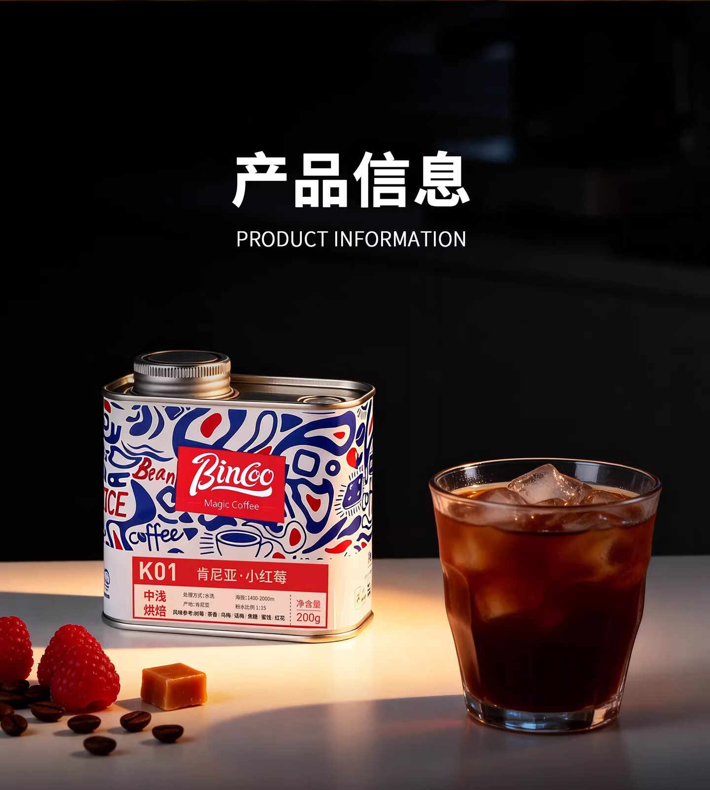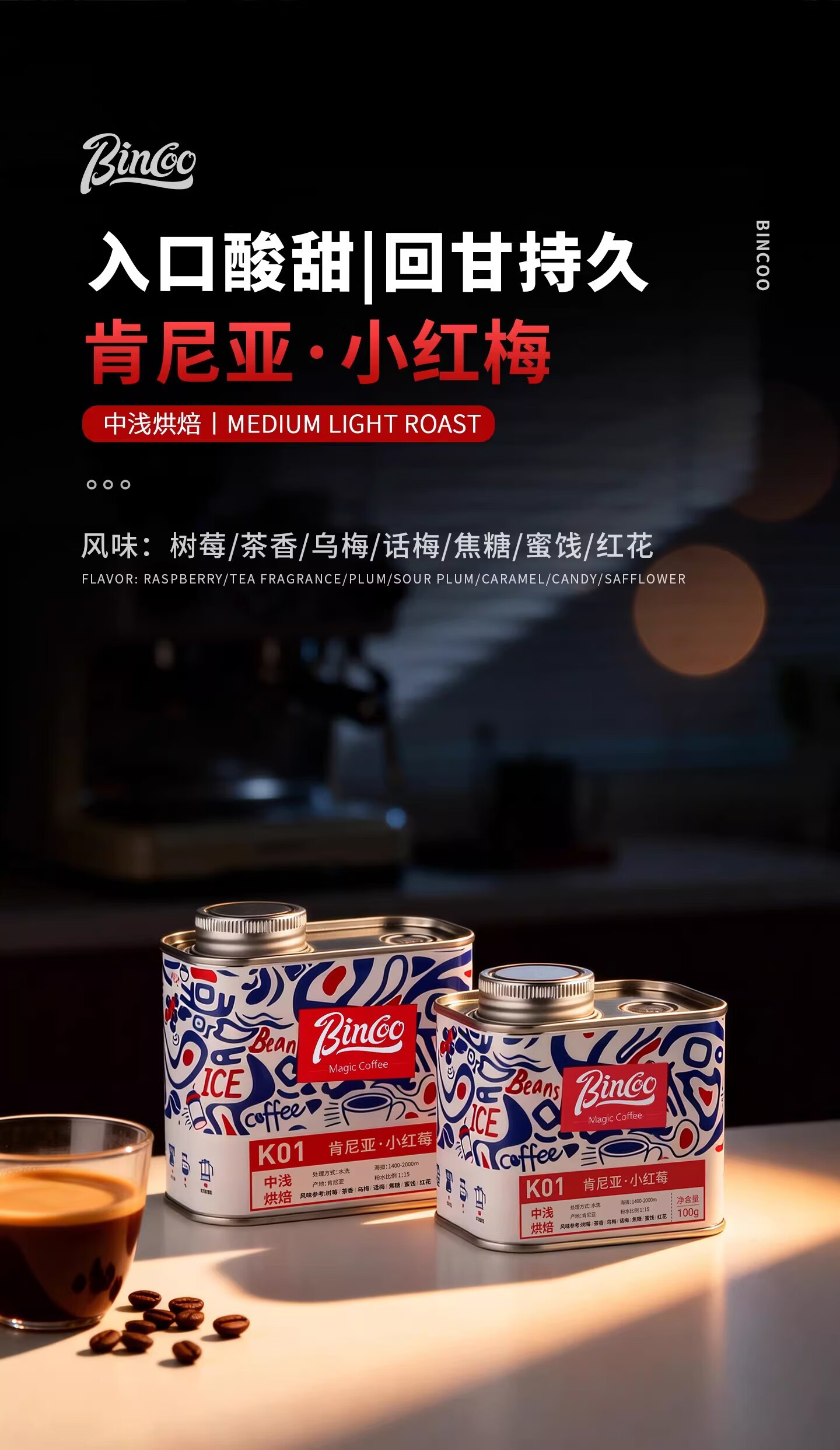 Bincoo肯尼亚·小红莓K01手冲咖啡豆滴滤咖啡中浅烘焙水洗咖啡豆 100g罐装 中浅烘焙