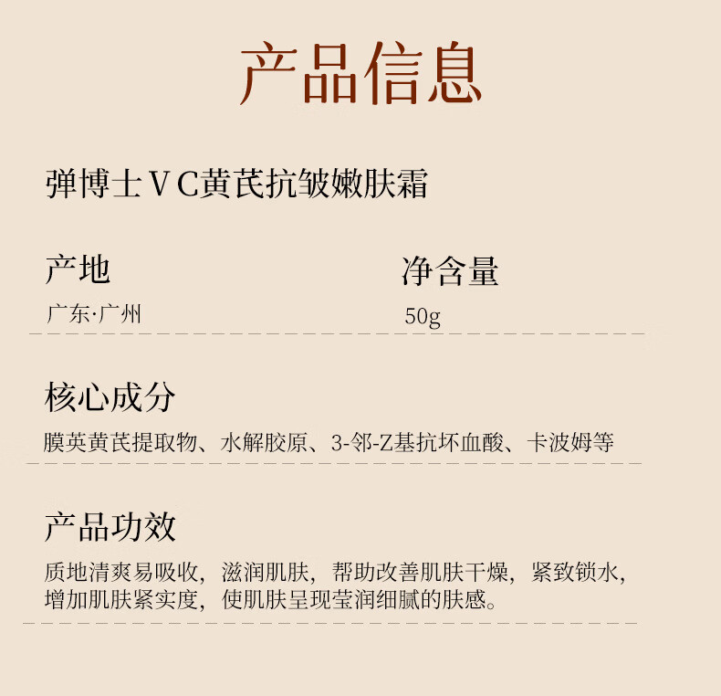【严选好货】弹博士黄芪霜VC黄芪抗皱嫩肤霜保湿紧致抗皱面霜 50g