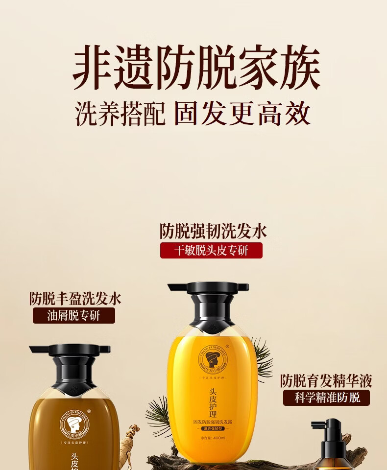 长发小寨【抖音直播&新华网同款】非遗防脱洗发水组合 防脱精华液 养发乳 稻米蛋白养发乳200g*3+小样50g*2