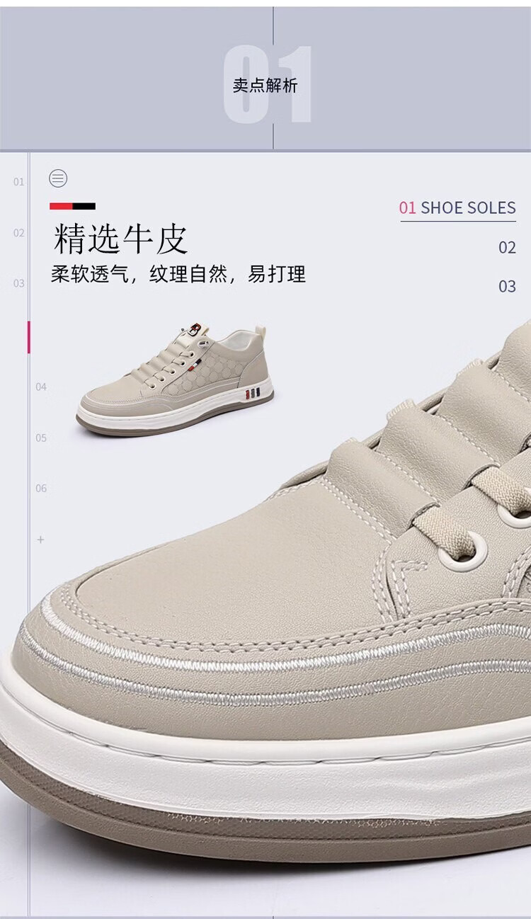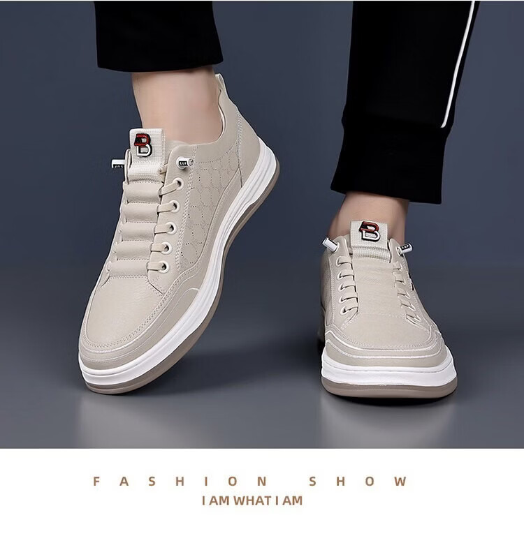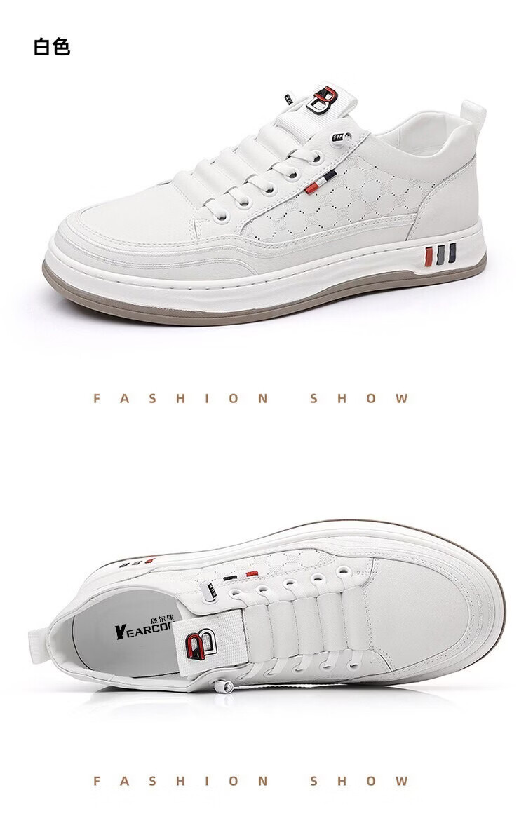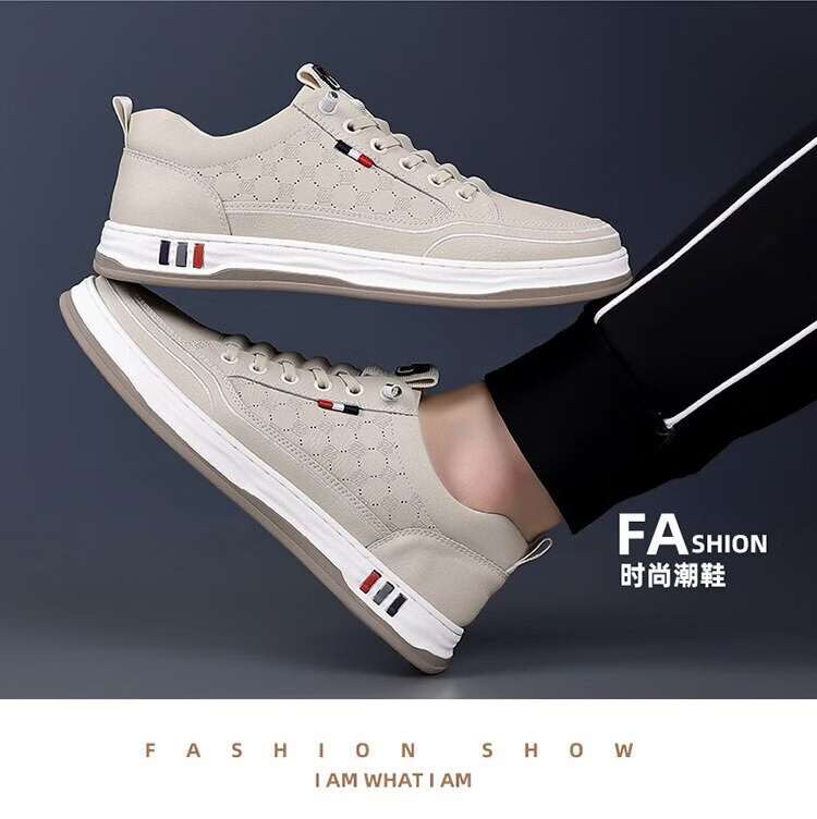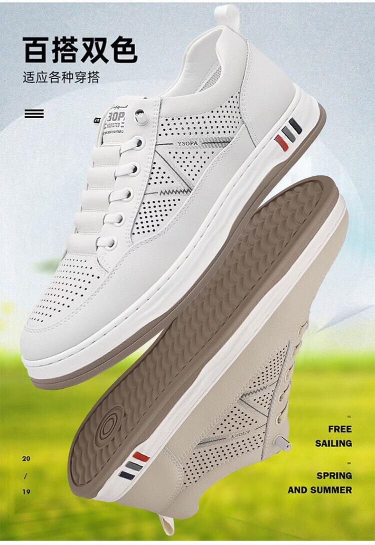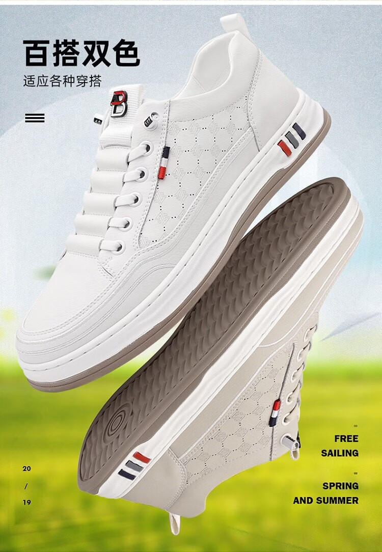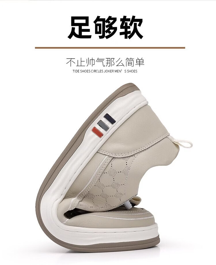 意尔康王子男鞋2026夏季新款真皮透气休闲板鞋男士百搭镂空潮流软底小白鞋男 米色 单层 真皮 40