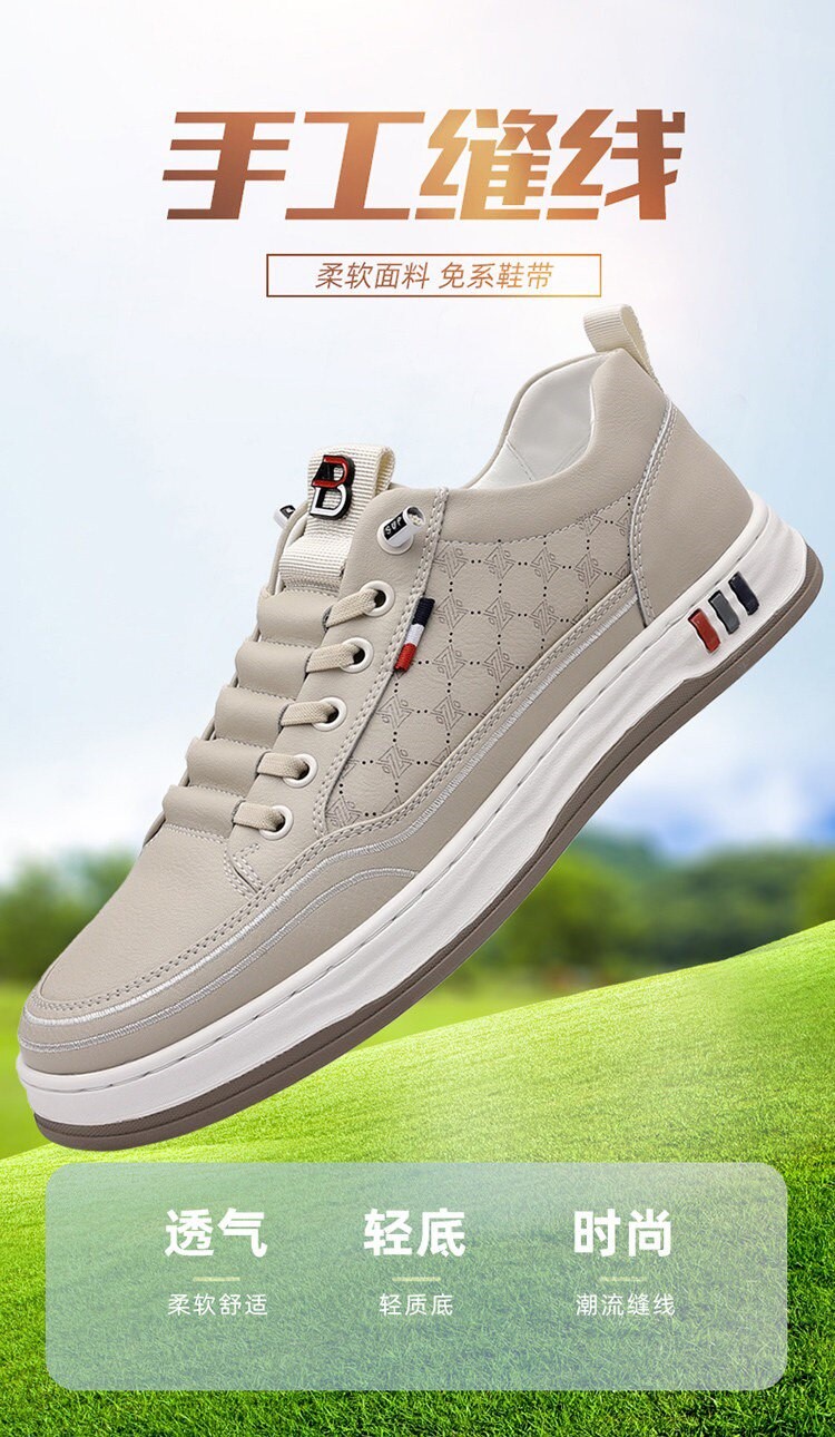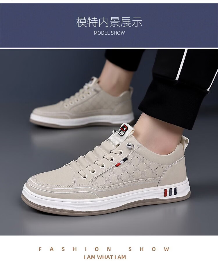 潮流轻奢男鞋2026春夏新款透气运动鞋男软底休闲减震跑步鞋子男 NK336白兰色【皮面款】 42