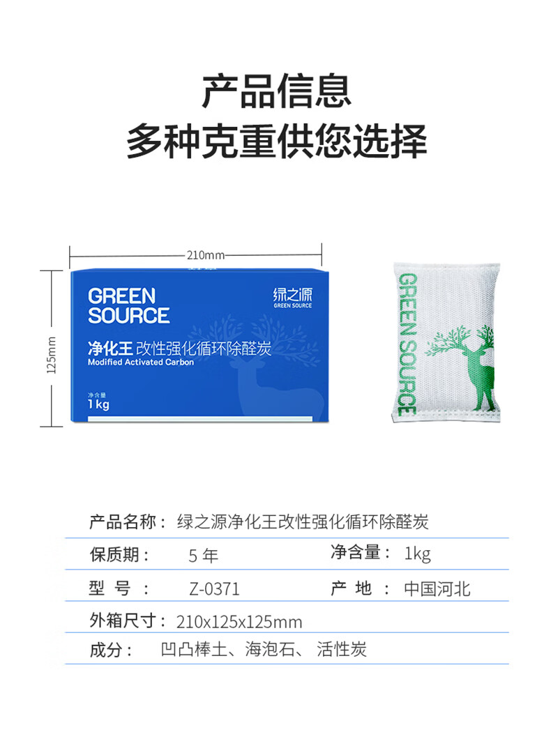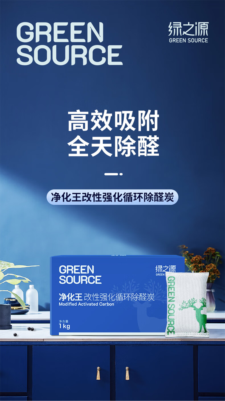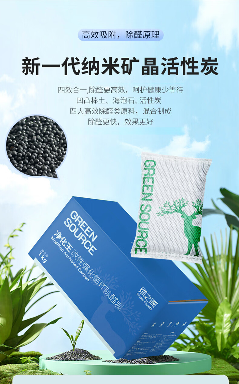 绿之源 净化王去甲醛新房装修除甲醛改性活性炭新房汽车除味去异味炭包 强化除醛丨治理10平方丨1000g
