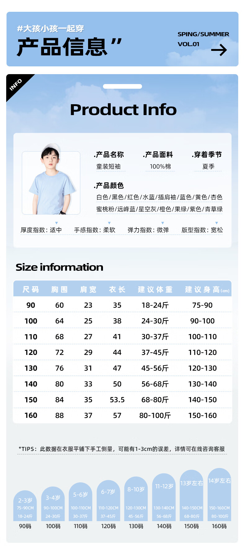 小猪班纳(PEPCO)儿童纯棉短袖t恤2026夏季男女童新款重磅半截袖亲肤柔软吸汗童装 【纯棉透气短袖】01 90