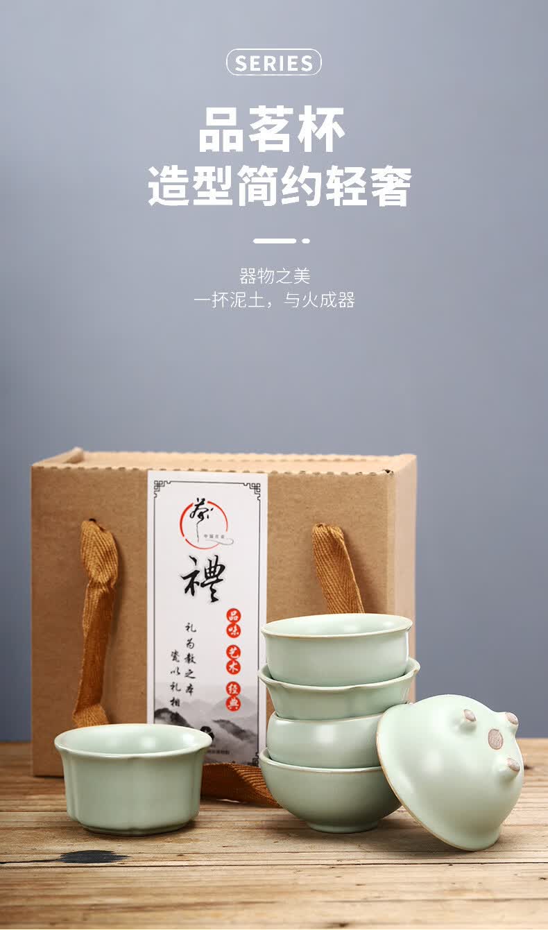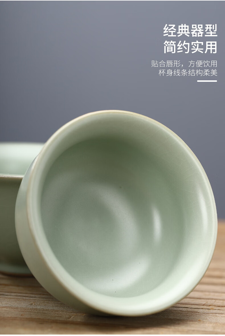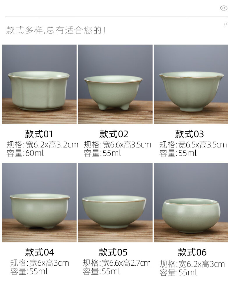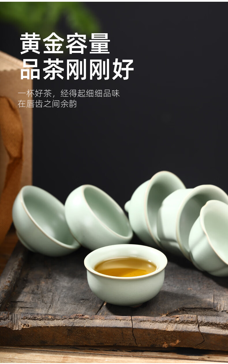 壹加壹汝窑主人杯可养品茗杯开片茶盏茶碗陶瓷功夫茶具汝瓷茶杯商 6个 哥窑装