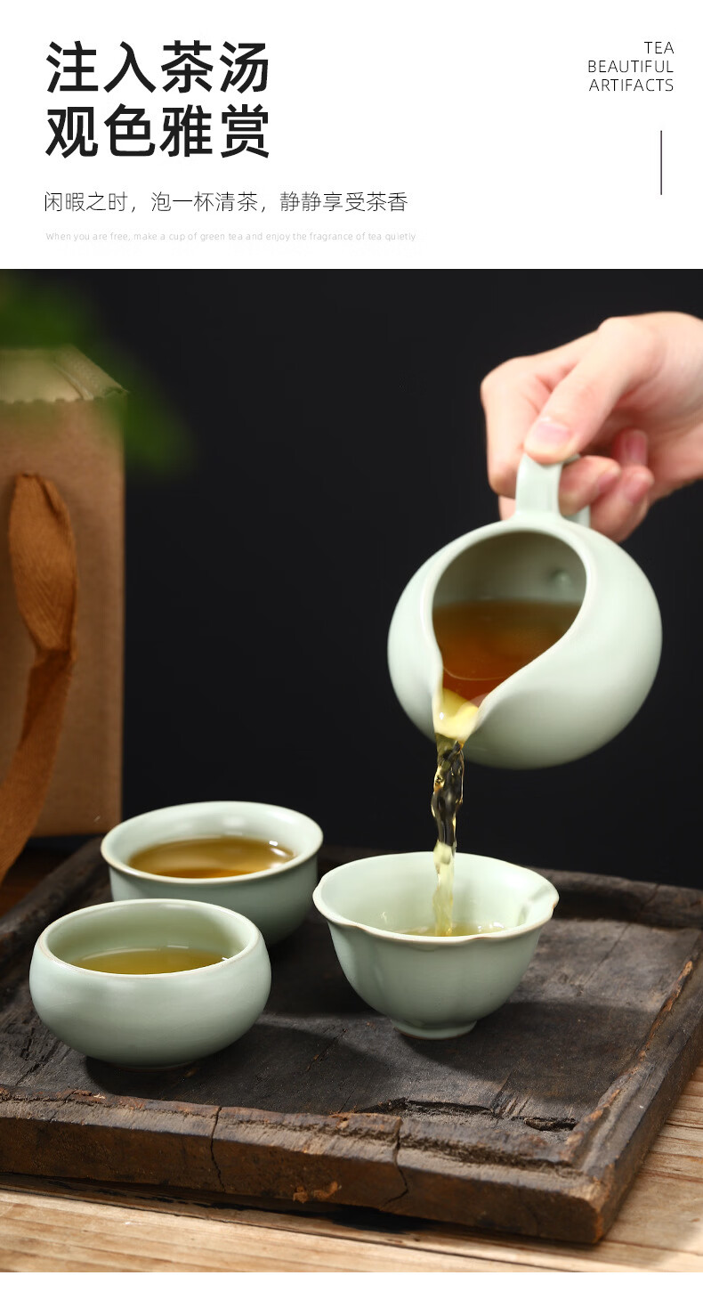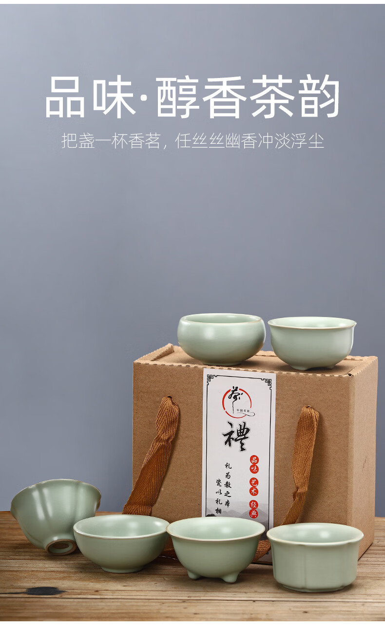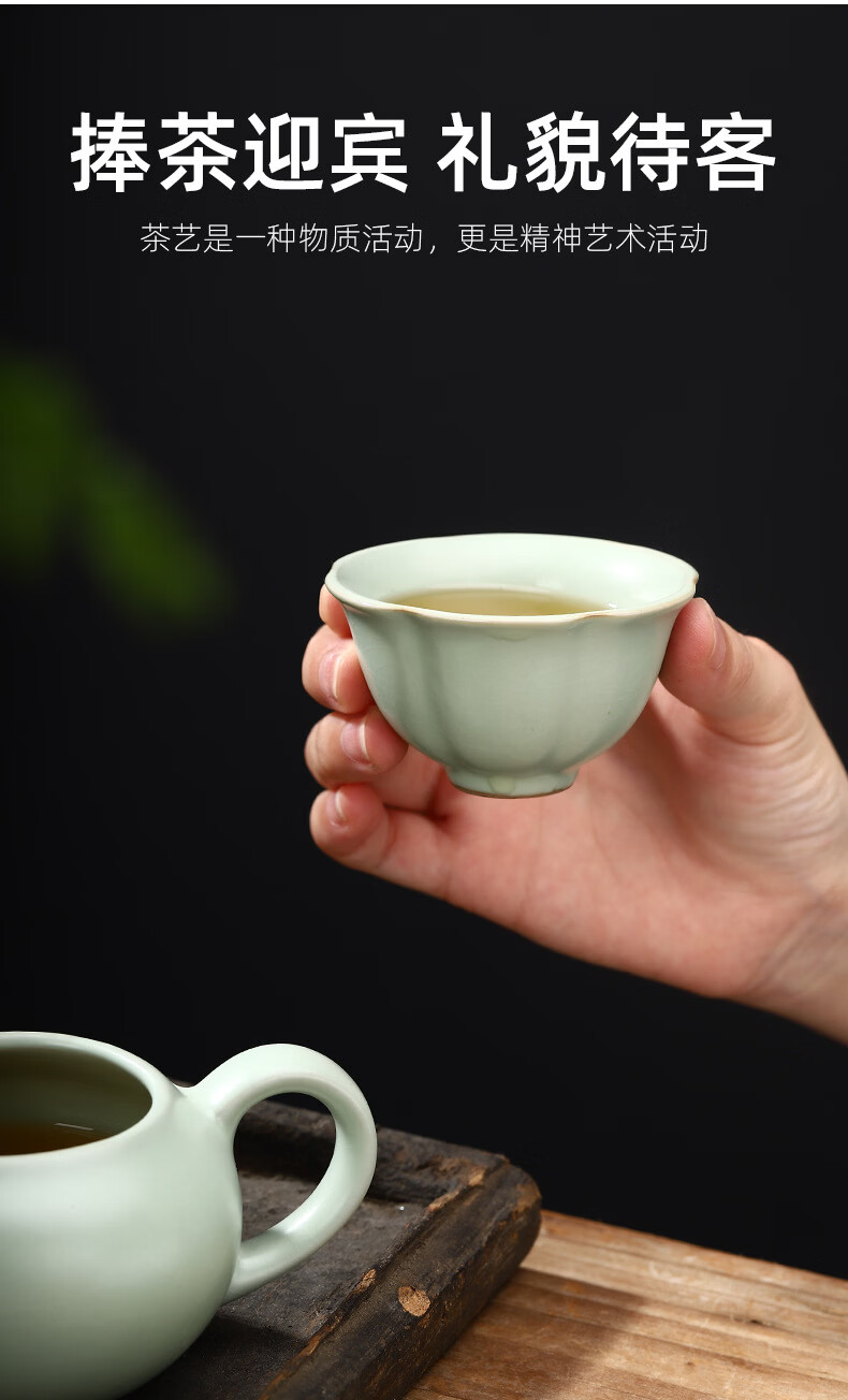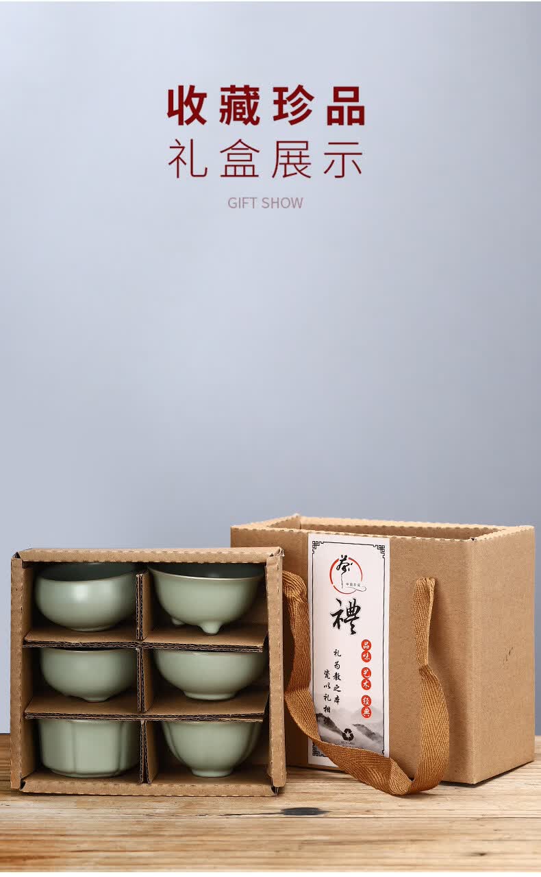 壹加壹汝窑主人杯可养品茗杯开片茶盏茶碗陶瓷功夫茶具汝瓷茶杯商 6个 哥窑装