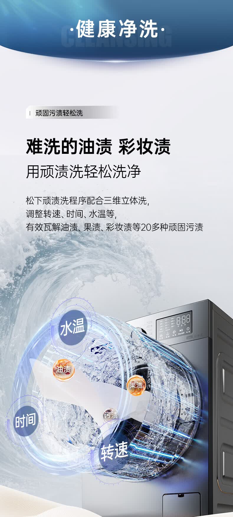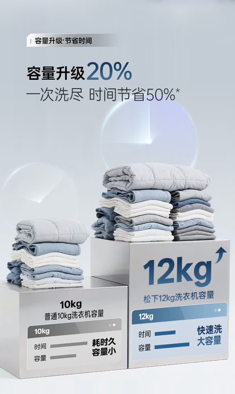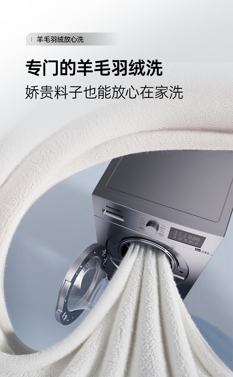 松下(Panasonic)滚筒洗衣机12公斤一级能效大海象家用大容量高温除菌除螨洗自清洁DD直驱变频1.27高洗净比大筒径 XQG120-J2M1 滚筒单洗 12kg