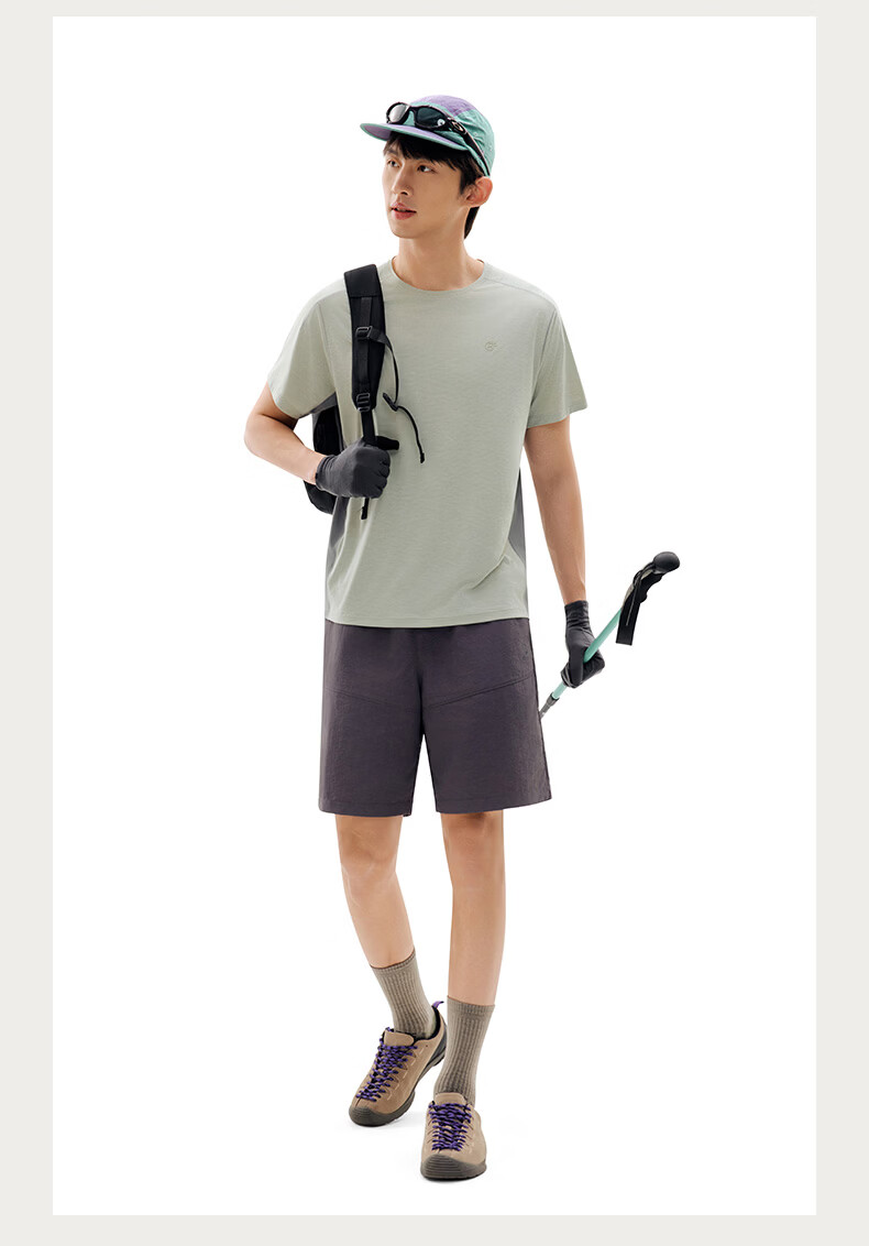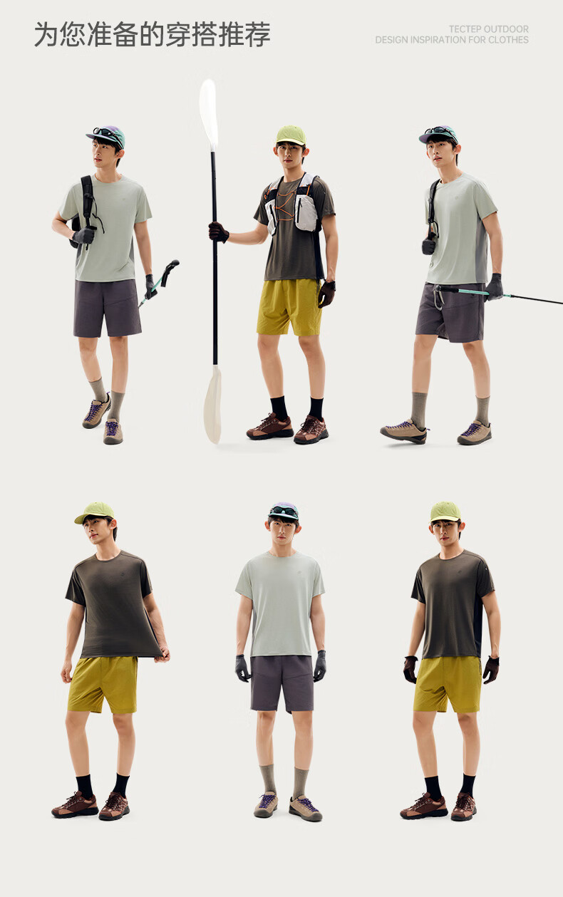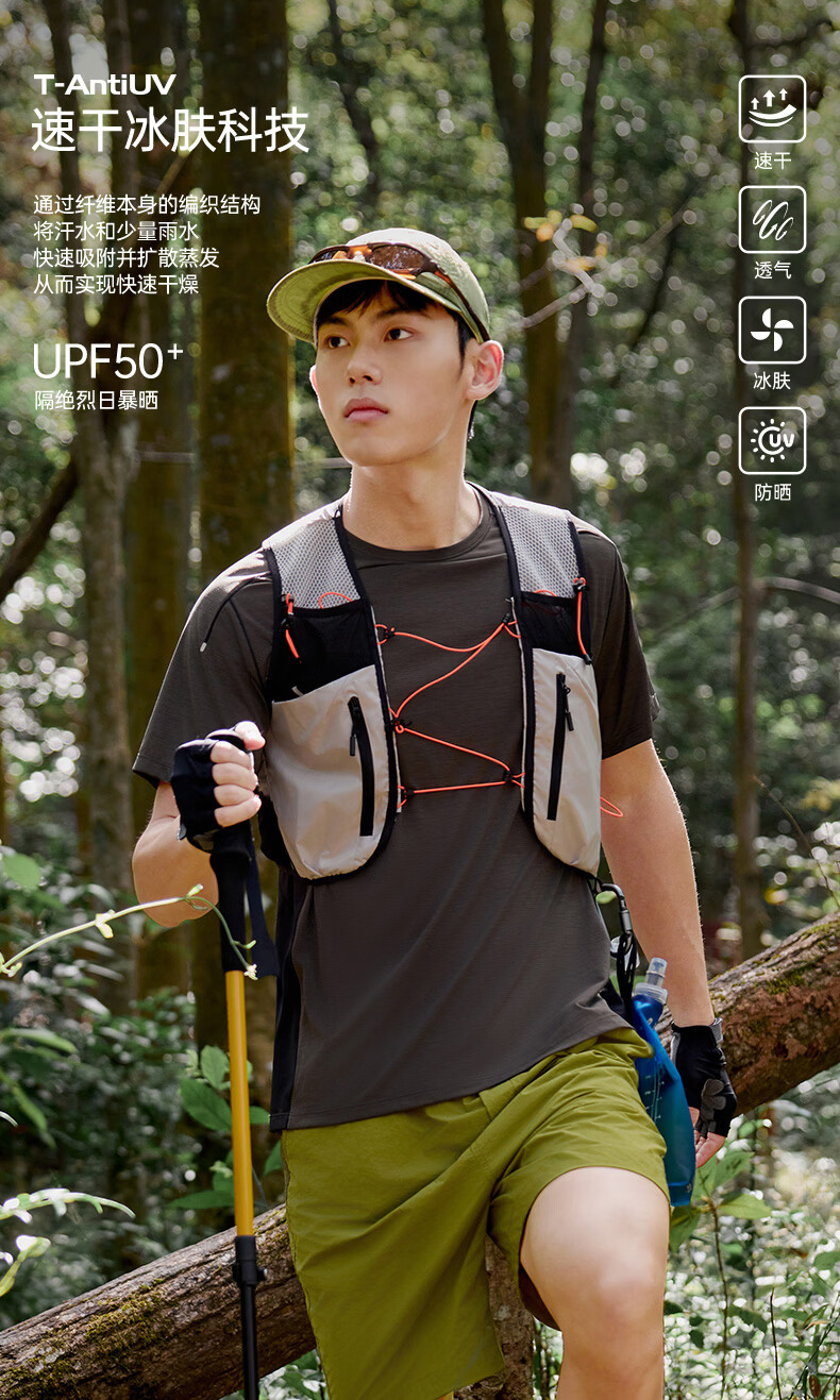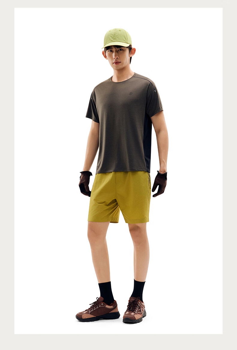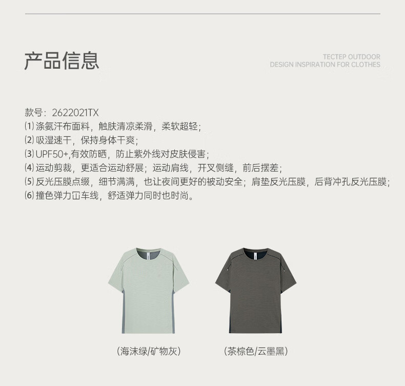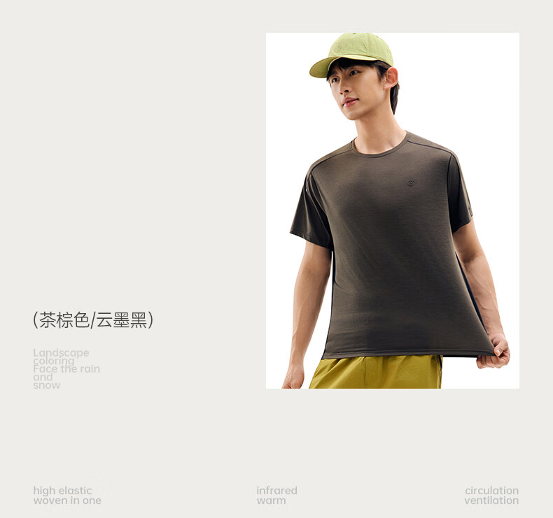 探拓(TECTOP)26新款速干衣户外防晒短袖T恤男运动透气上衣 茶棕色/云墨黑 S