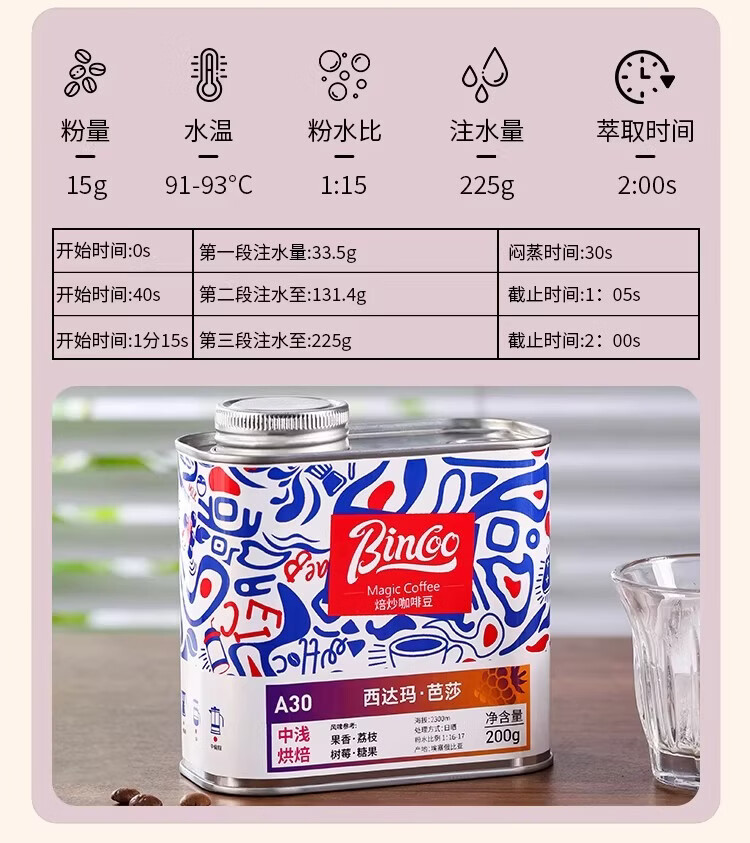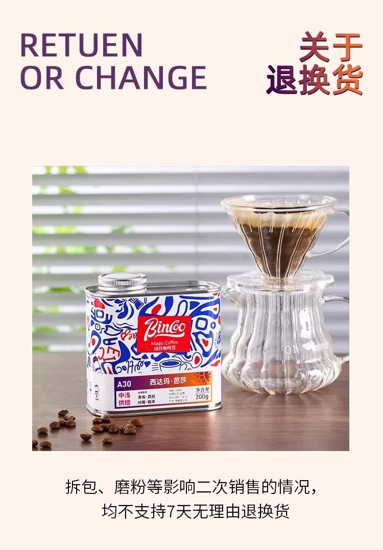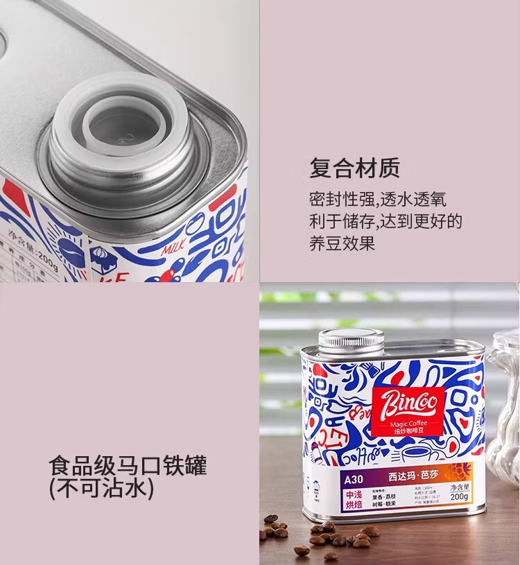 Bincoo石墙瑰夏手冲咖啡豆滴滤式美式咖啡中浅烘培巴拿马石墙庄园 100g罐装 中浅烘焙