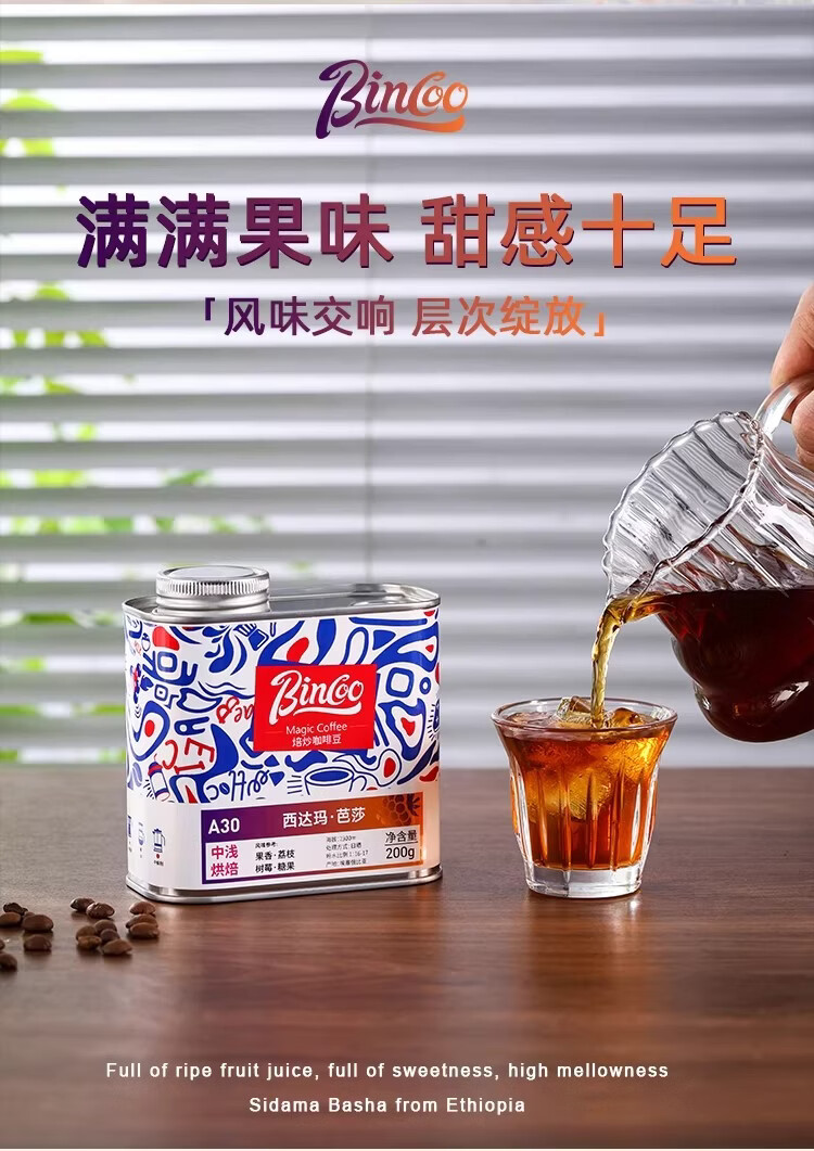 Bincoo耶加雪菲花田甜柠茶意式拼配咖啡豆中深烘焙咖啡机摩卡壶用 227g袋装