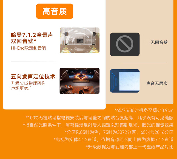 创维壁纸电视65英寸 65A8H 艺术电视 SQD-Mini LED 不反光电视 无缝贴墙 65吋平板电视高清液晶智慧屏 65英寸 【质保两年+免费安装】