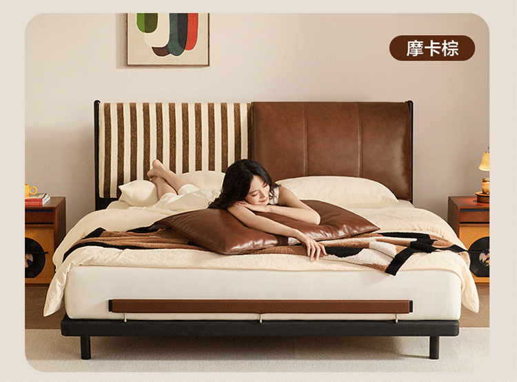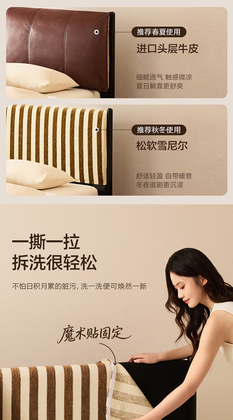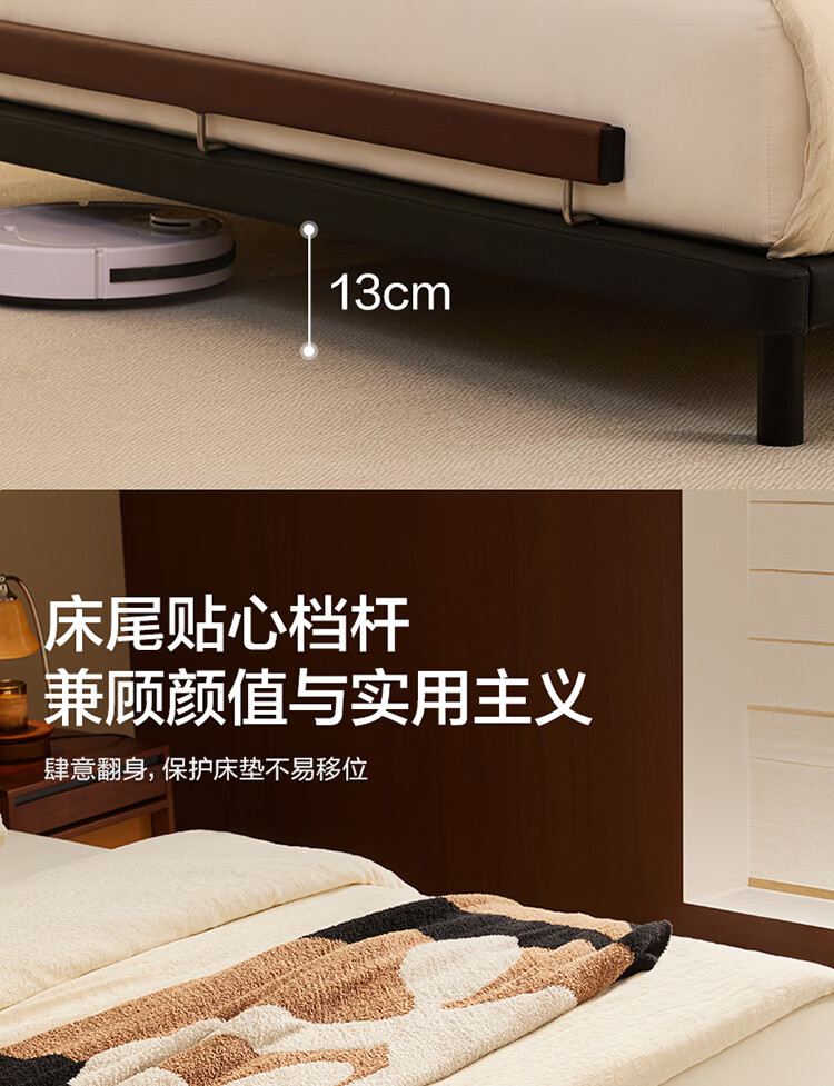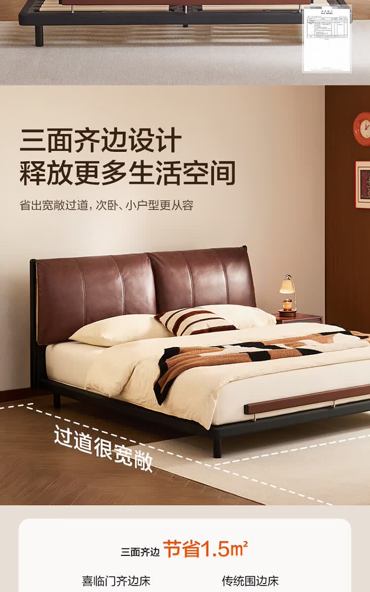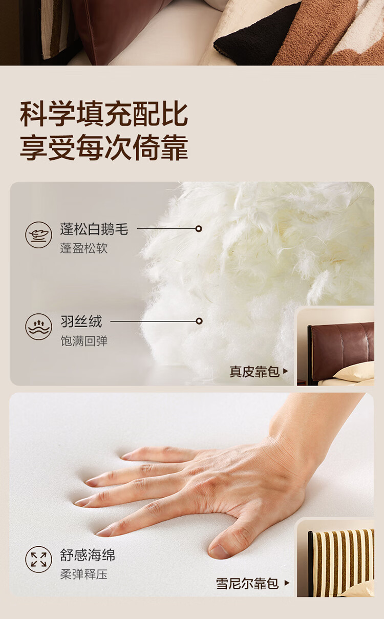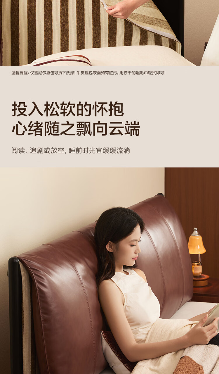 全友家居奶油风茉伊真皮床轻奢高级感2026年新款头层牛皮软包靠背床 【猫抓皮 | 米白 | 高脚】 1.2米x2米 床+床头柜*2+床垫