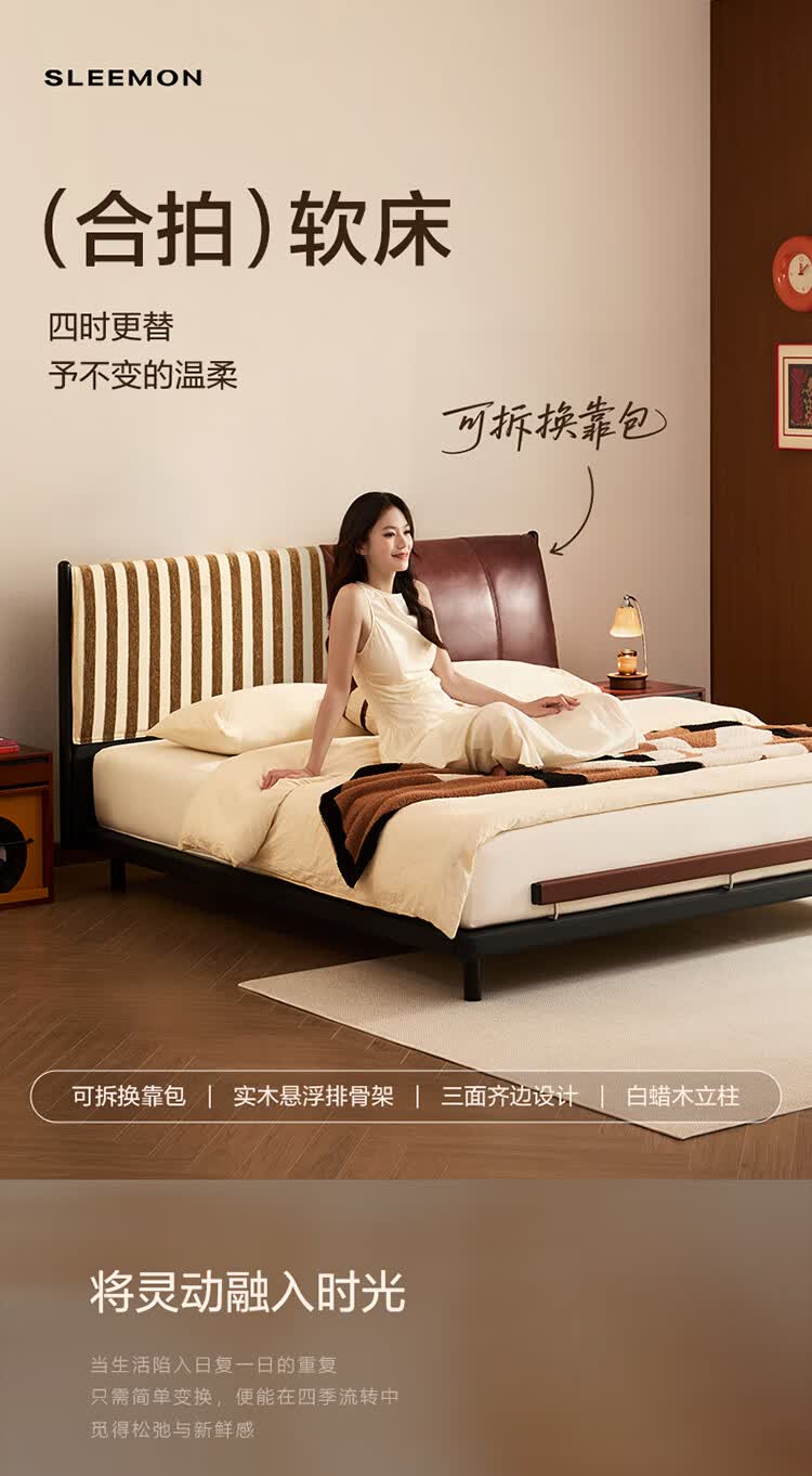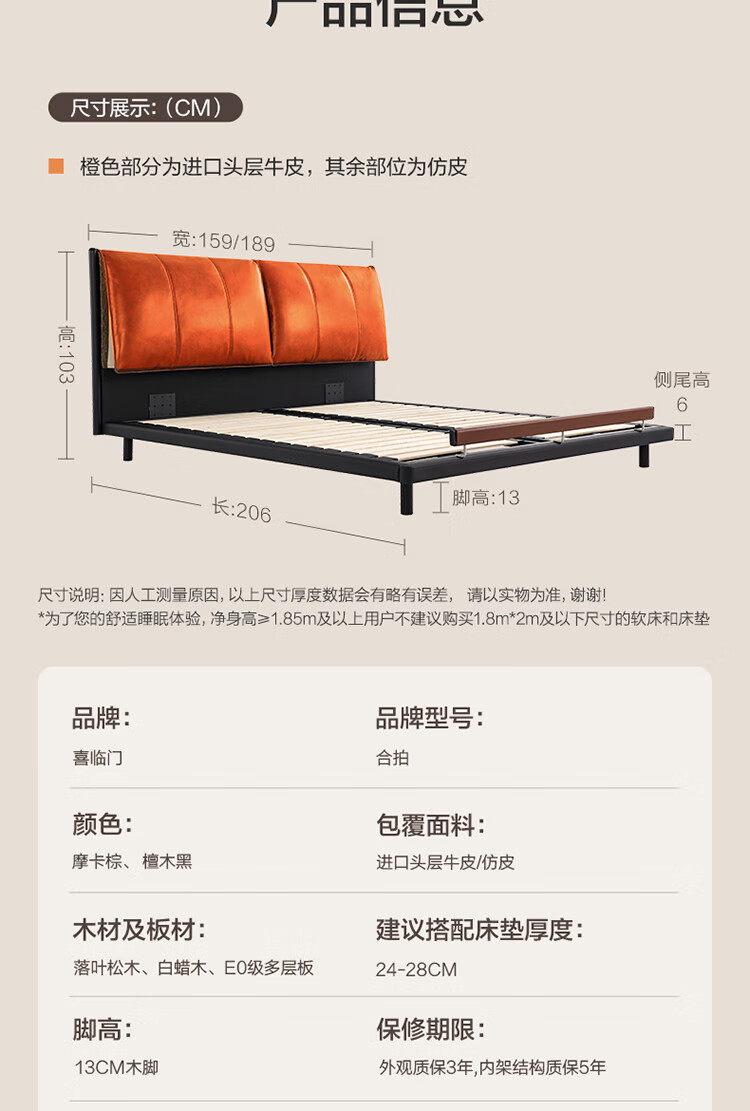 喜临门【重磅新品】喜临门实木床真皮软包床法式复古卧室双人床 合拍 檀木黑+白骑士plus 1.8*2米