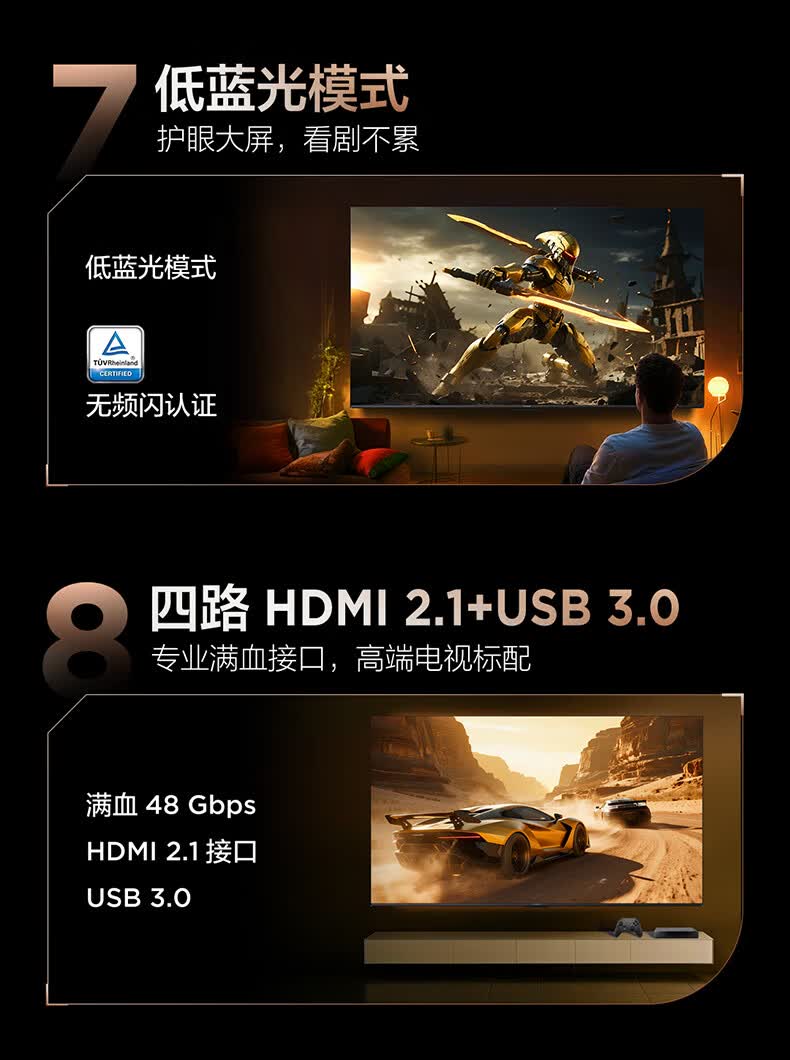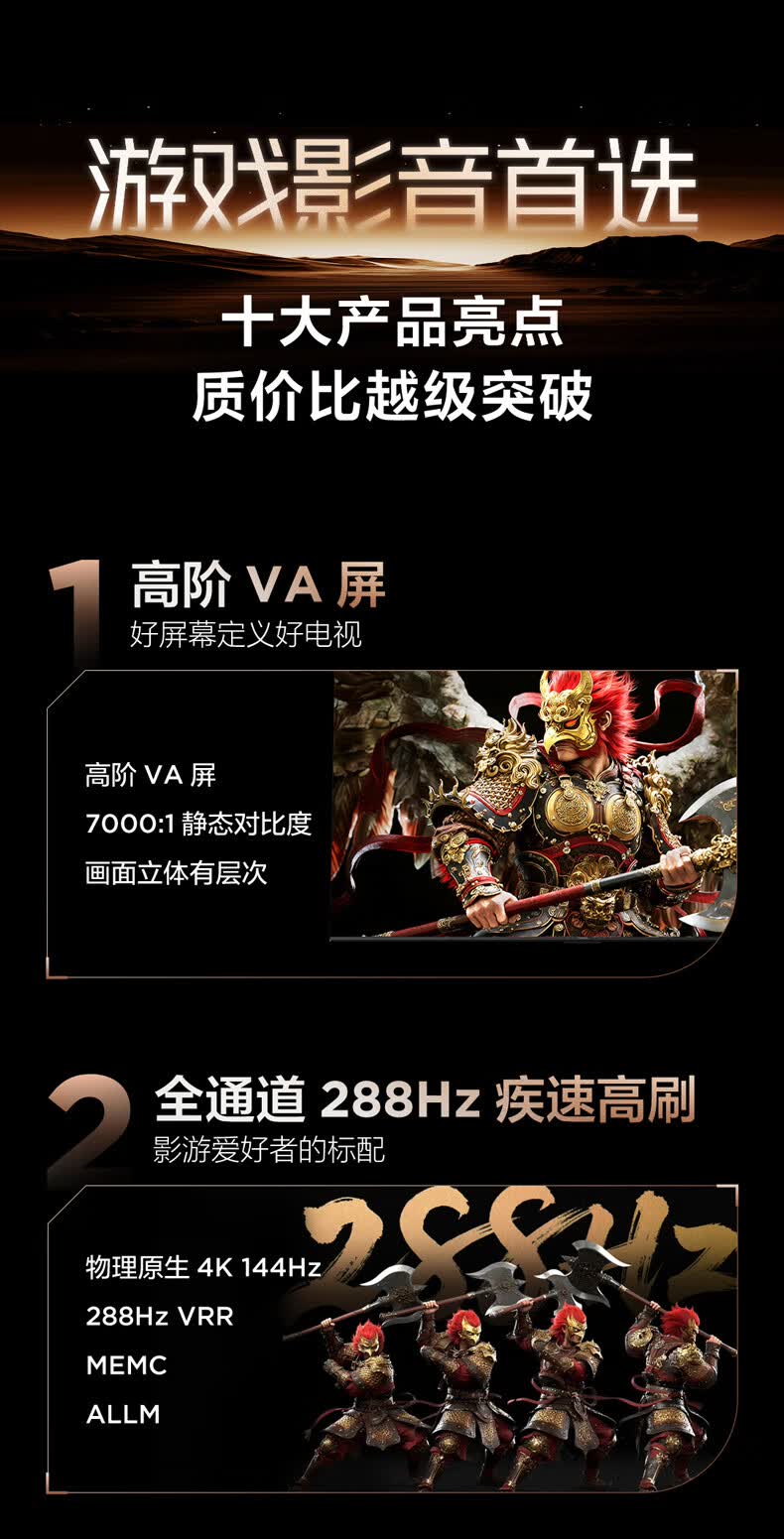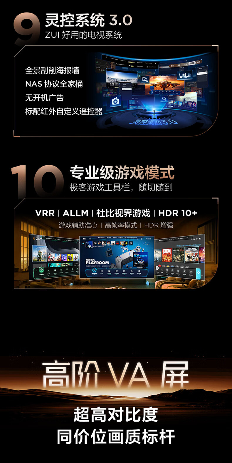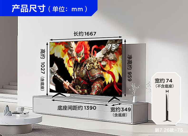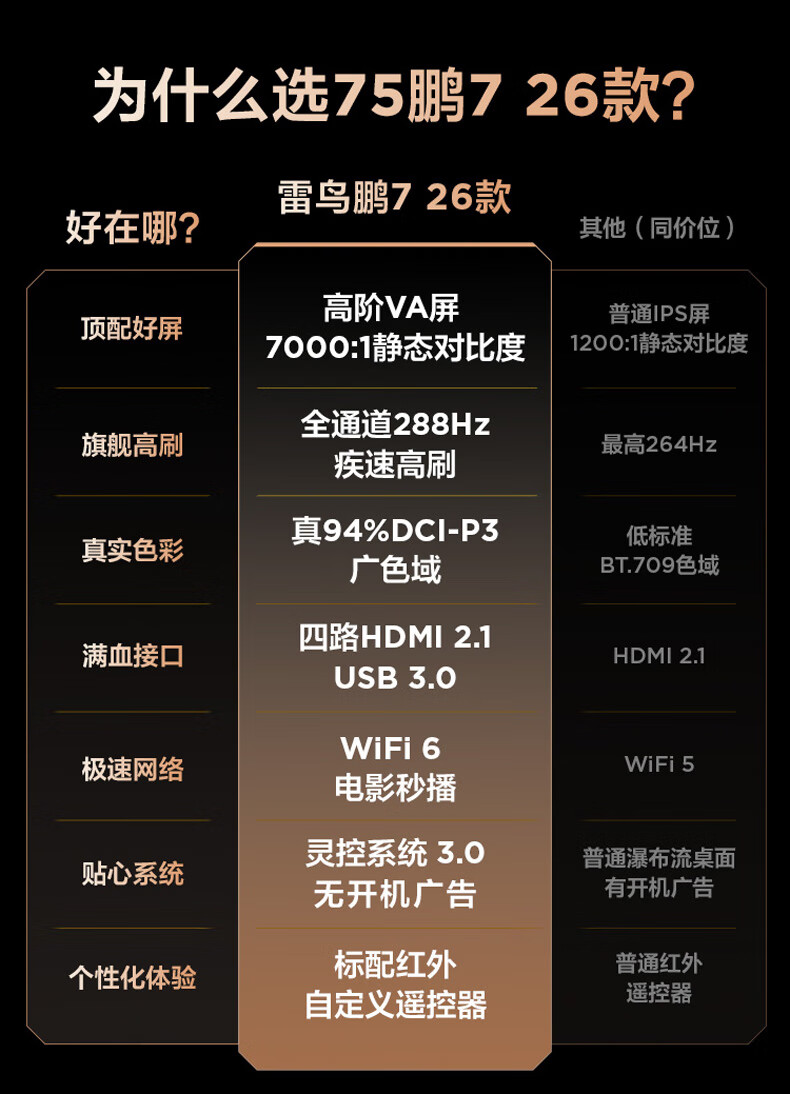 FFALCON雷鸟电视75英寸 75鹏7 26款 高阶VA全通道288Hz HDMI2.1 94%P3色域 灵控系统 平板电视机 75S78A