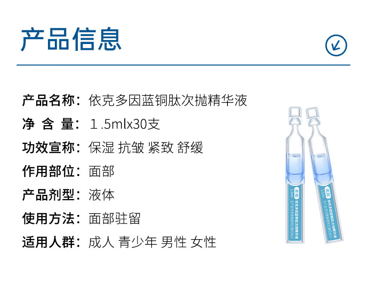 美卿次抛精华液 紧致 依克多因 蓝铜肽 一盒(30支)