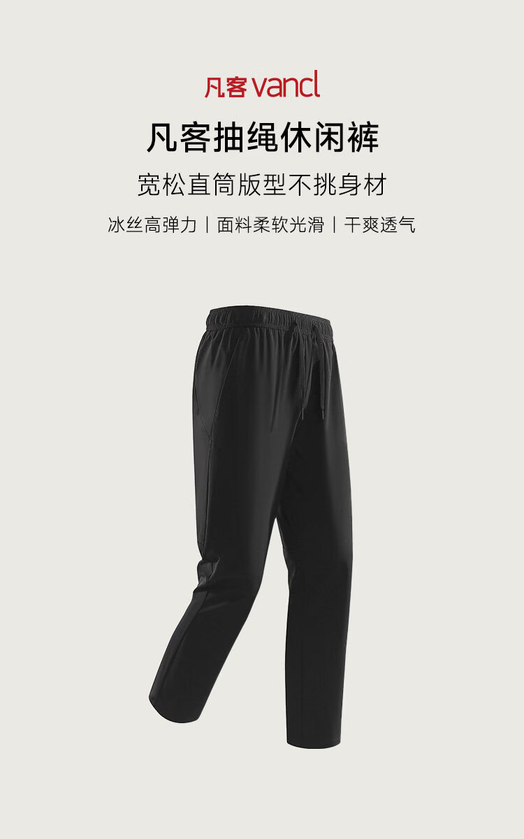 凡客诚品(VANCL)官方店 休闲直筒裤男士春夏新款宽松百搭休闲透气长裤男 玄青黑 L 建议115-135斤