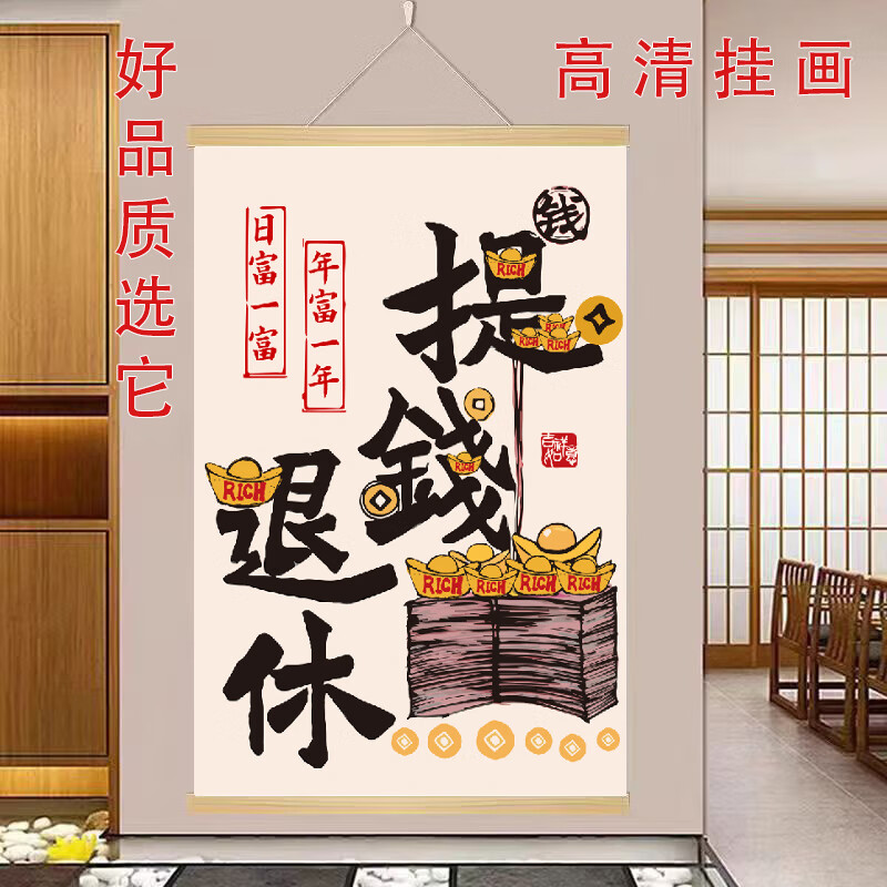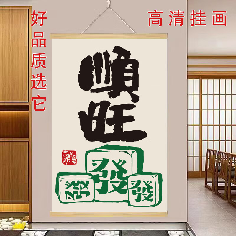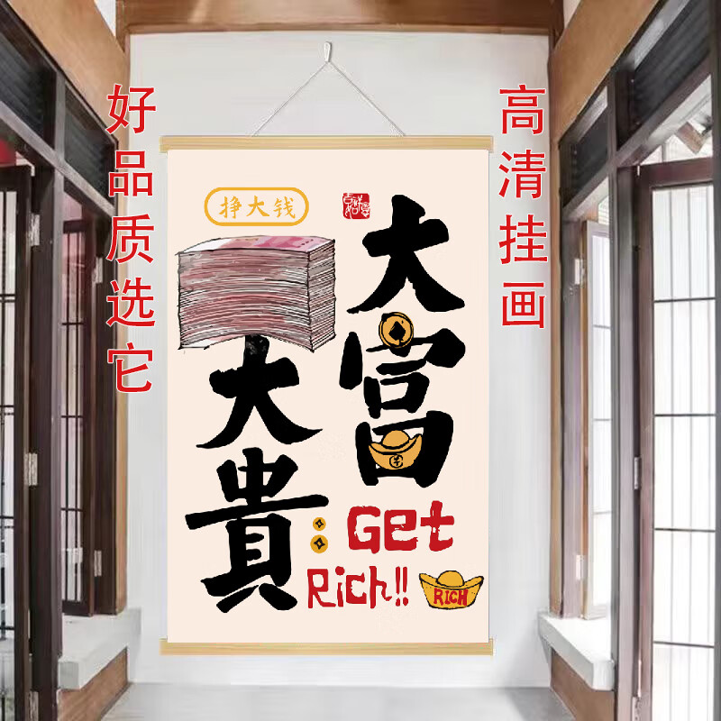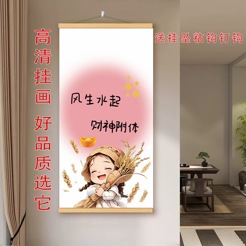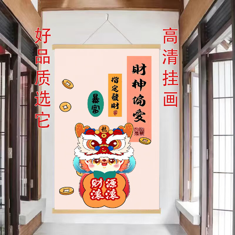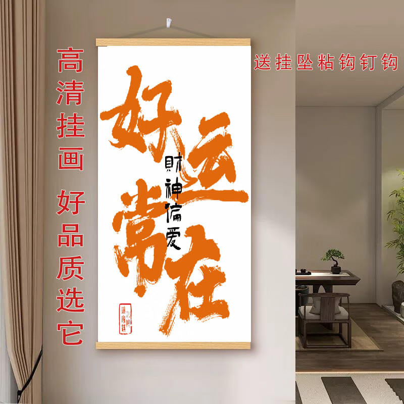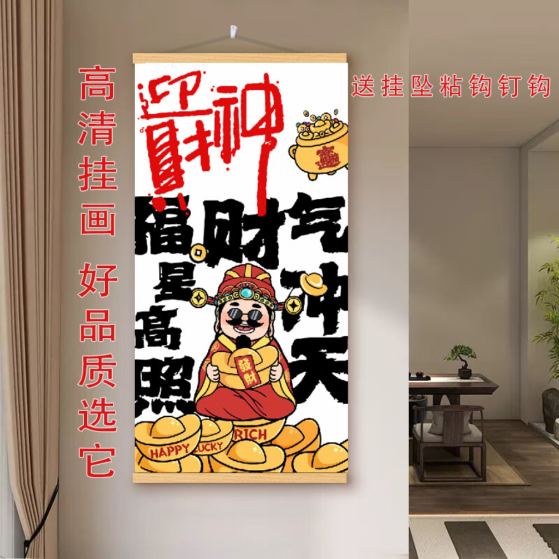 玄关挂画新中式财神爷偏爱文字挂轴网红装饰画客厅背景墙高端挂画 款式9 【定制改价链接】