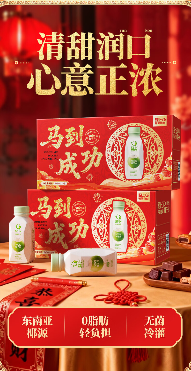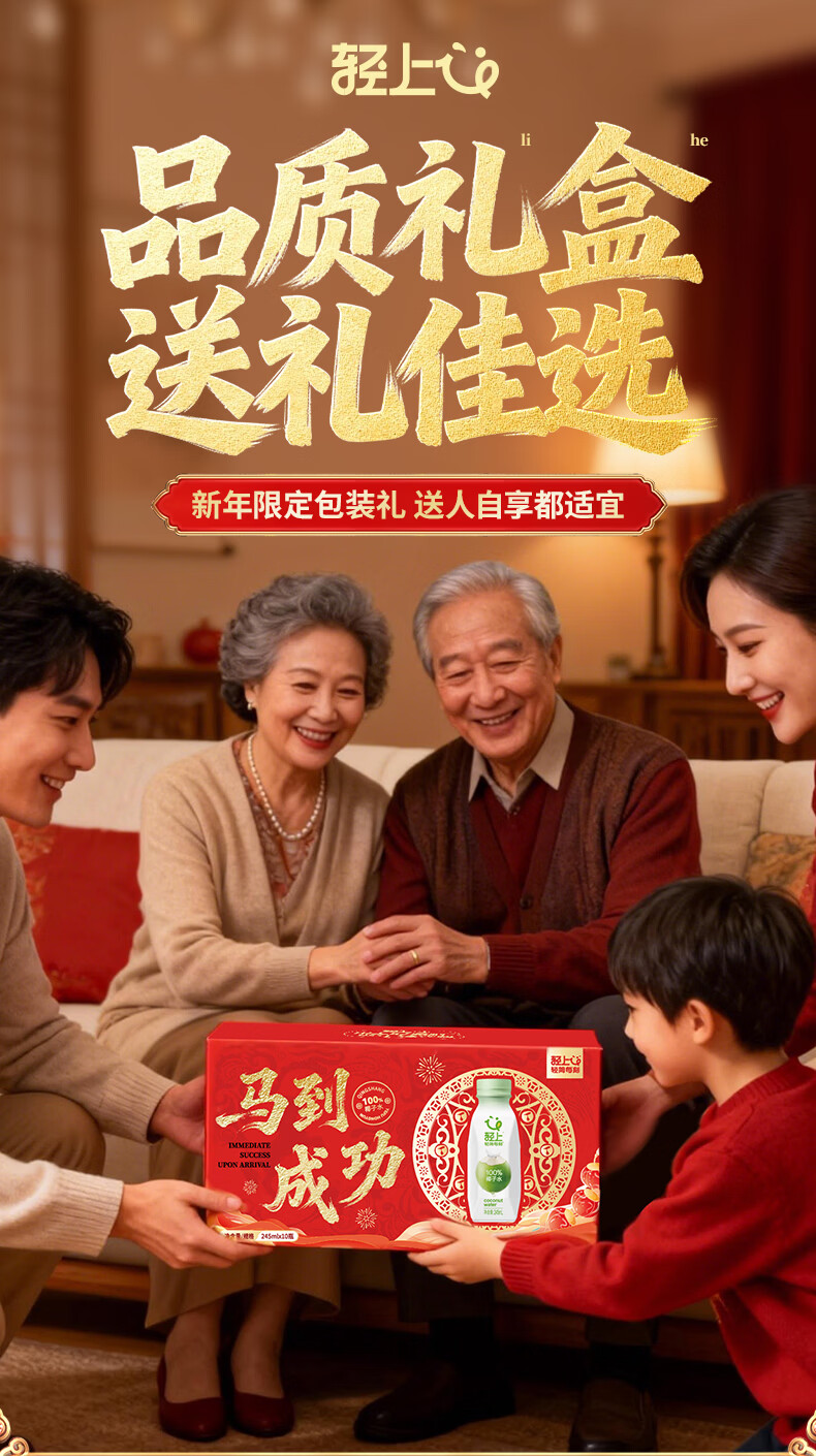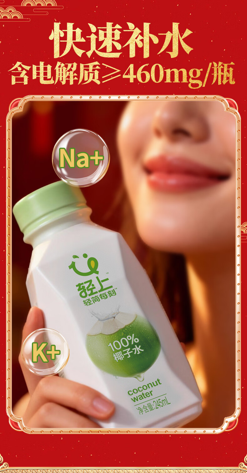 轻上100%椰汁水儿童孕妇果汁无添加剂天然电解质水新鲜椰青水年货饮料 100%椰汁水礼盒装245ml*10瓶