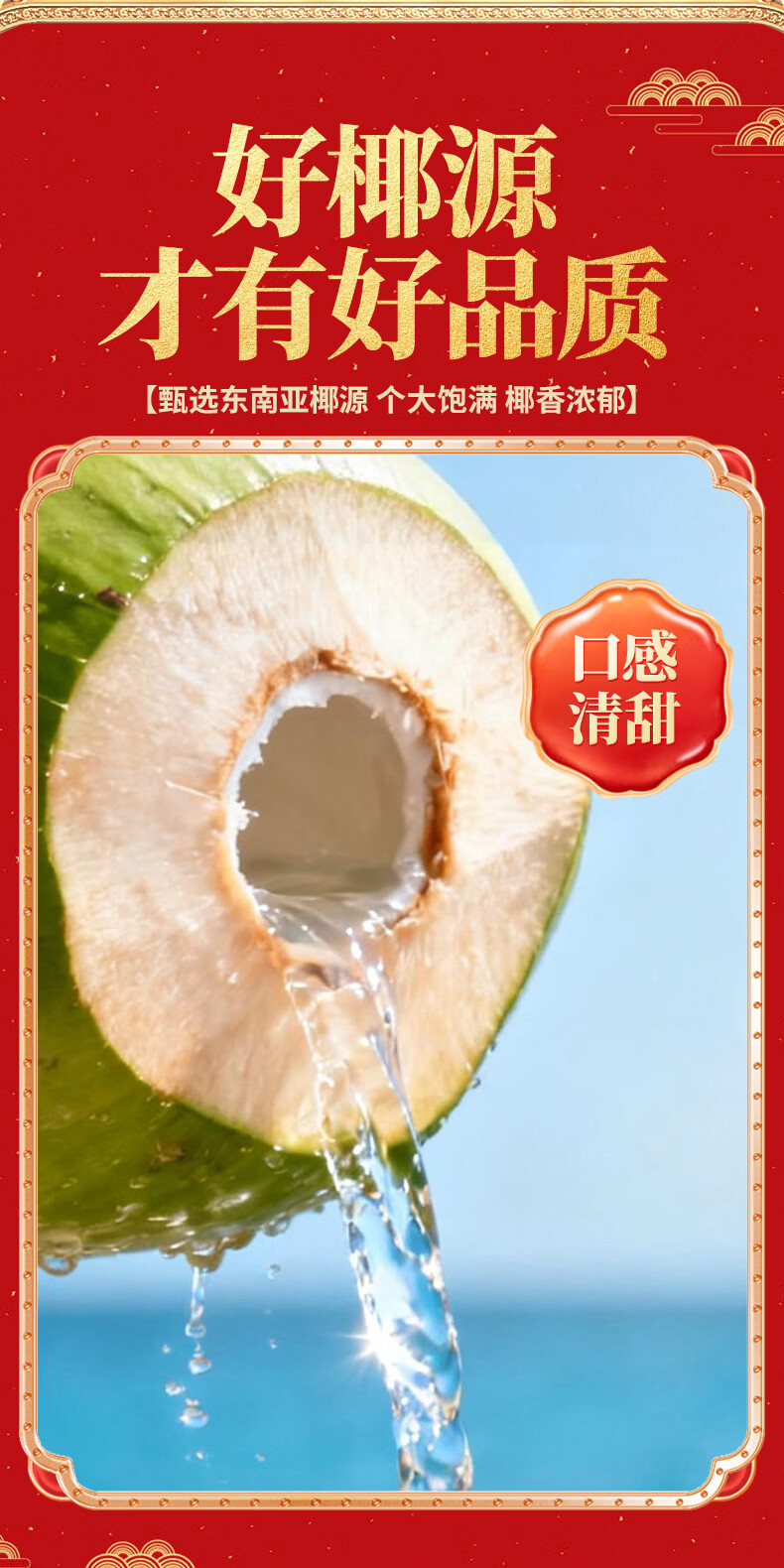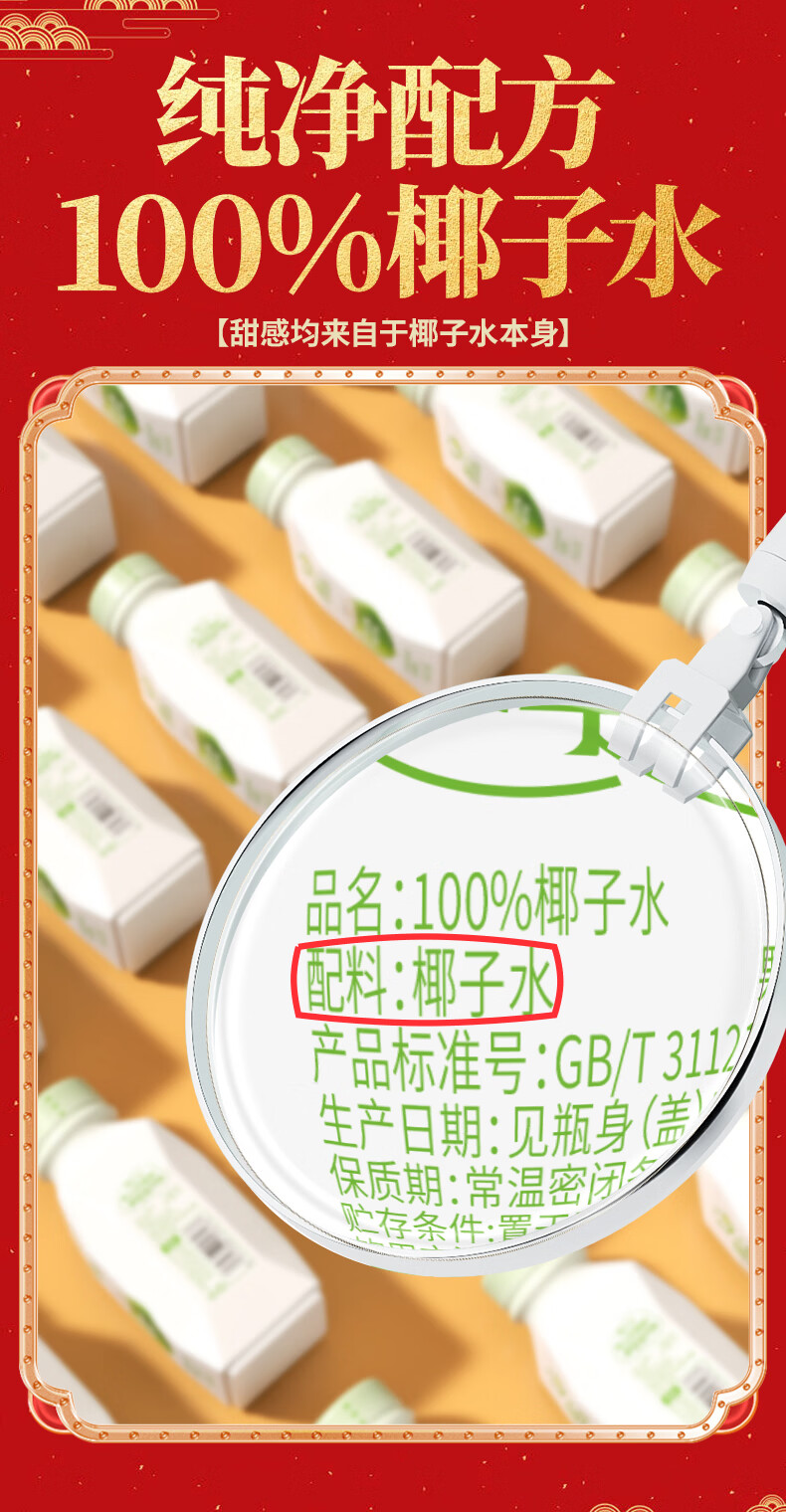 椰威 正宗海南原产 泰式鲜榨 海南椰子汁椰果 果肉椰子汁 鲜椰肉 【喜庆款】鲜榨椰汁1L*6瓶