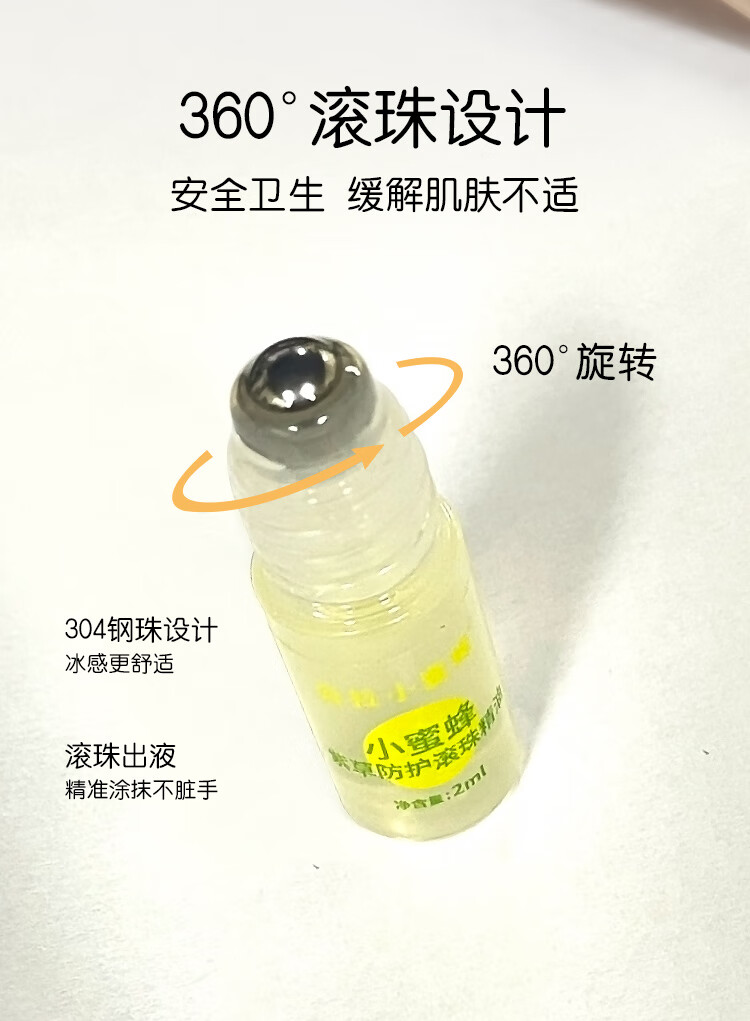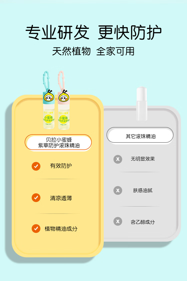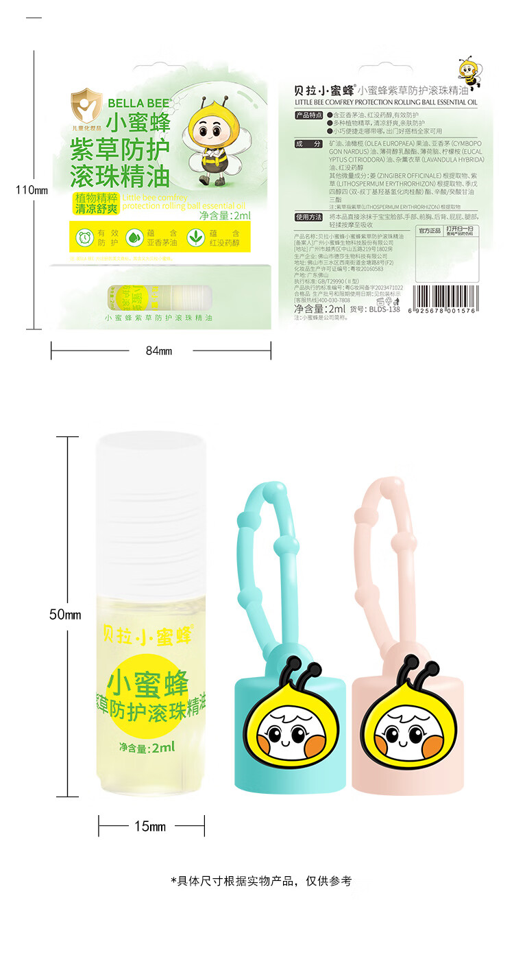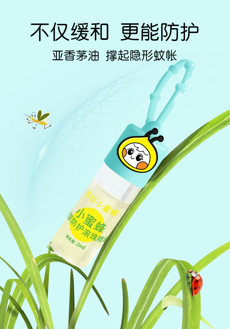 贝拉小蜜蜂紫草走珠凝露膏蚊虫叮咬婴儿宝宝咬儿童舒缓肌肤滚珠精油户外便携 滚珠精油2ml*2支装