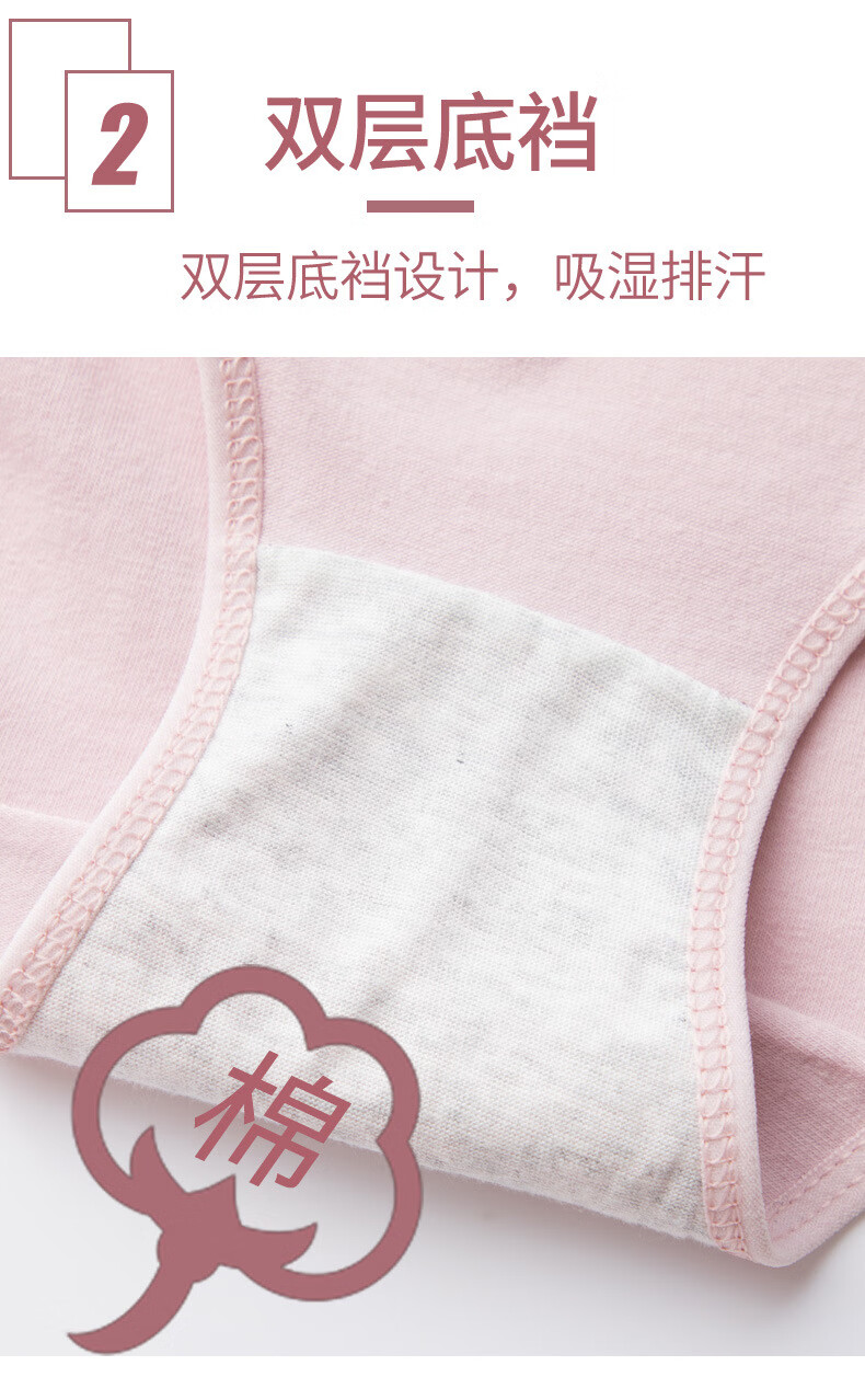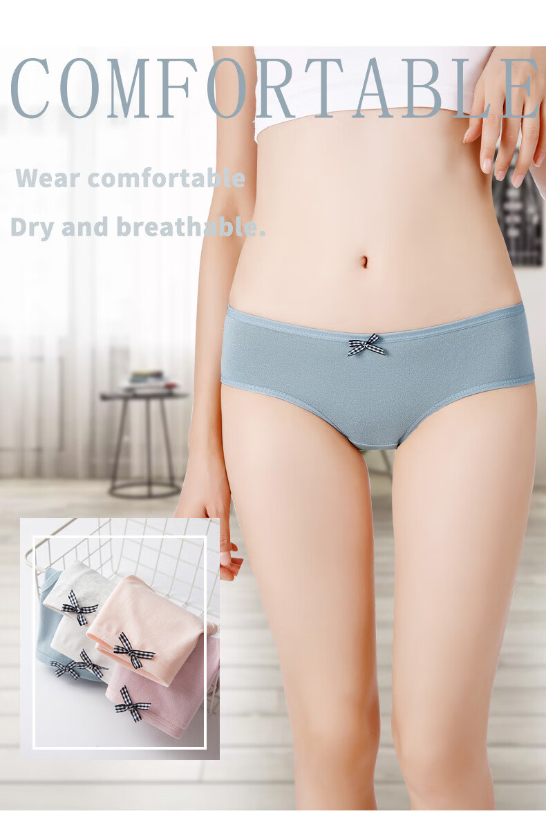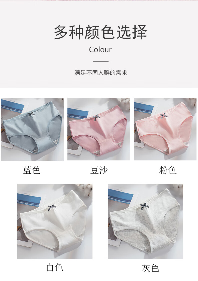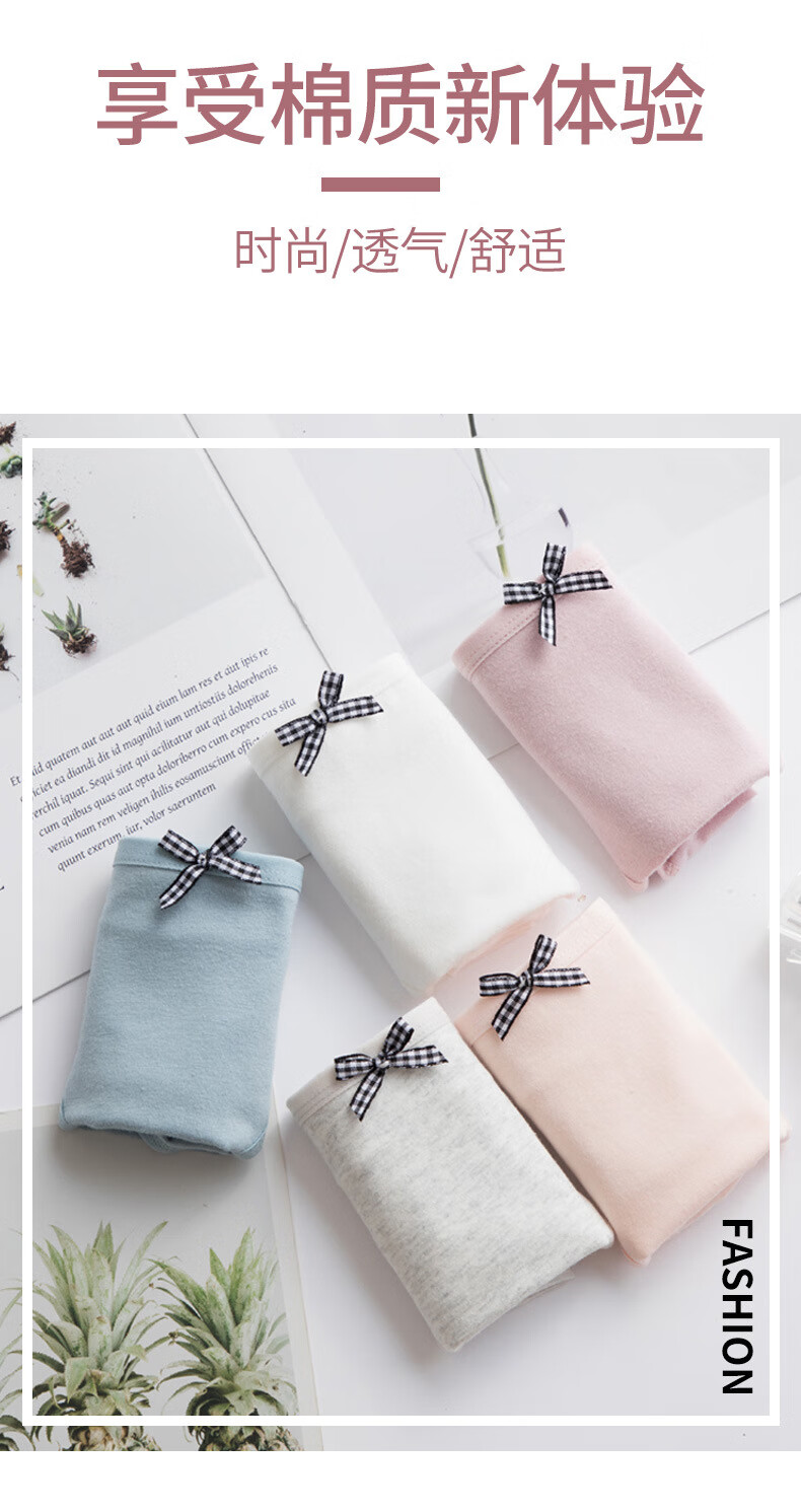 欧蓝薇雅女士纯棉内裤大码蝴蝶结纯色可爱少女生学生舒适亲肤柔软三角裤头 颜色混搭 3条 2XL