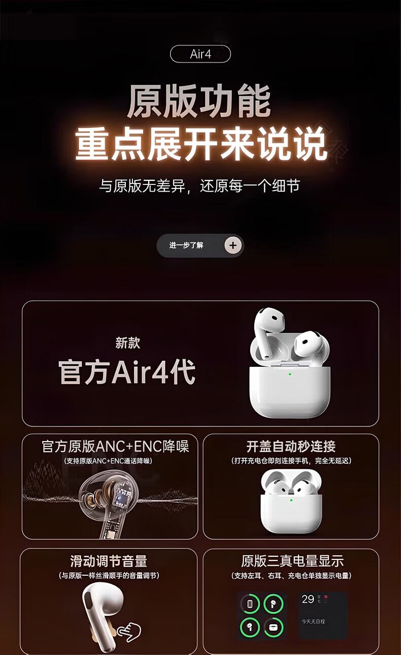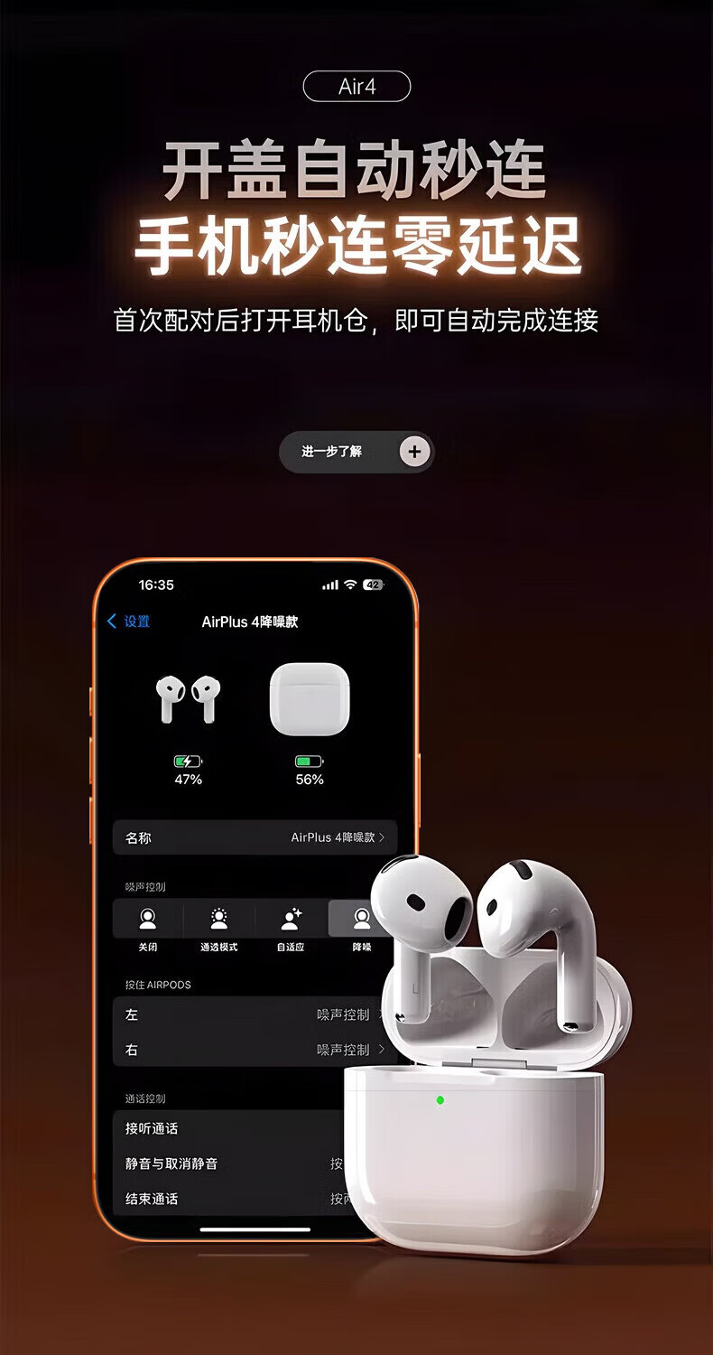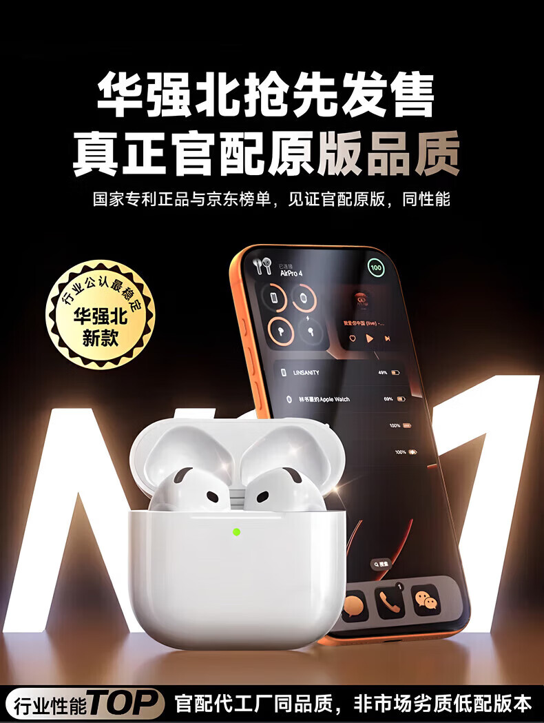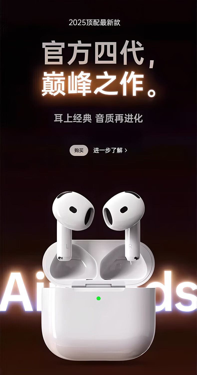 华强北爆款【2026新款丨Airpods4顶配】蓝牙耳机适用苹果安卓无线降噪版游戏苹果17半入耳式ios新品排名前十 杜比音效·纯享版丨华强北顶配 【官同顶配】物理降噪+超长续航