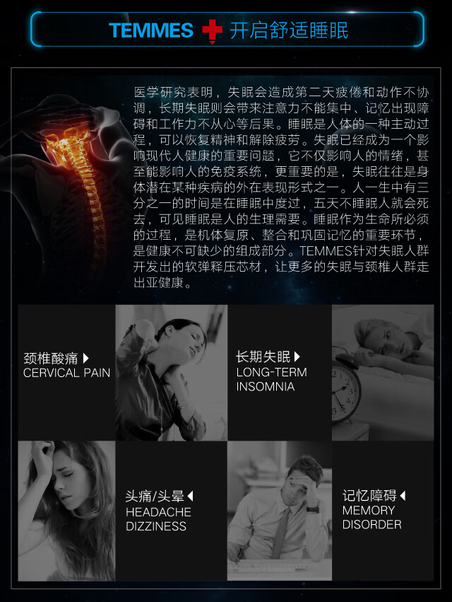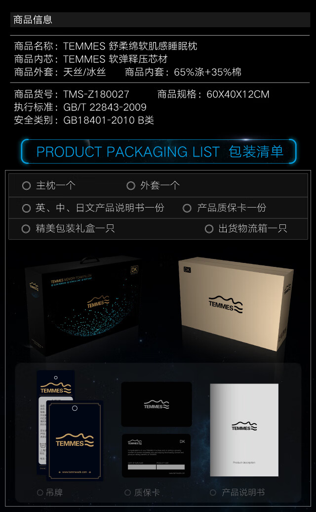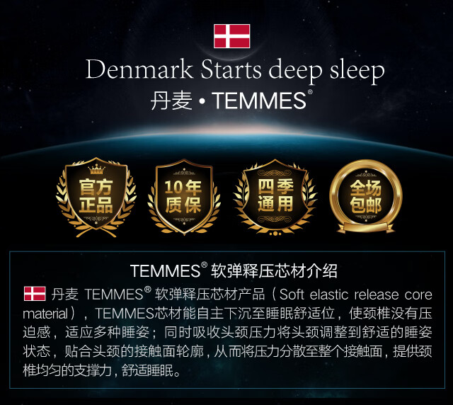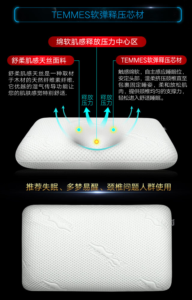 TEMMES 丹麦泰梅斯 记忆棉慢回弹颈椎护颈记忆枕深睡成人枕头枕芯 高分子滑爽冰丝 单只 软弹释压芯材