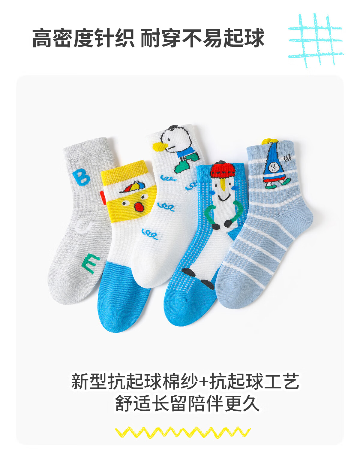 斑比男童袜子春夏款网眼透气棉袜中大童宝宝夏季无骨可爱儿童袜子 BB2631 春夏款儿童袜子 5双 3-5岁 建议脚码21-26码【16-18】