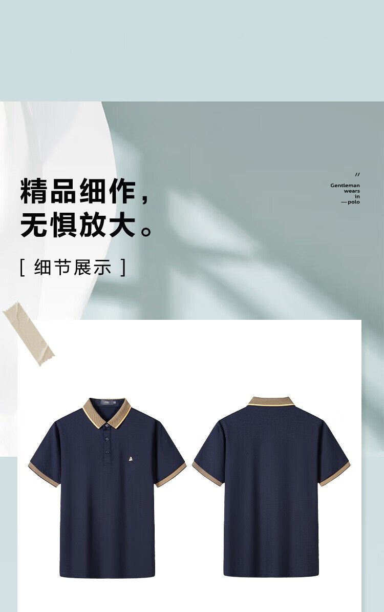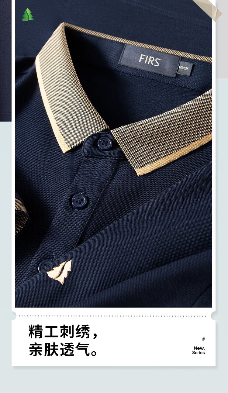 杉杉(FIRS)【凉感蚕丝】POLO衫男夏季新款商务休闲撞色半翻领透气短袖男装 藏青 M (170/88A)