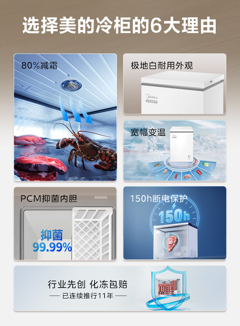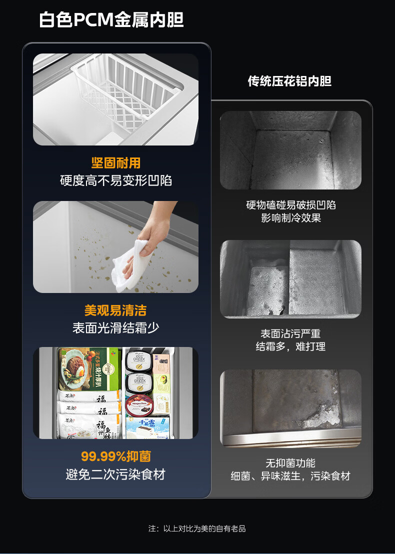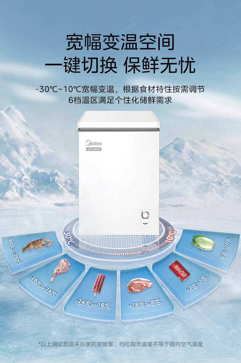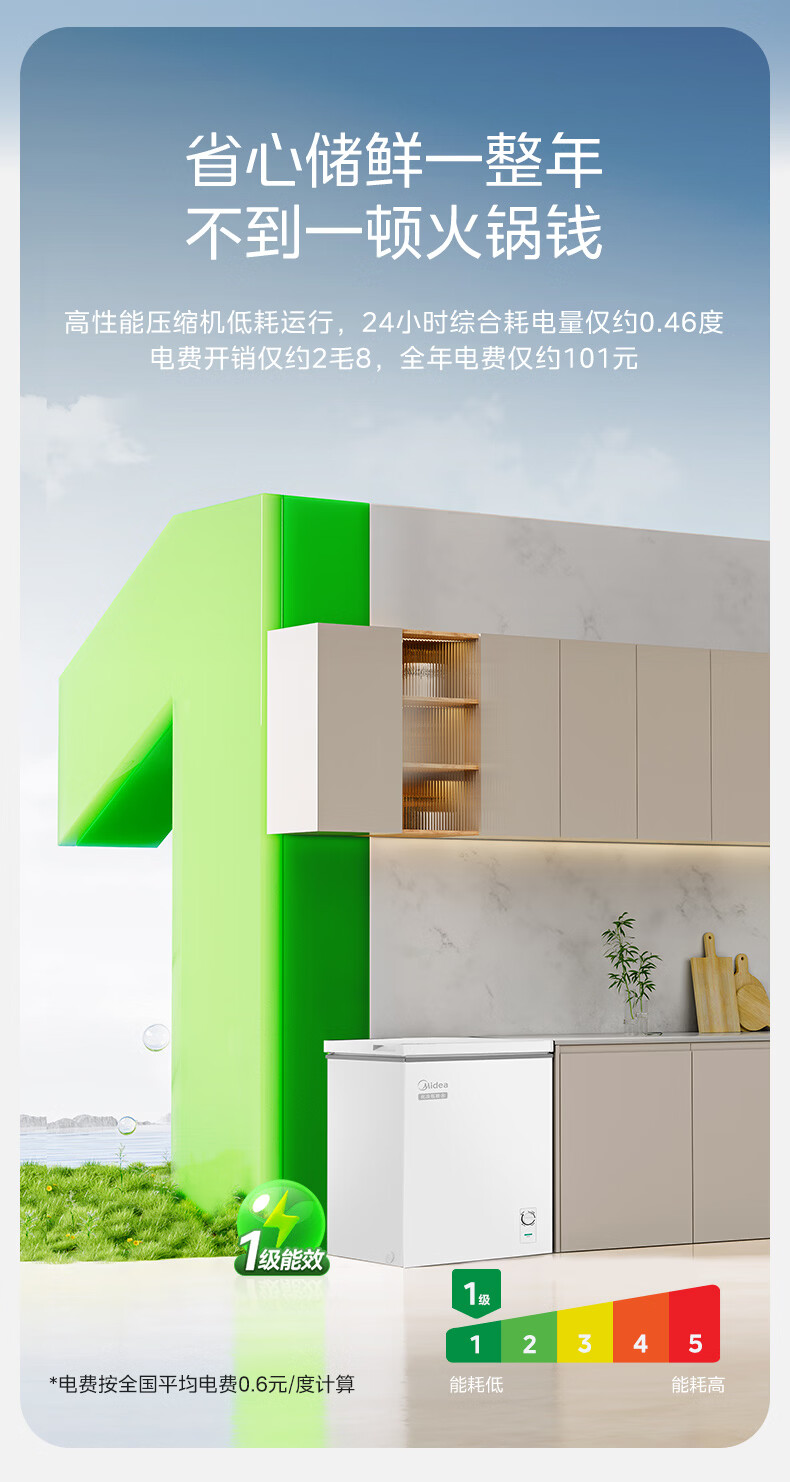 美的(Midea)家用小型冰柜100升 保鲜囤货大容量变频冷柜 冷藏冷冻单温一级能效节能省电减霜80% PCM合金内胆 减霜80%'PCM合金内胆’节能变频 100L