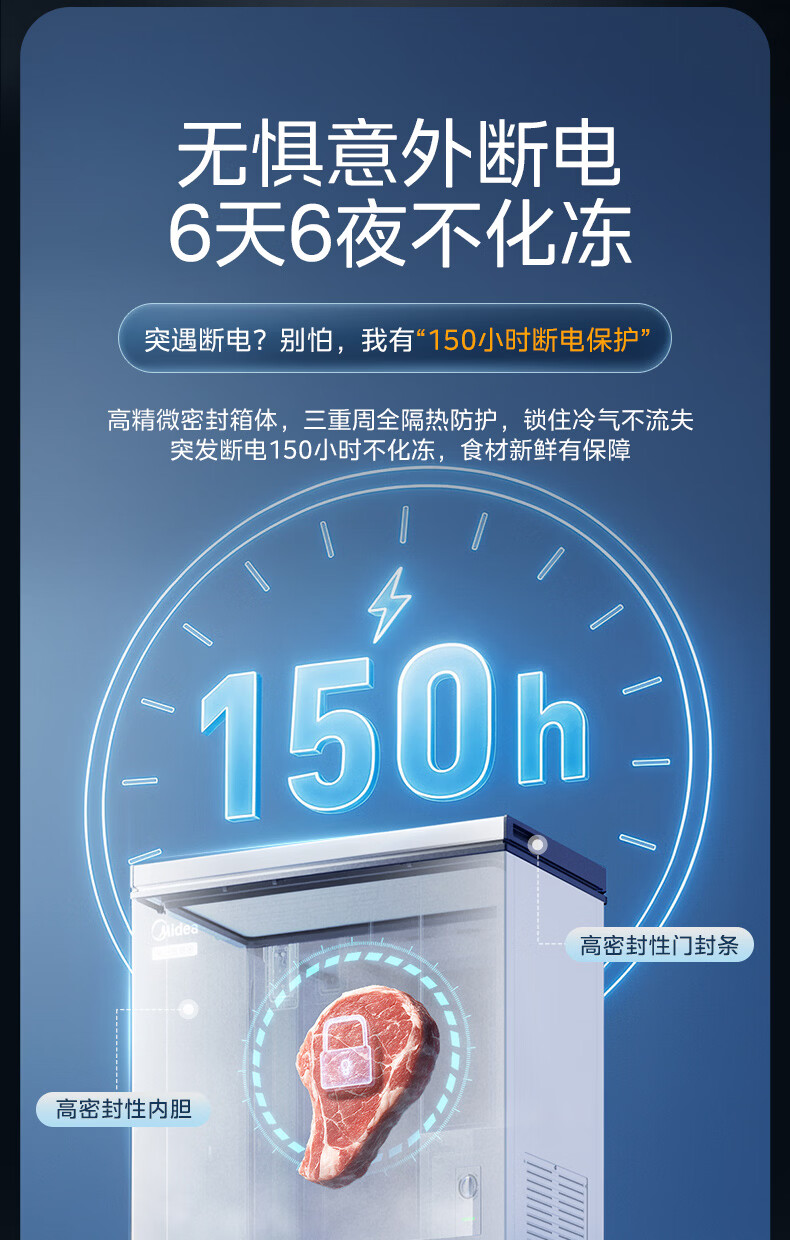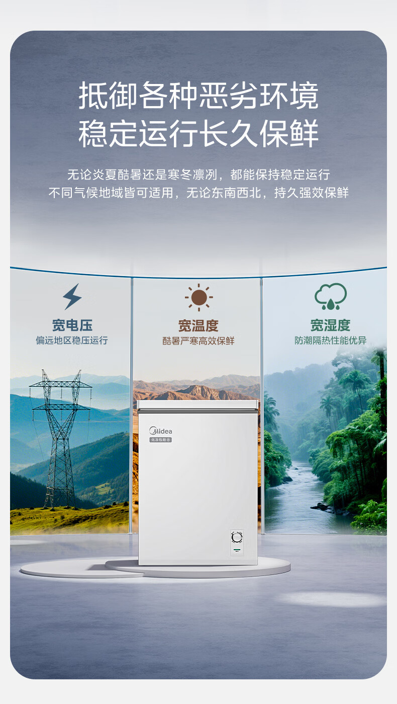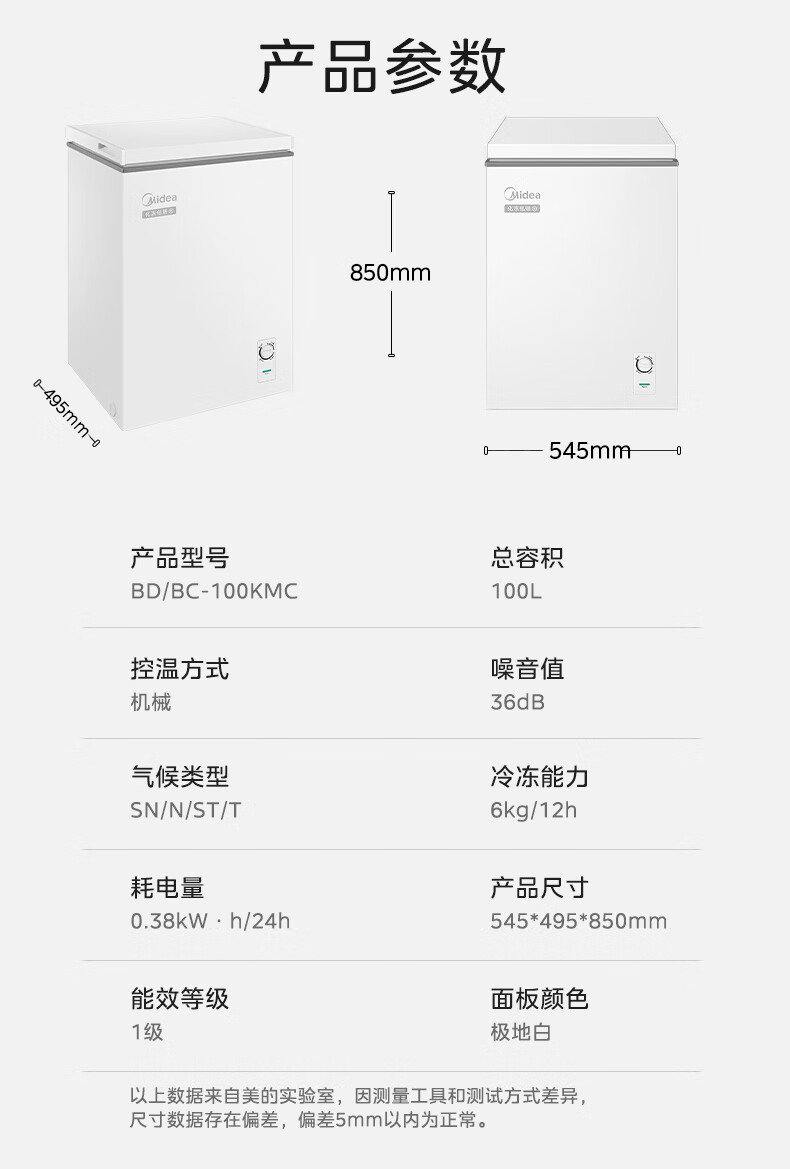 美的(Midea)家用小型冰柜100升 保鲜囤货大容量变频冷柜 冷藏冷冻单温一级能效节能省电减霜80% PCM合金内胆 减霜80%'PCM合金内胆’节能变频 100L